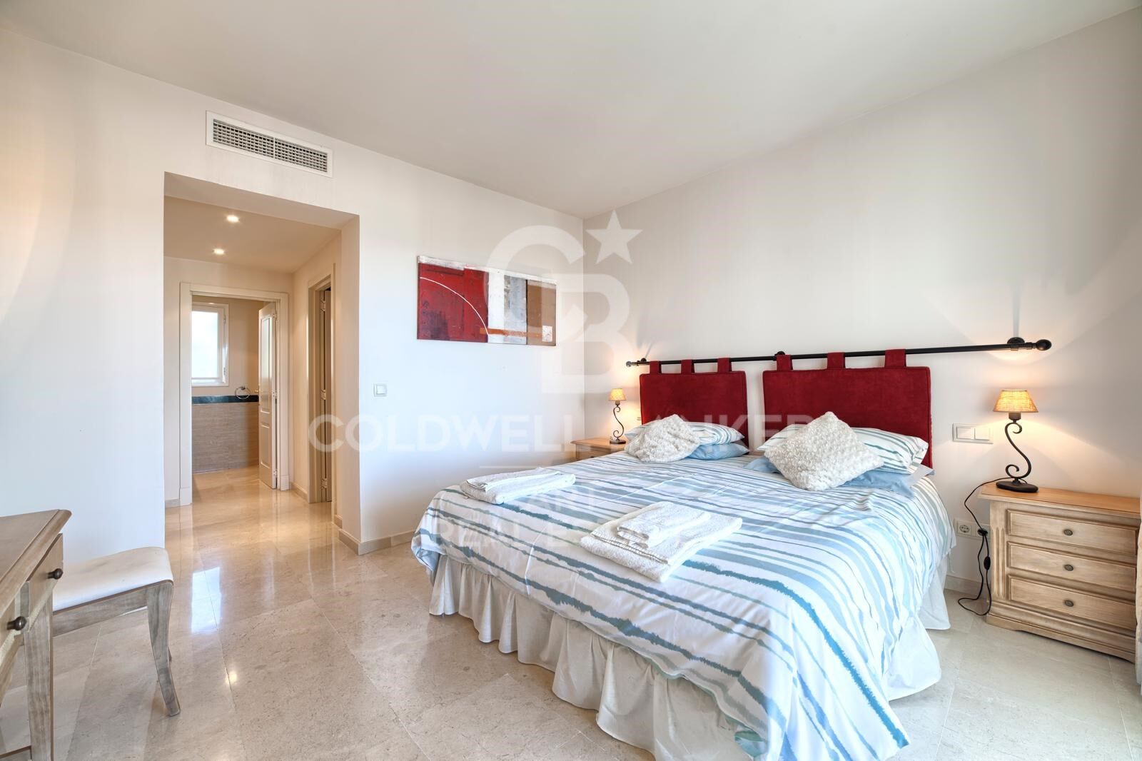 El dormitorio principal incluye un vestidor y un baño privado. Los dos dormitorios adicionales comparten un baño completo, con dos habitaciones frente al mar y la tercera con vistas al campo de golf, cada una con su propio encanto.