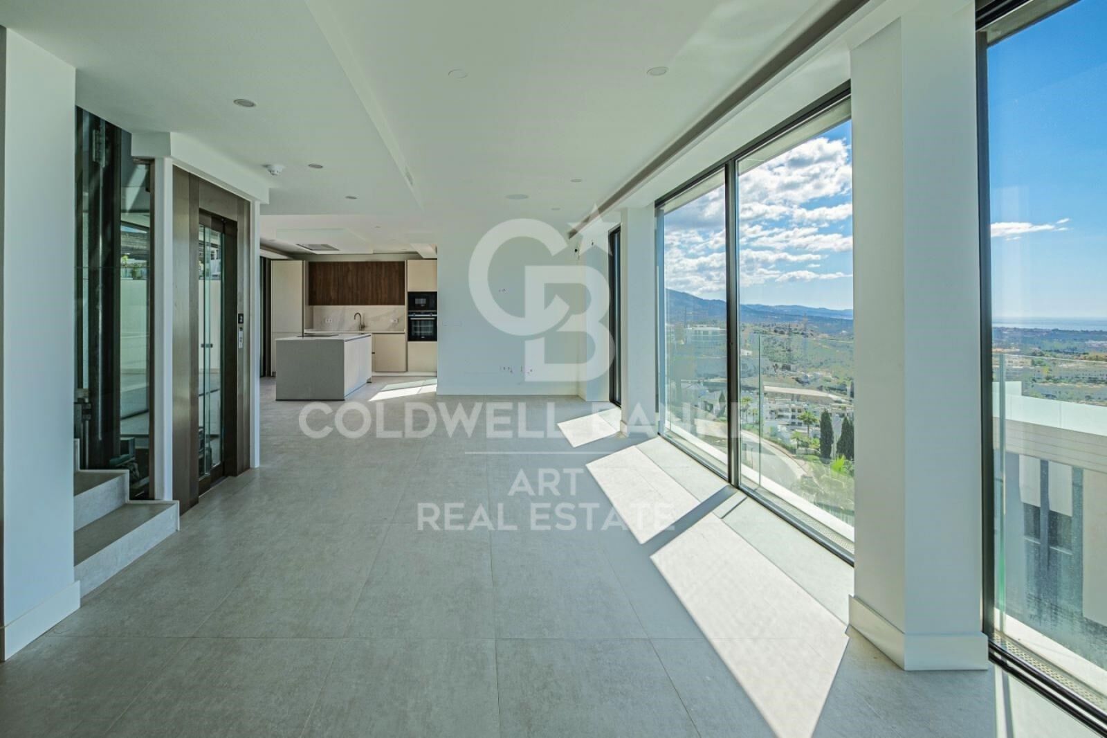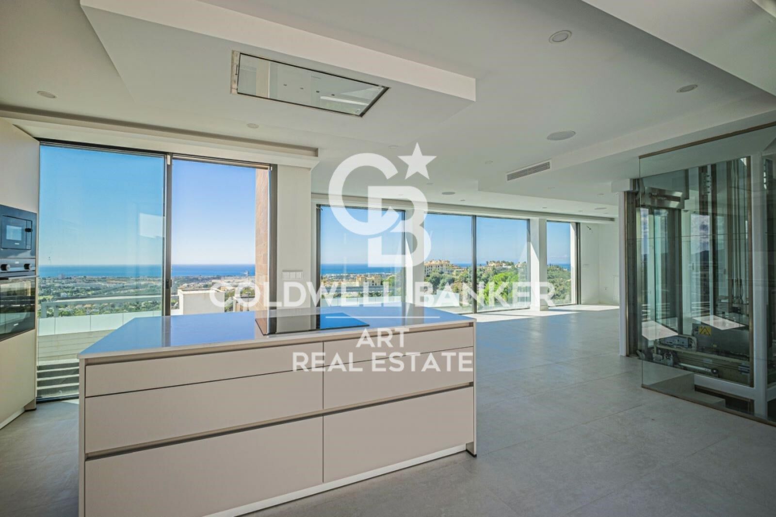 Un ascensor de vidrio de diseño moderno destaca en el interior. Este es un ejemplo de perfección que convierte a las villas en una de las mejores propiedades de la zona de Marbella. Es un edificio excepcional, cuyos propietarios pueden sentirse completamente satisfechos al saber que han asegurado una de las villas de diseño de lujo más exclusivas de Marbella.