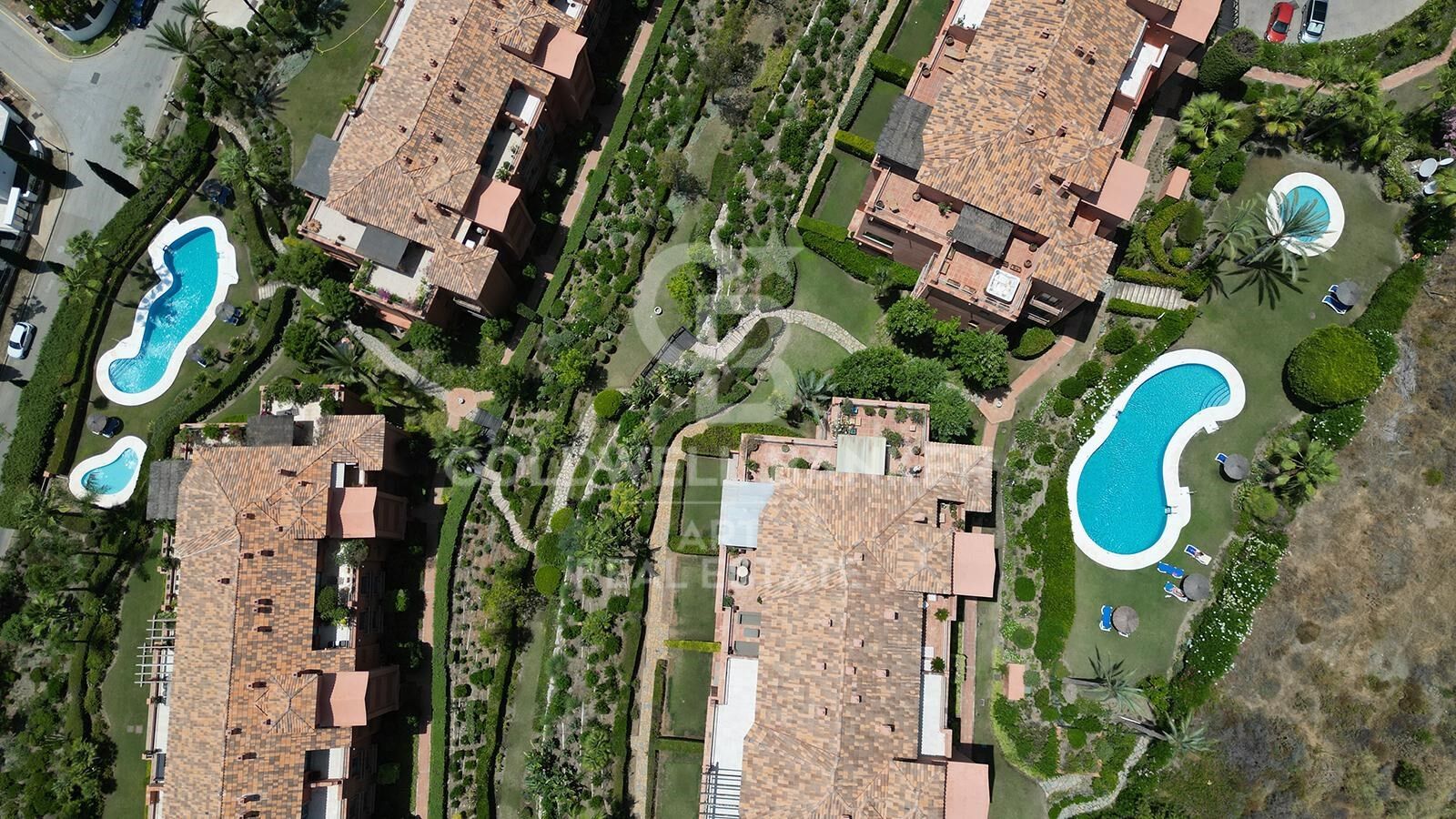 Situado en el prestigioso resort de golf Los Flamingos, la vivienda se beneficia de una posición elevada y tranquila dentro de una comunidad cerrada con seguridad. Los residentes disfrutan de acceso a tres piscinas comunitarias, pistas de tenis y pádel, una zona de juegos infantiles y seguridad 24 horas, lo que garantiza confort y tranquilidad.