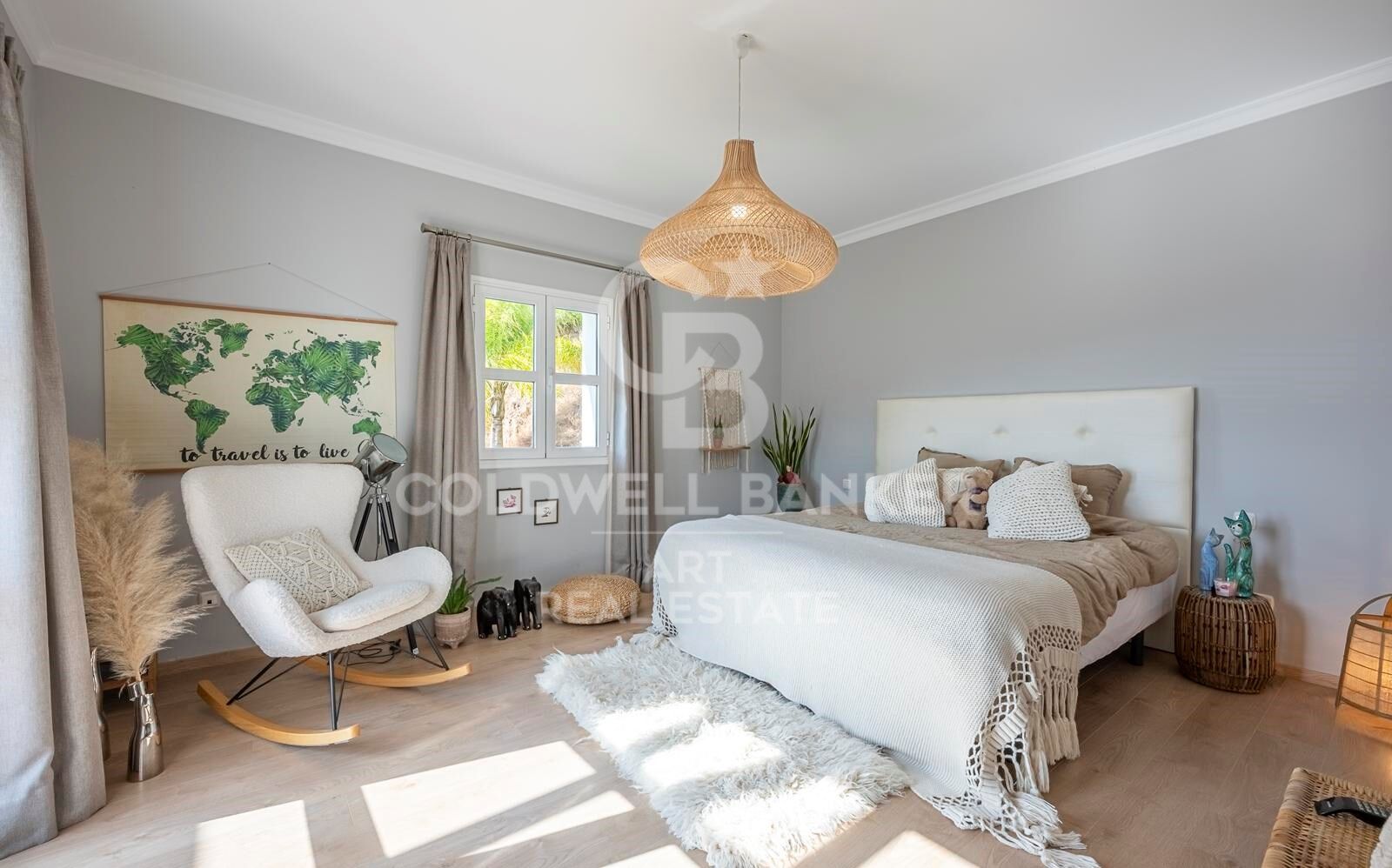 Diseñada con una elegancia atemporal, la villa cuenta con amplios y luminosos espacios de estar, cuatro dormitorios en suite y una moderna cocina. En el exterior, los jardines cuidados enmarcan una reluciente piscina privada y una acogedora zona chill-out, perfecta para relajarse o disfrutar con amigos. Una encantadora biblioteca, amplias terrazas y un garaje para dos coches completan este refugio lleno de encanto.