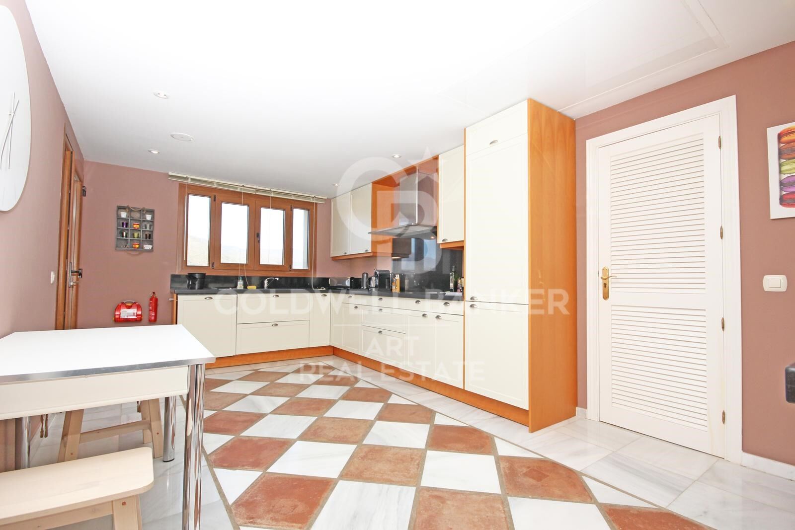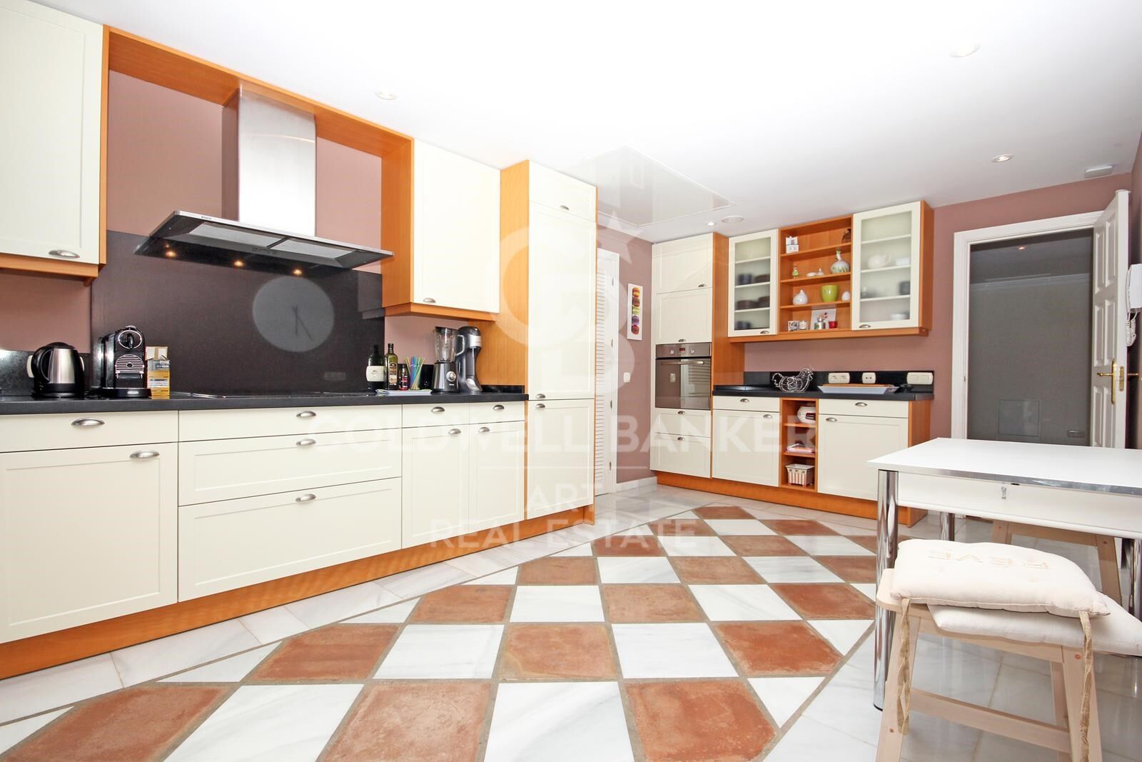 La cocina totalmente equipada, terminada con un alto nivel, es práctica y está bellamente equipada, ideal para la vida diaria o para recibir invitados. La villa también cuenta con un amplio garaje con capacidad para uno o dos vehículos, así como un ascensor privado que conecta todas las plantas, lo que garantiza la facilidad de acceso para todas las edades y niveles de movilidad.