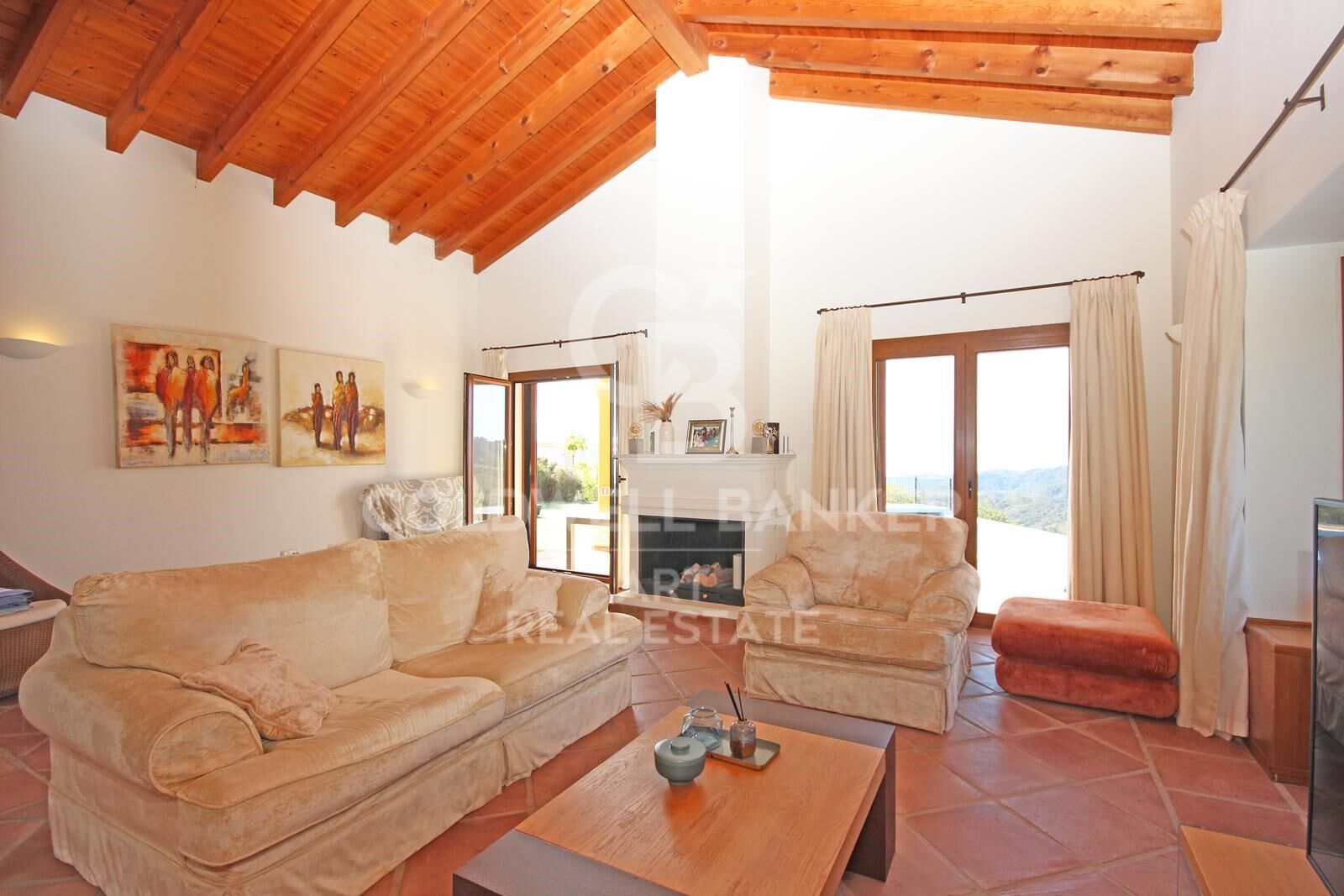 Diseñada tanto para la comodidad como para la sofisticación, la villa cuenta con cinco habitaciones de generosas dimensiones, cuidadosamente dispuestas para adaptarse tanto a la vida familiar como al entretenimiento. La amplia sala de estar cuenta con techos altos y una elegante chimenea, creando un ambiente cálido y elegante. Las ventanas del piso al techo se abren a la perfección a las terrazas al aire libre, difuminando las líneas entre la vida interior y exterior mientras muestran el impresionante entorno de la casa.