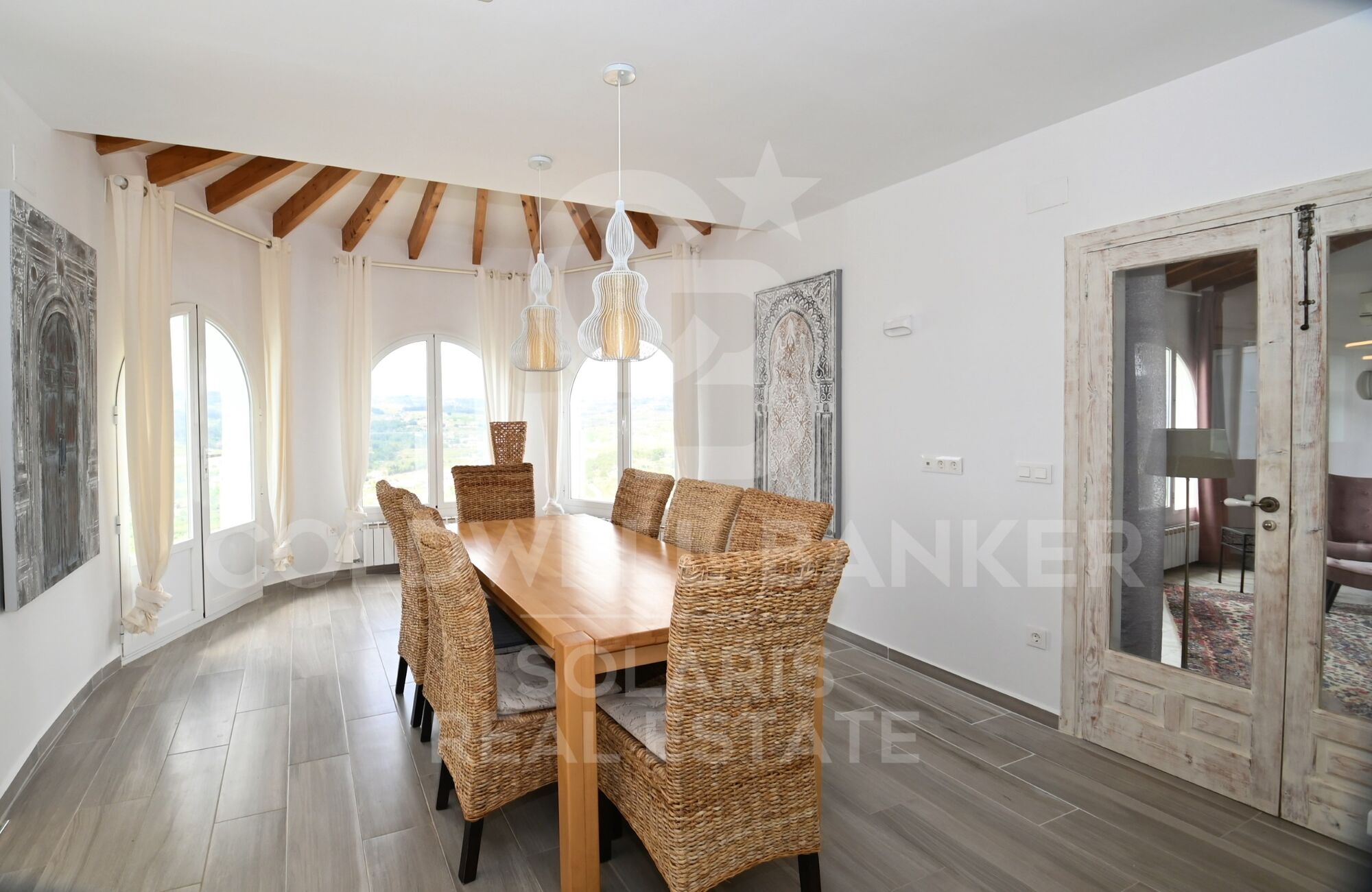 La vivienda ha sido diseñada para aprovechar al máximo la luz natural y las vistas. Los amplios ventanales y las puertas acristaladas en todas las estancias permiten una conexión constante con el entorno.