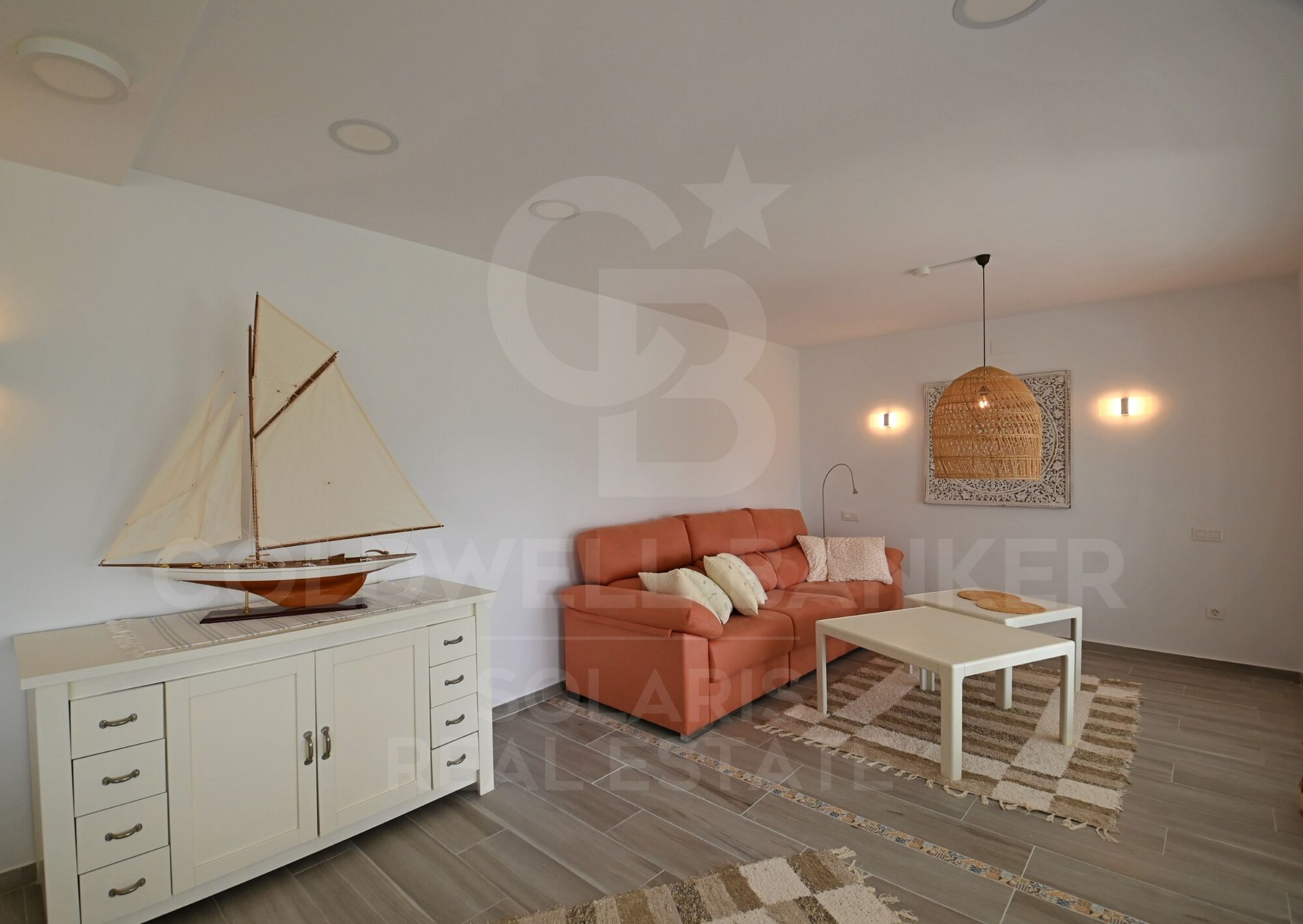La terraza ofrece espacio suficiente para tumbonas, zona de comedor al aire libre y almacenaje estacional, convirtiéndose en un lugar perfecto para disfrutar del clima mediterráneo durante todo el año.