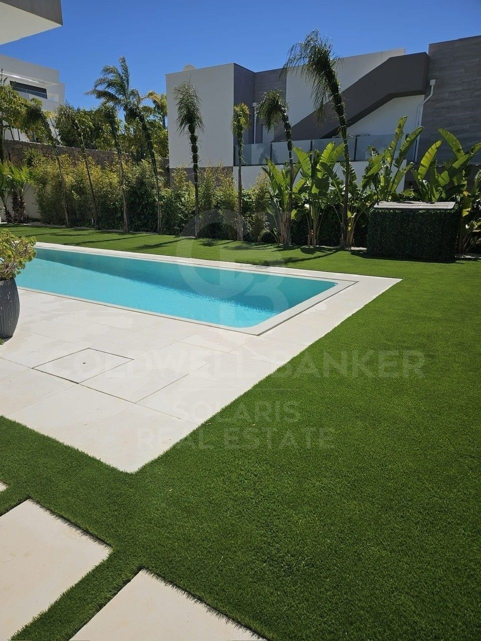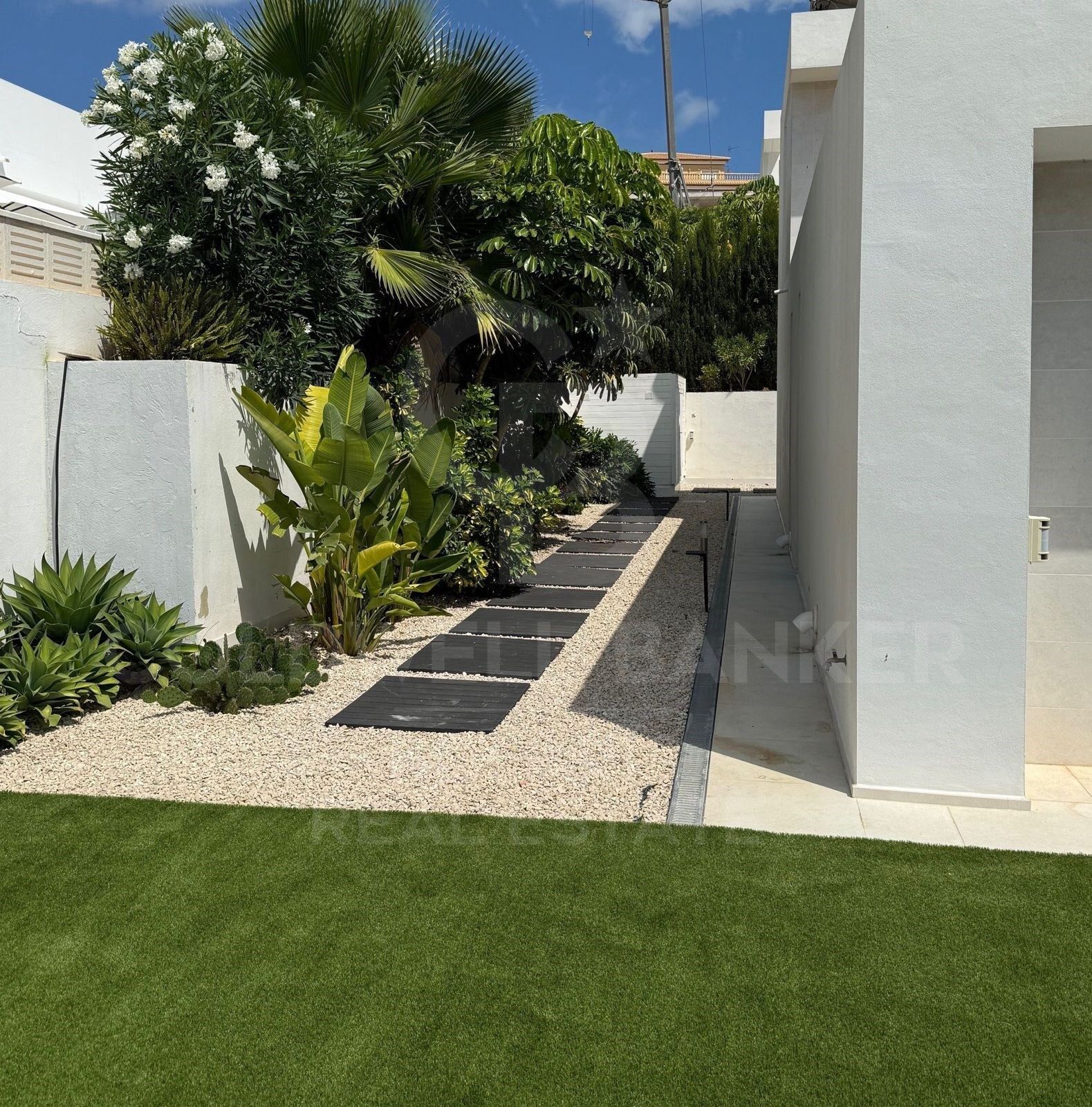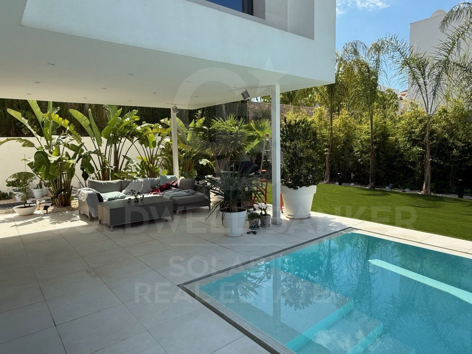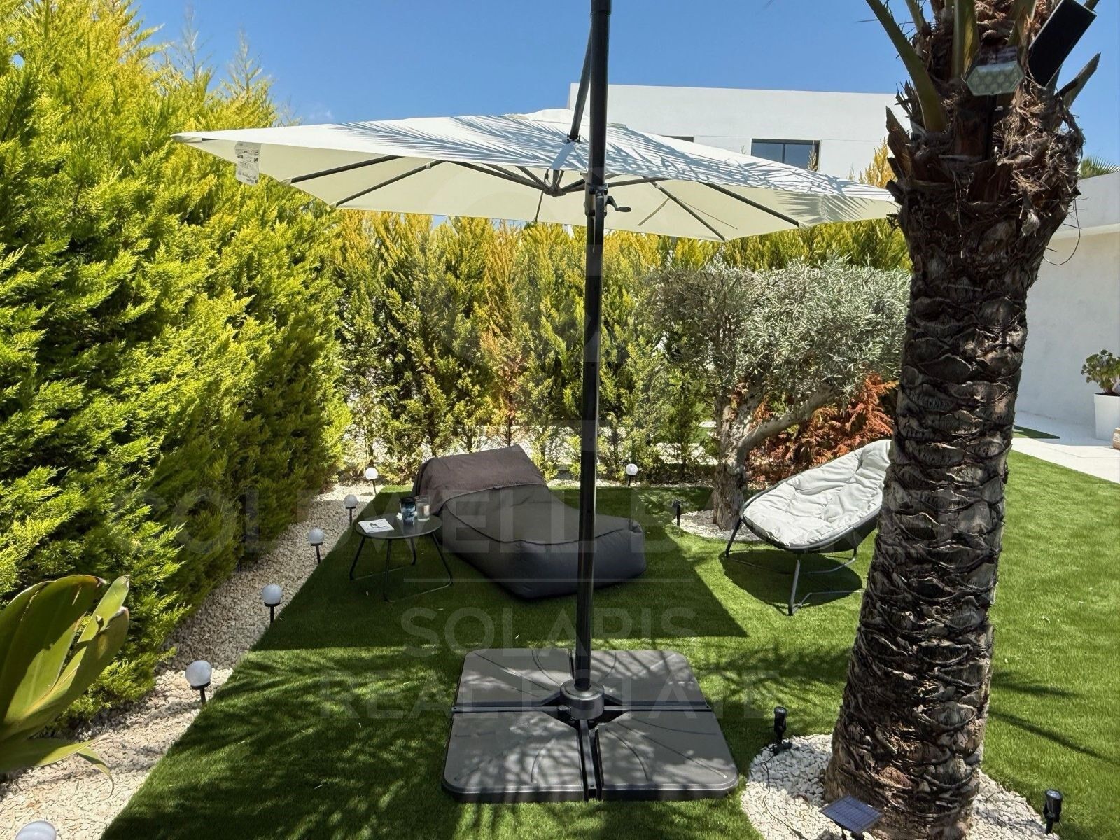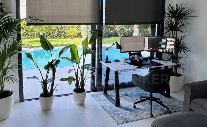 El exterior es un verdadero oasis: piscina privada, zona chill-out, jardín mediterráneo con vegetación autóctona, y un garaje cerrado que aporta seguridad y comodidad. Todo ello enmarcado por una orientación óptima que garantiza sol durante todo el día y vistas abiertas que refuerzan la sensación de libertad.
