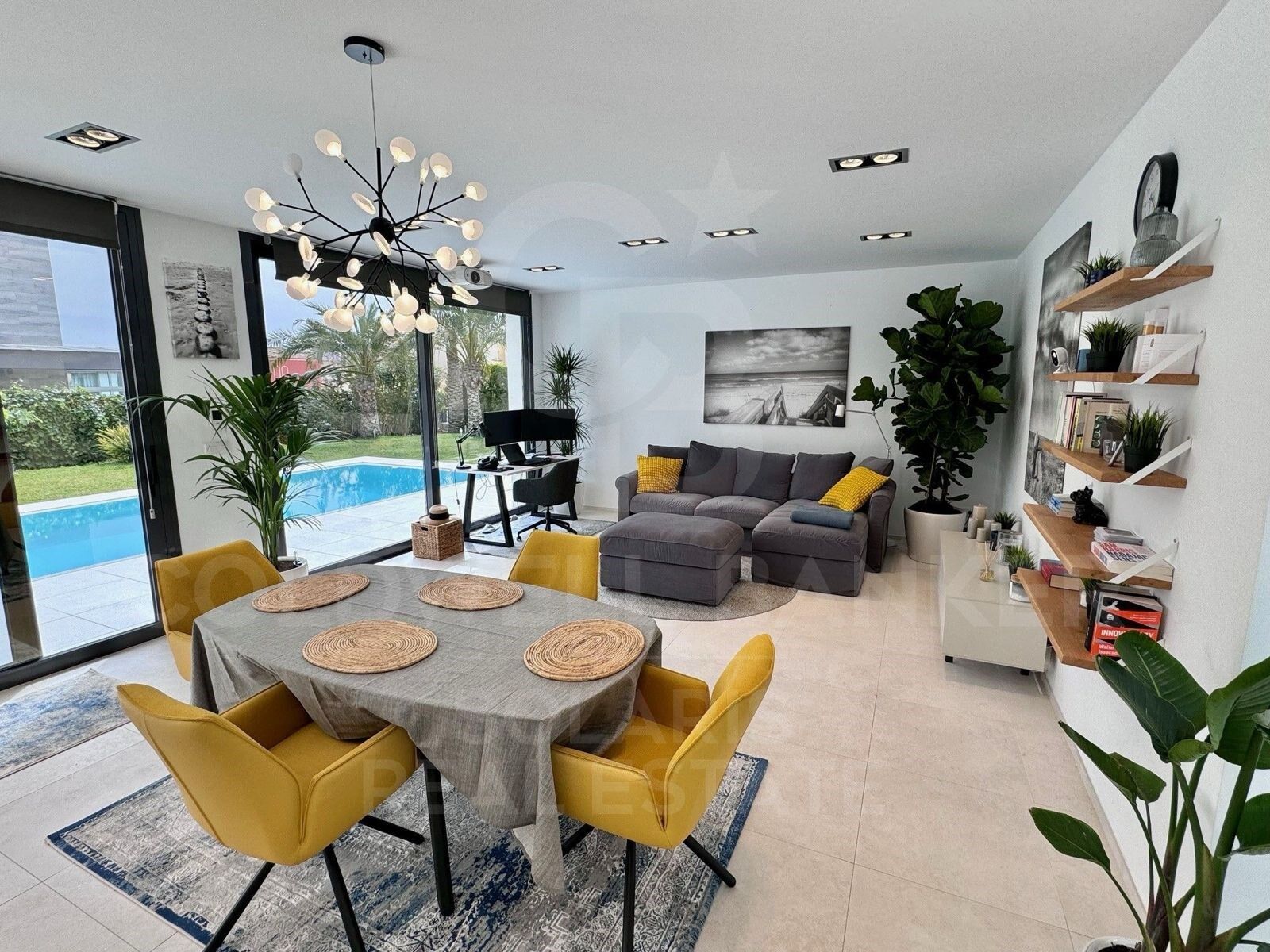 Desde el exterior, su arquitectura de líneas limpias y volúmenes bien definidos transmite elegancia y modernidad. Grandes ventanales y espacios abiertos permiten que la luz natural bañe cada rincón, creando una atmósfera acogedora y vibrante. La planta principal alberga un amplio salón-comedor con acceso directo a la terraza y piscina, una cocina abierta totalmente equipada, y zonas de descanso que combinan privacidad y confort.