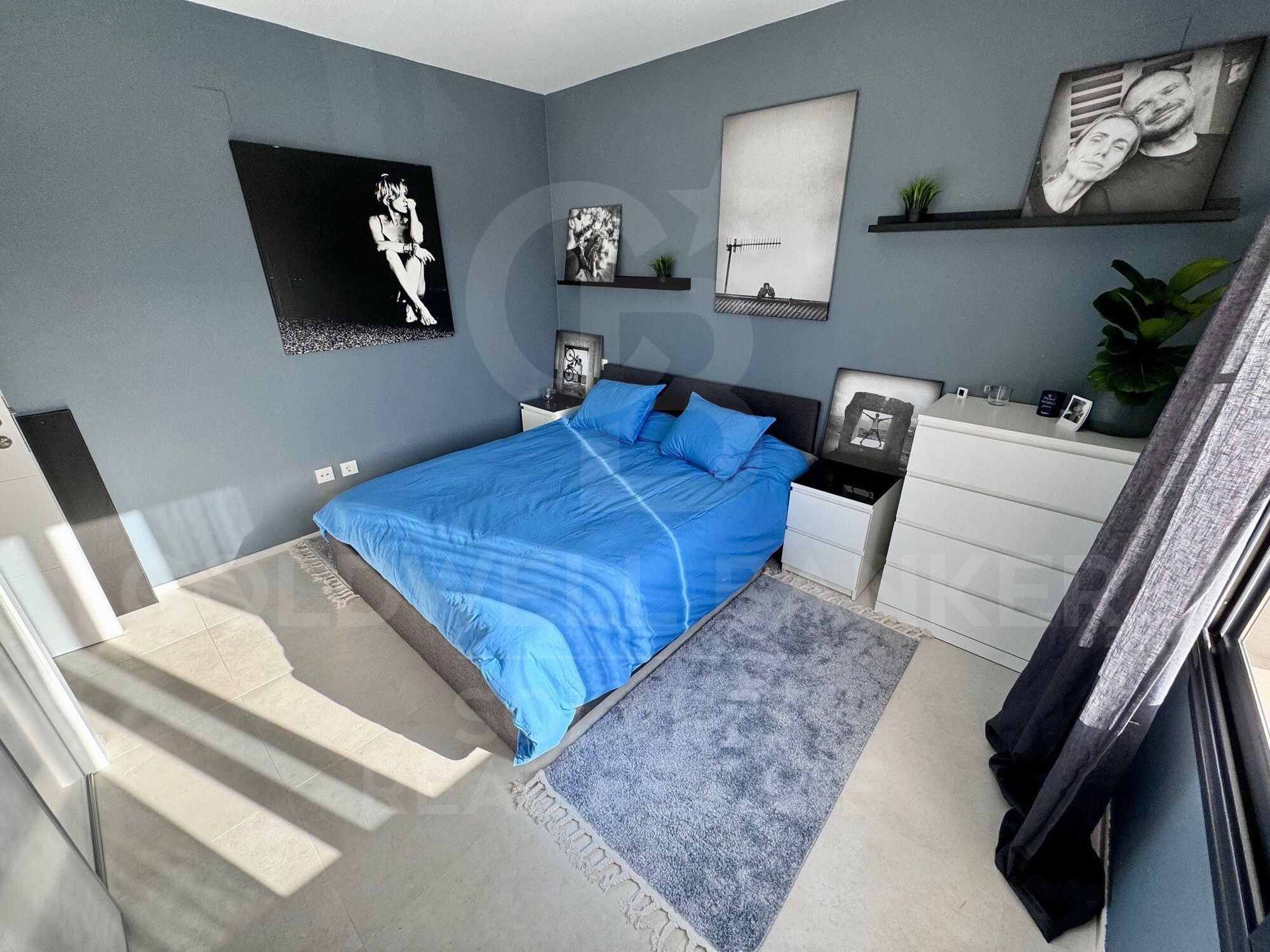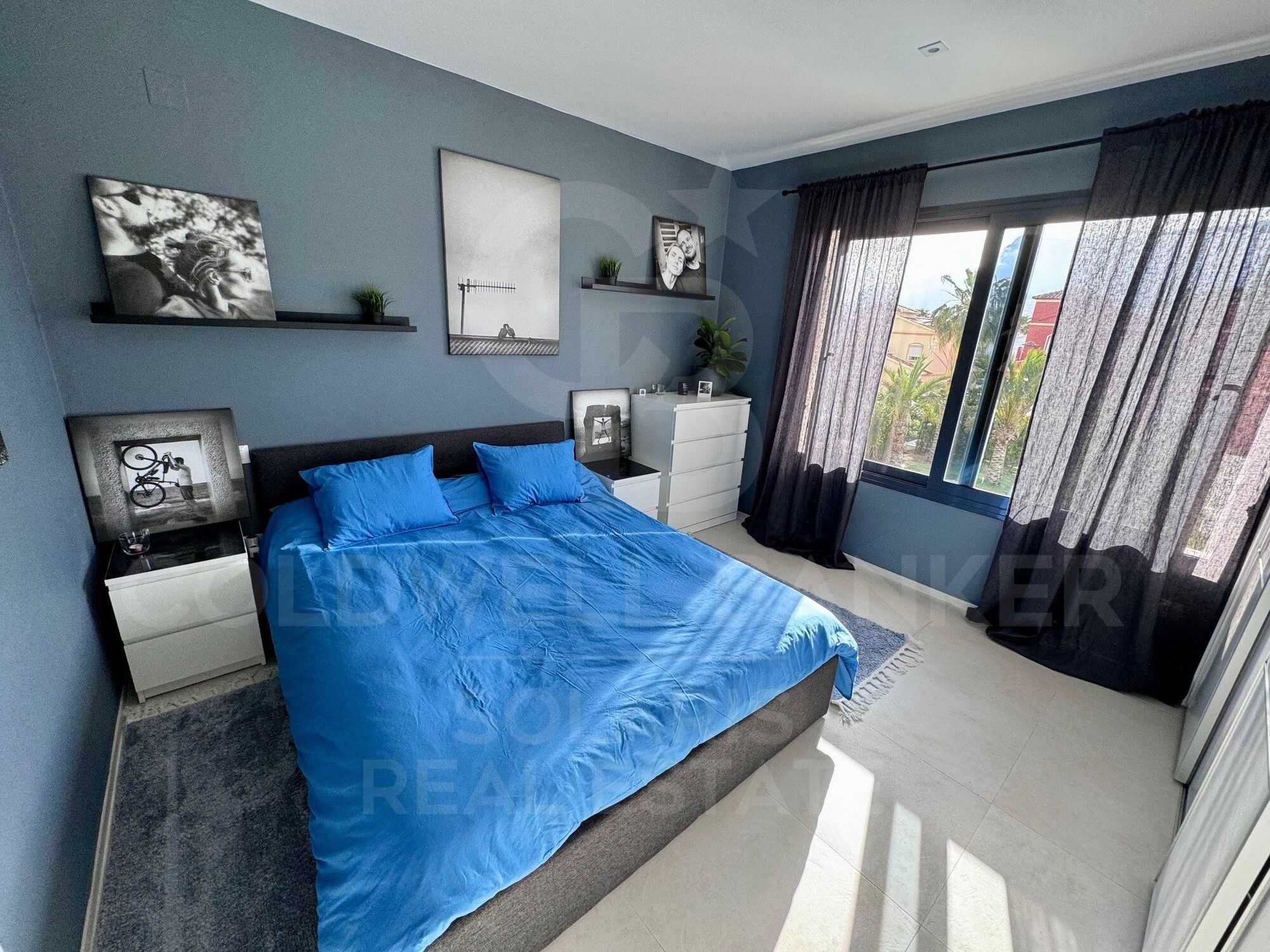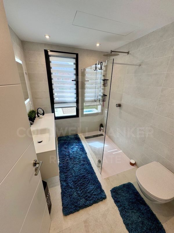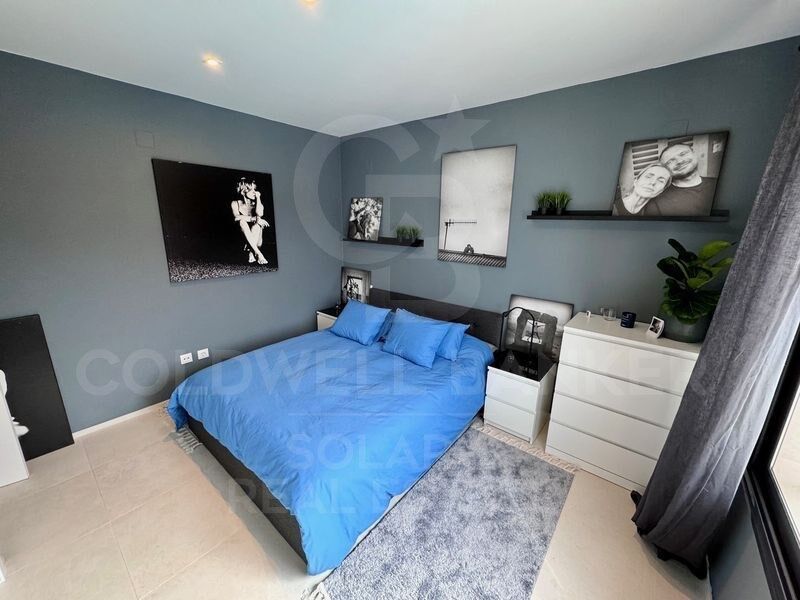 Los tres dormitorios, todos de generosas dimensiones, están diseñados para ofrecer tranquilidad y funcionalidad. Cada uno cuenta con armarios empotrados y acceso a baños modernos, con acabados de alta gama y detalles cuidados al milímetro. La suite principal, ubicada en la planta superior, disfruta de vistas despejadas y acceso a una terraza privada, ideal para disfrutar del amanecer o una copa al atardecer.