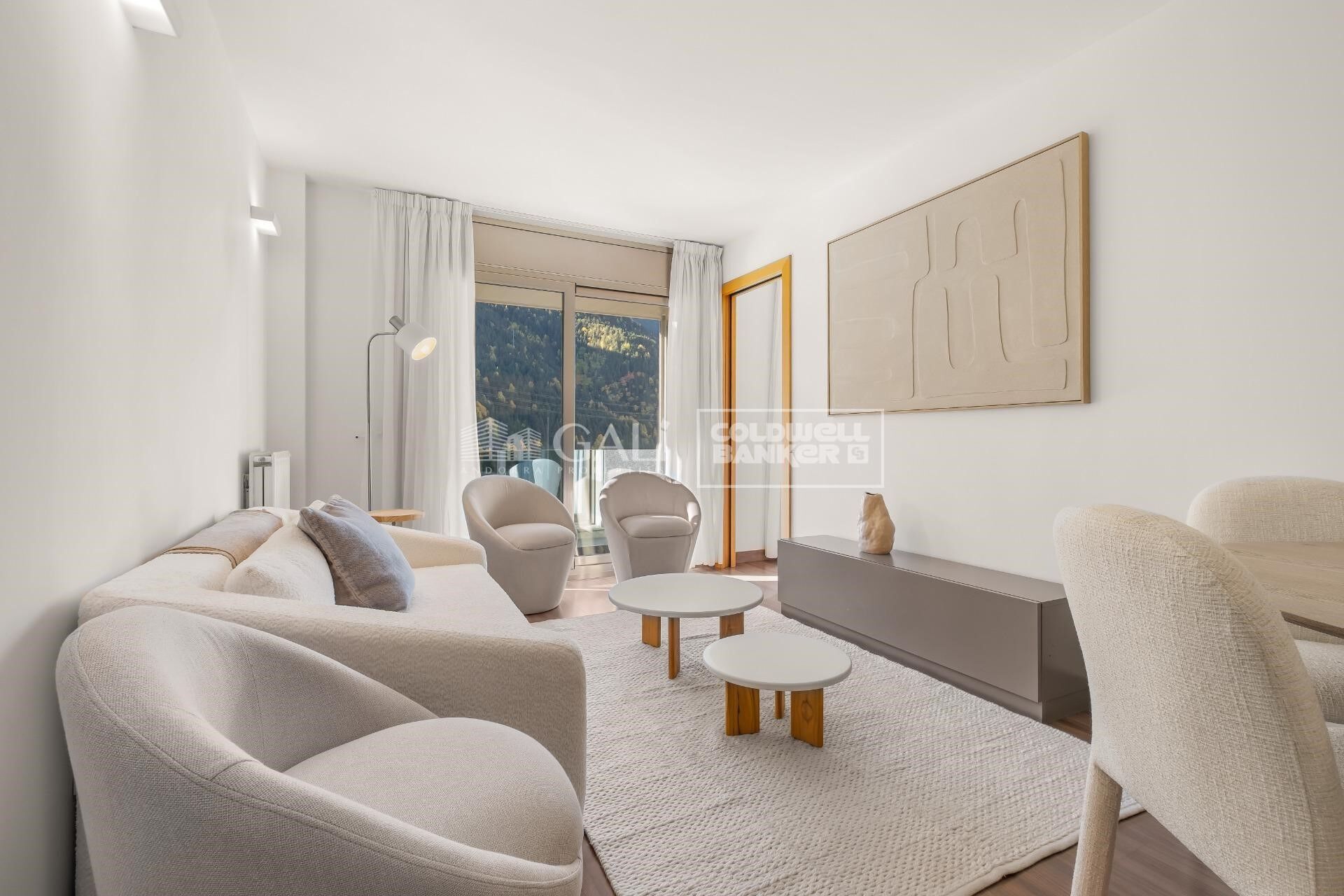 Buena ocasión de compra, para inversores o para gente con ganas de vivir en una zona tranquila y disfrutar de las vistas hacia las pistas de Tarter.~~Este piso se encuentra ubicado al inicio del pueblo de Ransol y a tan solo a 5 min en coche de las pistas de esquí. ~~Distribuido en dos dormitorios dobles, de los cuales uno en suite, otro baño completo además de un pequeño espacio destinado a lavandería, salón comedor y cocina office. ~~Desde el dormitorio principal y desde el salón accedemos al balcón para disfrutar las vistas o de los días soleados, desde el otro dormitorio doble accedemos a una terraza lateral para hacer comidas en familia o simplemente para tumbarse y aprovechar la tranquilidad de la zona.~En el precio incluye plaza de aparcamiento y trastero. ~~Se vende sin muebles. ~~No pierda la oportunidad de visitar este piso, disponible para entrar a vivir. ~Para más información diríjase a Inmobiliaria Galí Canillo + (teléfono oculto)