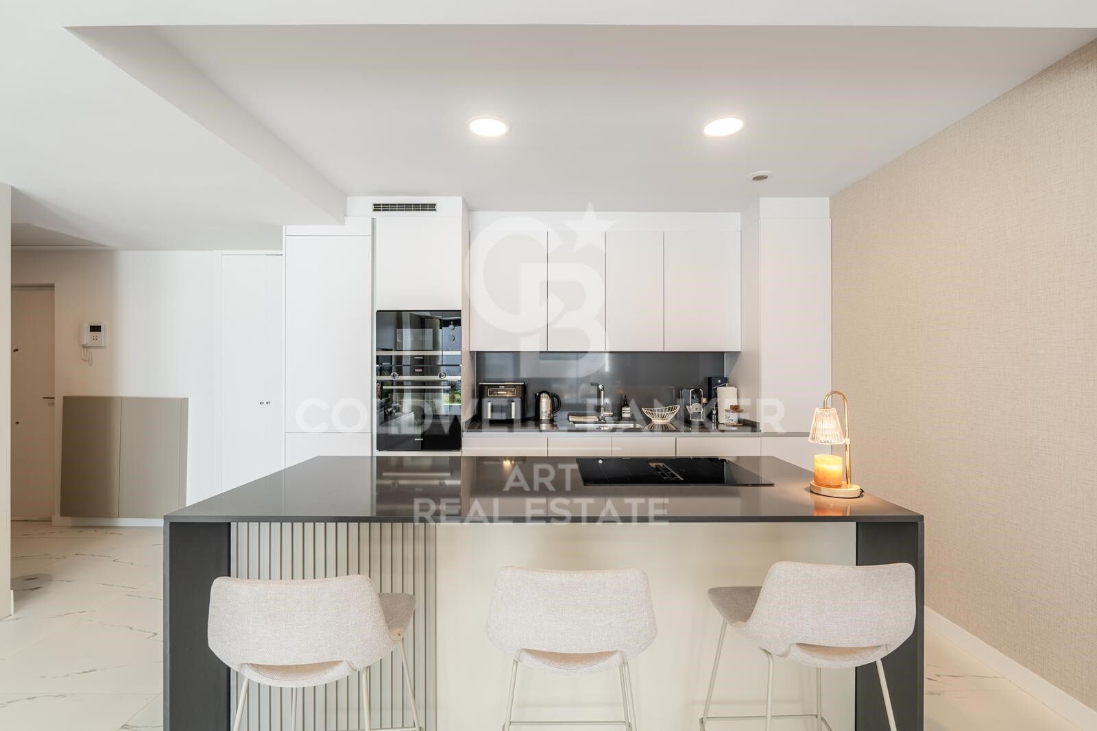 Coldwell Banker Anteris presenta este fantástico ático reformado con terraza privativa en la azotea, ubicado en una de las calles más cotizadas y tranquilas del barrio, rodeado de comercios y todo tipo de servicios. Situado en la última planta de una finca clásica de 1900 con ascensor, este luminoso piso ofrece 131 m² construidos más 41 m² de terraza privada, con una distribución pensada para el confort, la luz natural y la elegancia. Los techos altos y las vigas de madera aportan calidez y carácter, mientras que los suelos de parquet natural y las carpinterías exteriores garantizan confort y estilo. El salón-comedor destaca por su amplitud y luminosidad gracias a sus cuatro balcones, la cocina americana está completamente equipada con electrodomésticos integrados y una pequeña vinoteca. Todo ello con el caracter añadido que ofrecen las bigas de madera en el techo. La zona de noche incluye un dormitorio doble en suite y el dormitorio principal en suite con vestidor y un balcón exterior con luz de mañana. Además, existe un proyecto del arquitecto para convertir la propiedad en tres habitaciones, lo que aporta flexibilidad a futuros propietarios. Entre sus características, destacan instalaciones renovadas, aire acondicionado por conductos, techos con vigas de madera, suelos de parquet natural y carpintería exterior de doble acristalamiento, garantizando confort, eficiencia y estilo. Gracias a su ubicación privilegiada, a pocos pasos de tiendas, cafés, mercados locales y transporte público, este ático es ideal tanto como vivienda lista para entrar a vivir como excelente inversión en un barrio consolidado y con alta demanda en Barcelona. Un hogar con luz, diseño y carácter que combina la exclusividad de una terraza privada con la comodidad de vivir en pleno corazón de la ciudad. ¡Contáctanos y agenda tu visita! #ref:AV255
