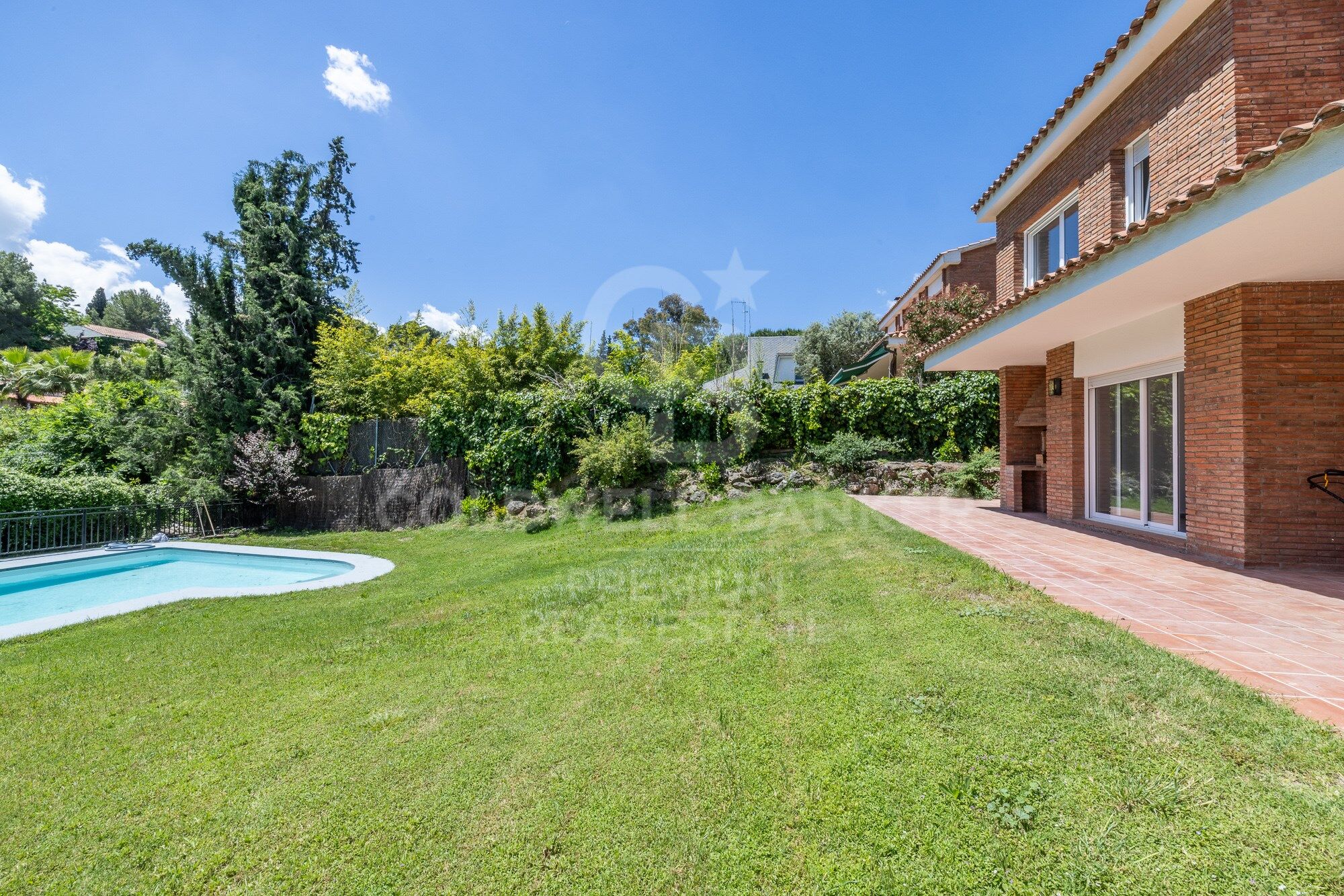Si paseamos alrededor de la casa cada rincón se presenta cuidado y tiene su funcionalidad. A parte de la gran extensión de césped verde, la casa cuenta algunos magníficos arboles. En la entrada principal se conserva un pino impresionante y en la piscina dos cedros que proporcionan la sombra necesaria. En la parte este de la casa tenemos la zona de árboles frutales.