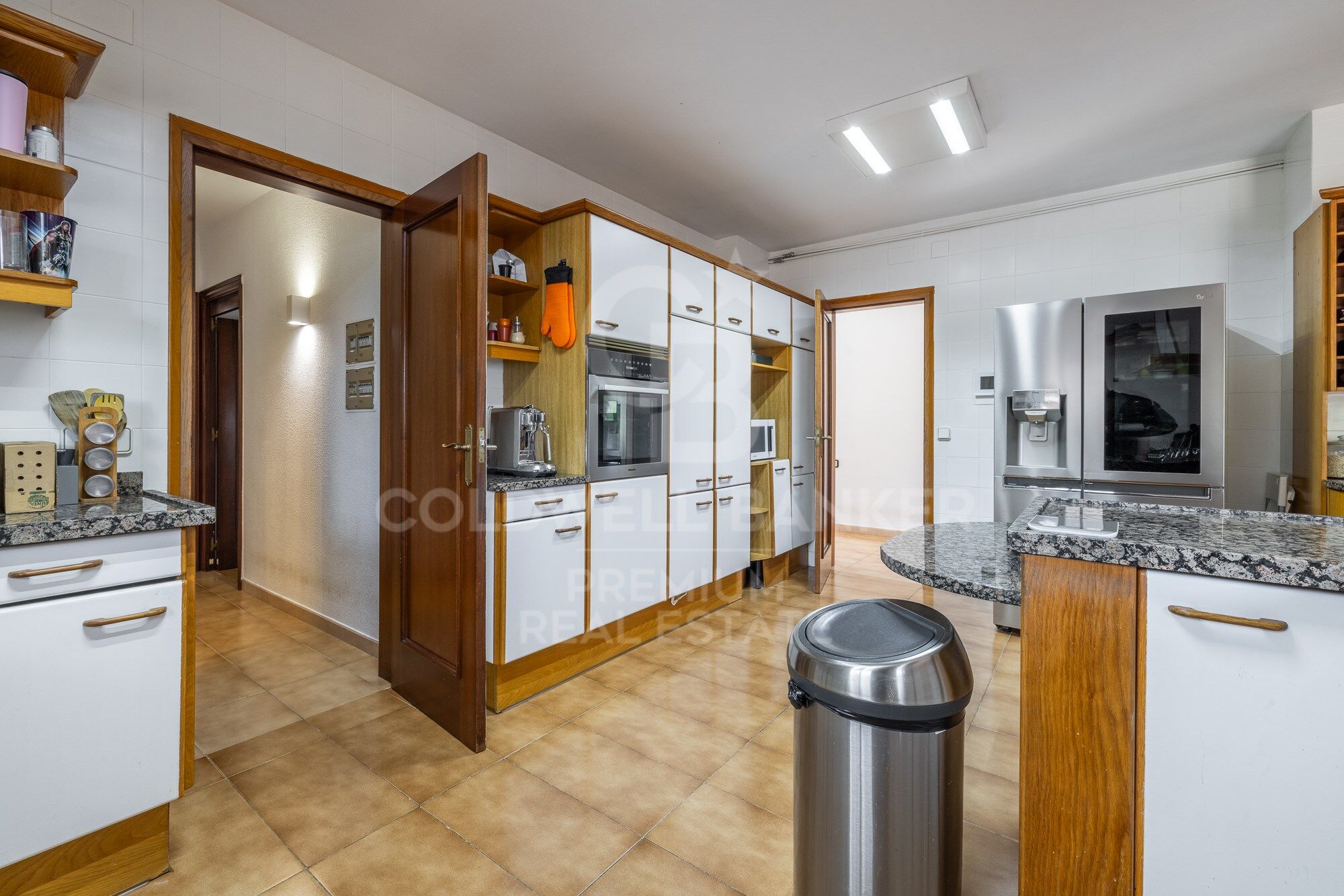 Un olivo centenario nos da la bienvenida. Accedemos a la casa y un gran recibidor nos separa las zonas comunes del resto de estancias. A la derecha accedemos hasta un primer salón que nos permite ver la inmensa extensión de césped que llega hasta la piscina, todo a un mismo nivel y la frondosa vegetación que corona todo su perímetro. Desde este salón podemos salir a un agradable porche que acoge un comedor de verano. Volviendo al interior a continuación se sitúa el salón principal con magnífica chimenea desde donde no perdemos de vista todo el jardín a través de los grandes acristalamientos. El otro gran protagonista es un precioso patio interior que inunda de luz toda la zona. A continuación tenemos el comedor que comparte patio interior. Llegamos a la amplia cocina con zona office y se complementa con sala de lavandería y planchado. Desde la cocina podemos salir a una terraza para desayunos y comidas equipada con barbacoa y a la parte del jardín que acoger el huerto y los árboles frutales. La zona de noche se distribuye a lo largo del patio central acristalado. Disponemos de 5 habitaciones y tres baños y cuenta con acceso independiente al jardín.