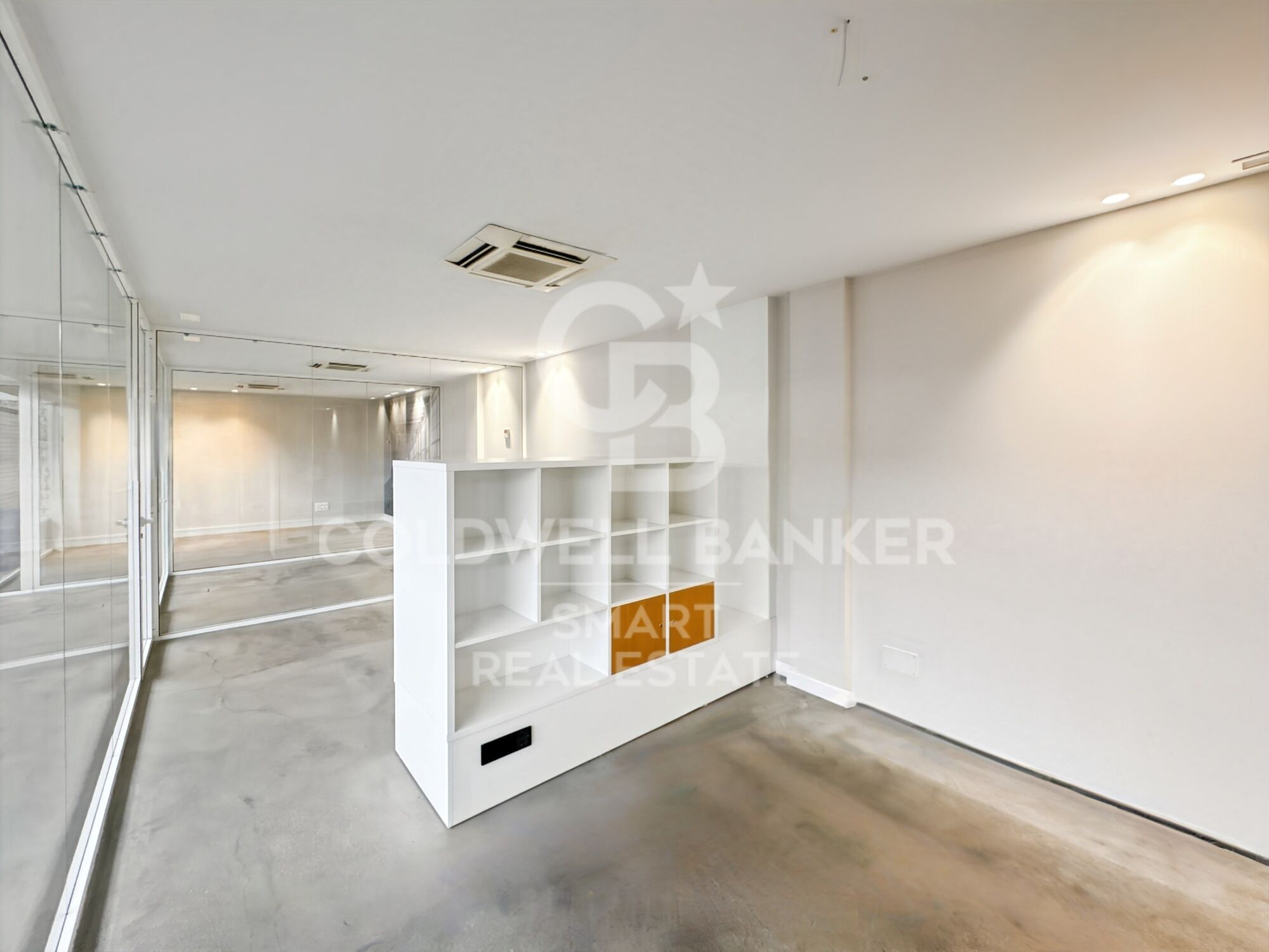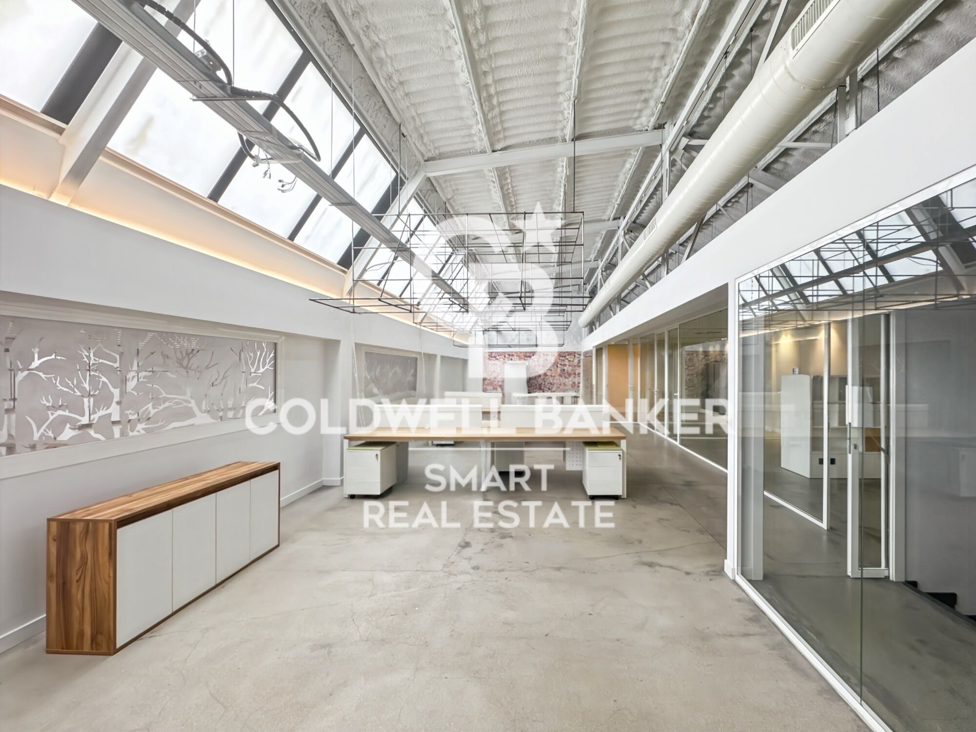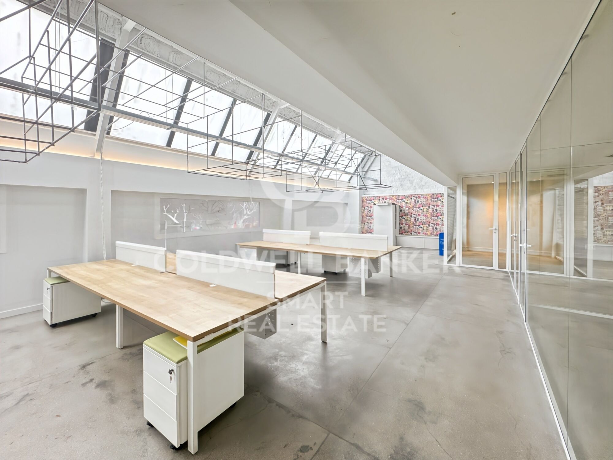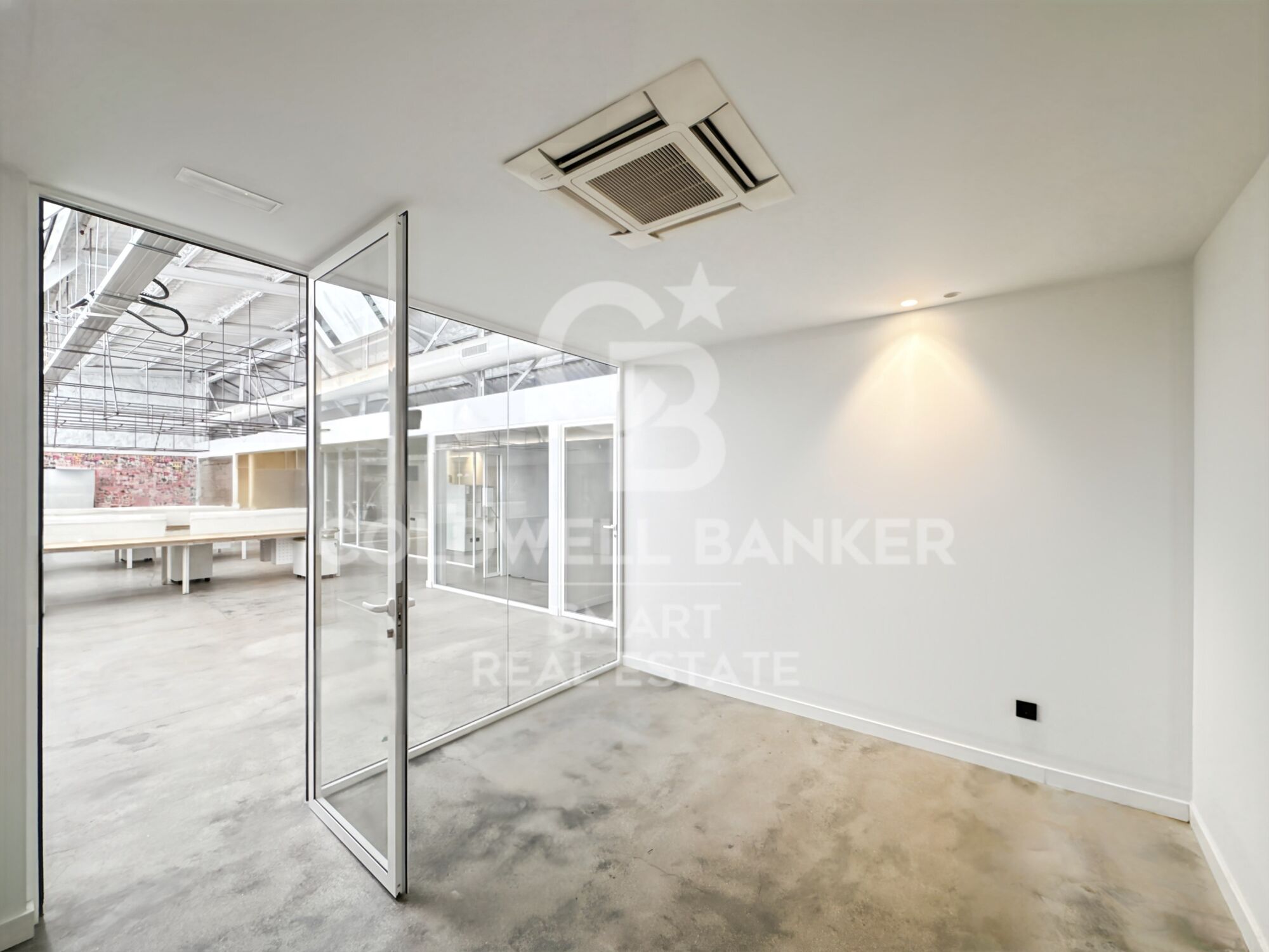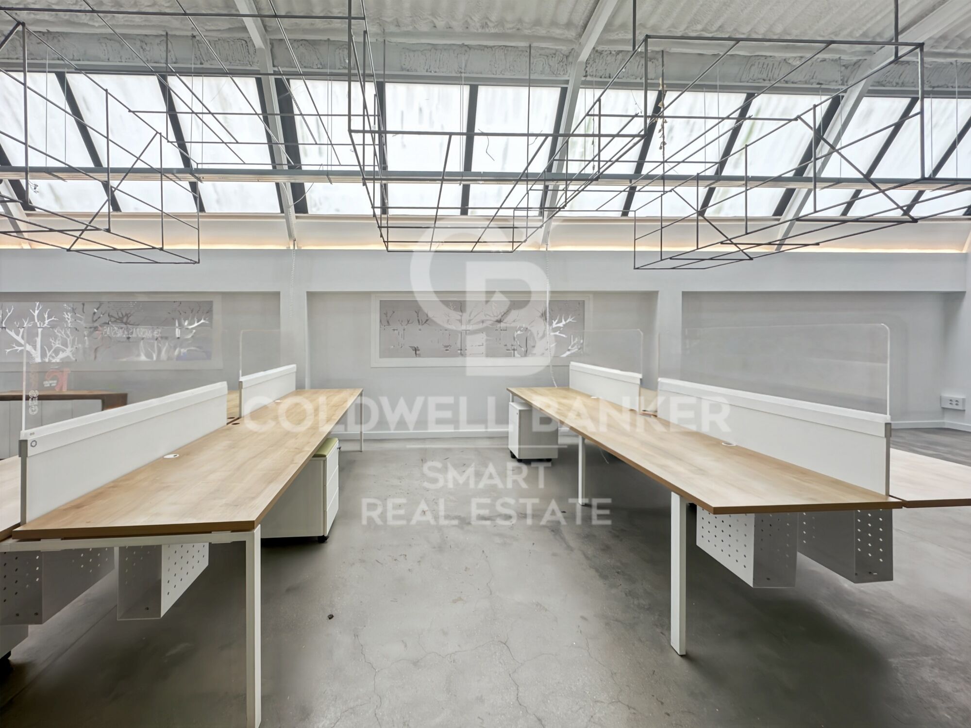 La oficina disfruta de luz natural directa a través del techo, lo que la hace especialmente agradable. Los baños son compartidos y se encuentran en el mismo edificio. También cuenta con zona de office compartida.