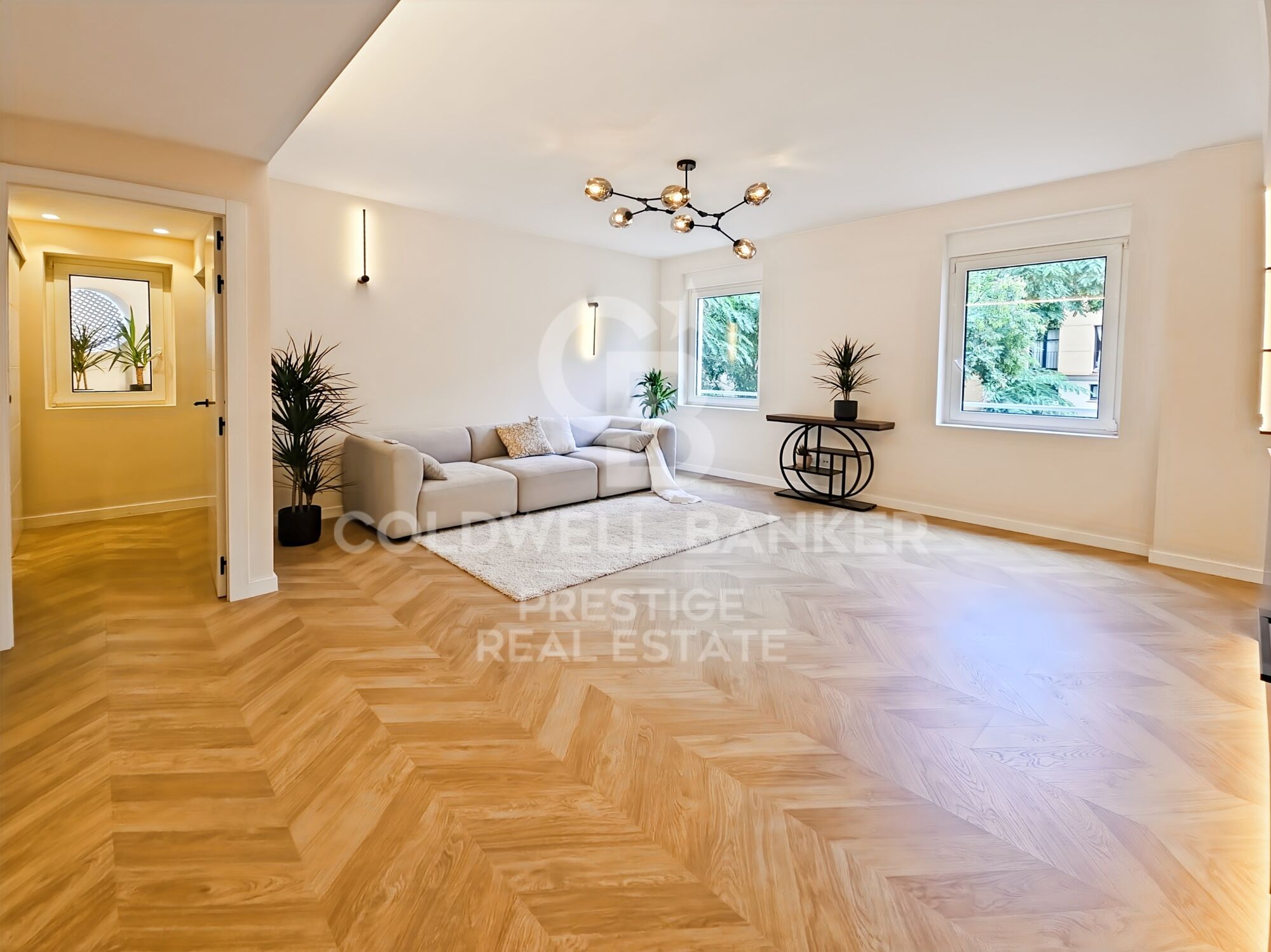 Beim Betreten erwartet Sie ein heller, luftiger Wohnraum mit Klimaanlage, die das ganze Jahr über für Komfort sorgt. Der offene Grundriss eignet sich perfekt zum Empfangen von Gästen, während das natürliche Licht eine warme und einladende Atmosphäre schafft.