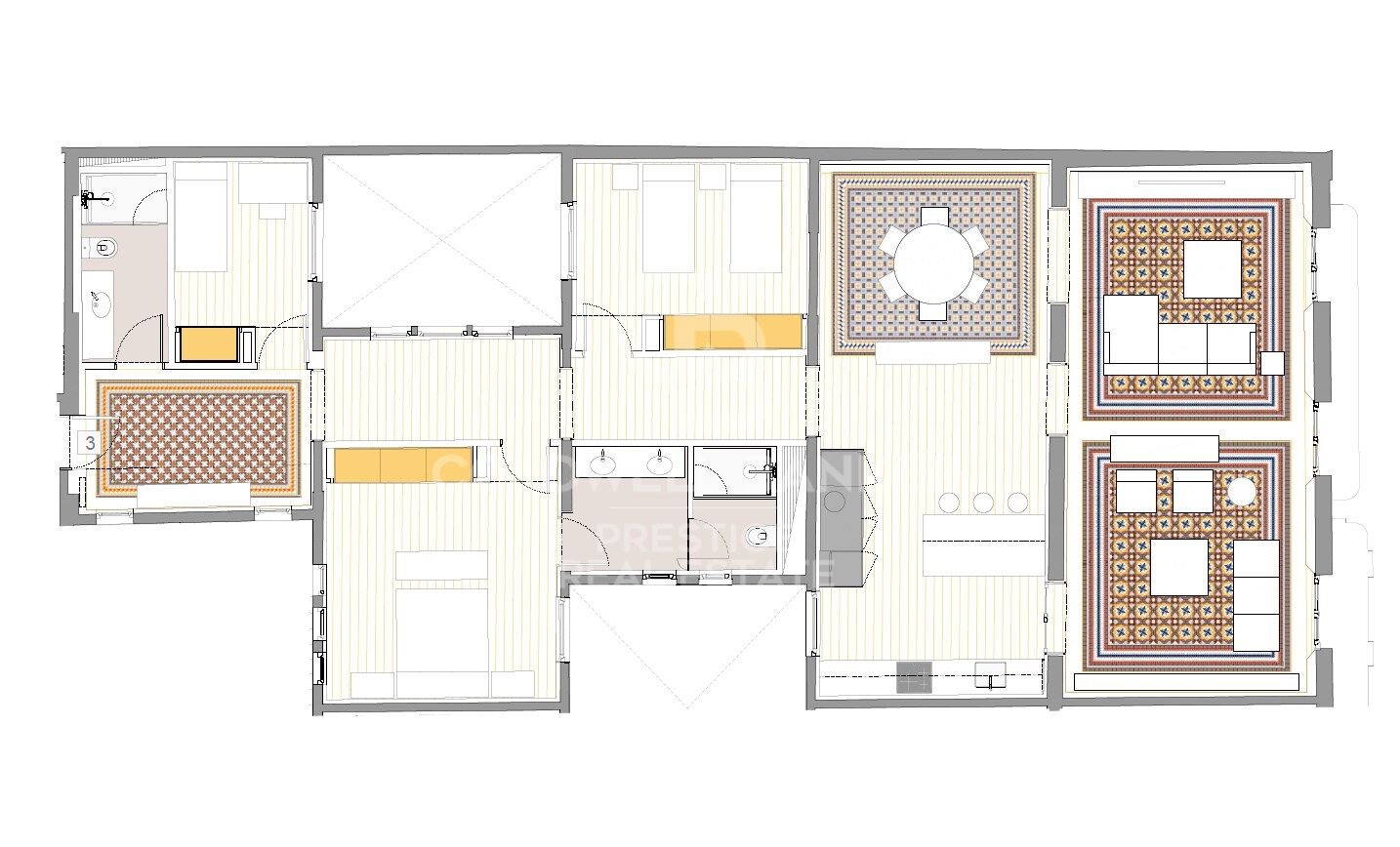 Nach einer umfassenden Renovierung im Jahr 2023 bietet die Casa Condeminas hochwertige Luxuswohnungen, einen Concierge-Service, Aufzüge, Gemeinschaftsbereiche mit Pool sowie eine Barbecue-Küche mit atemberaubendem Blick auf das Meer und den Hafen. In der Hauptetage dieses Gebäudes befindet sich diese wunderschöne 183 m² große Wohnung, die über drei Schlafzimmer verfügt, eines davon en suite mit Badezimmer und Dusche, ein großzügiges Wohnzimmer mit drei Balkonen und Blick auf den Hafen und die Stadt Barcelona, eine geräumige und voll ausgestattete Küche, sowie ein Gäste-WC/Waschraum. Stilvoll gestaltet, umfasst sie Schiebetüren für mehr Privatsphäre, Einbauschränke, Klimaanlage, Heizung, originale Fliesenböden und dekorative Deckenelemente. Ein wahres Kunstwerk.