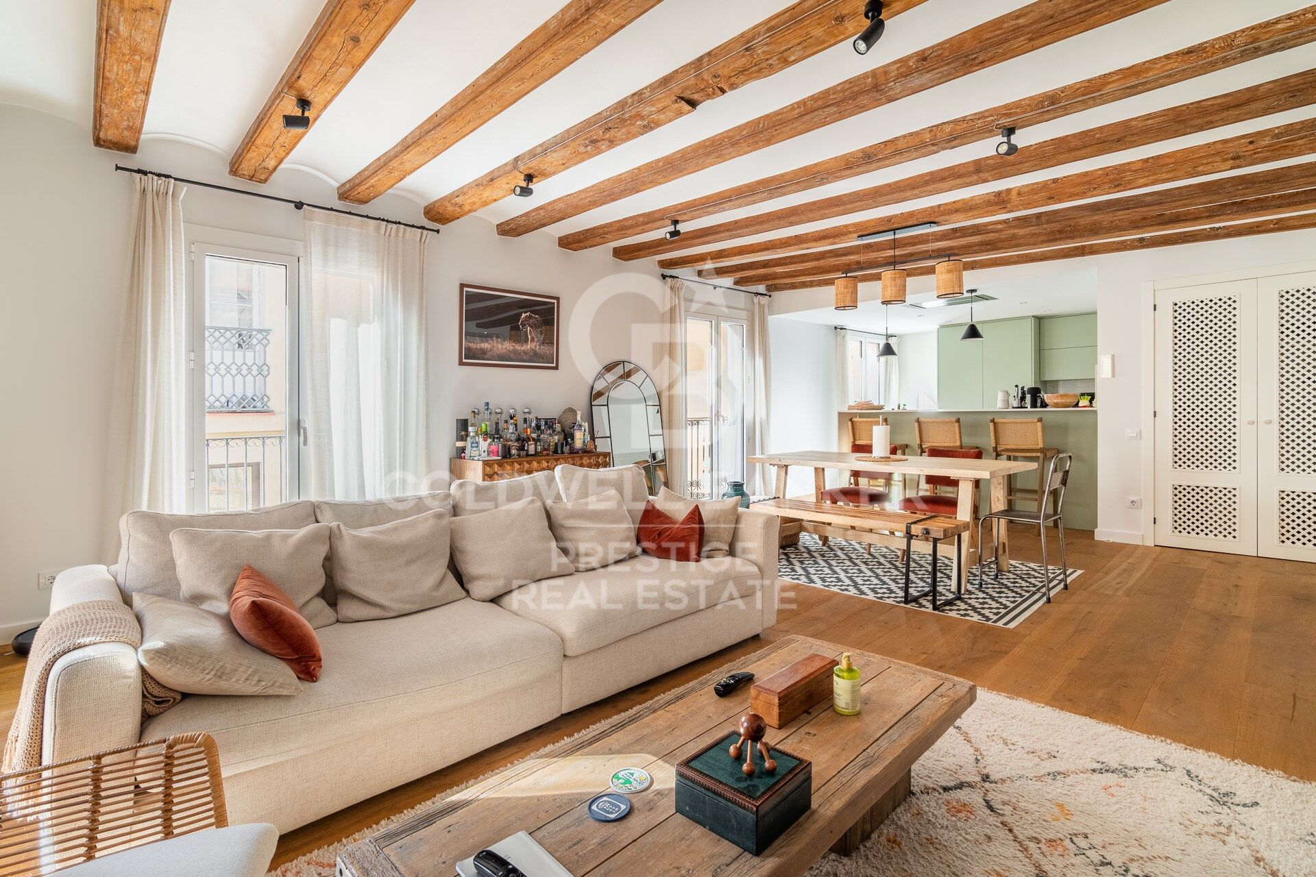 Wir präsentieren dieses exklusive Penthouse mit Charakter, gelegen in einer der begehrtesten Straßen des Viertels. Eine einzigartige Wohnung, die den Charme des Originals mit modernem Wohnkomfort vereint.