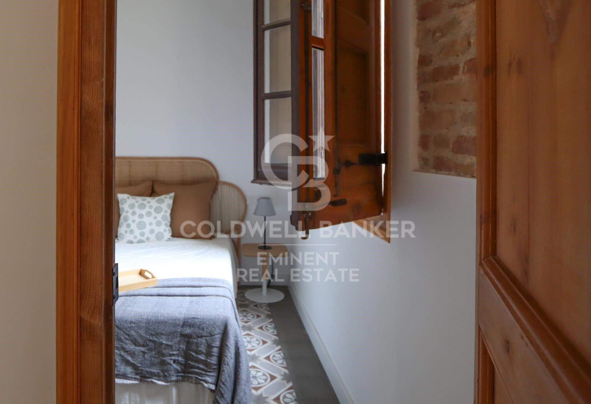 Coldwell Banker Eminent tiene el agrado de poner a su disposición esta vivienda de 85m2, totalmente reformada a nuevo, ubicada a escasos metros de La Rambla, en pleno corazón del Barrio Gótico. . . Se trata de la restauración de dos pisos ubicados en la segunda planta de un edificio del Siglo XVIII que conserva restos de un antiguo edificio de los siglos XV y XVI, el cual fue la sede de la procuraduría de Montserrat en Barcelona. La reforma ha sido realizada con materiales de alta calidad, cuidando los materiales originales y resaltando su belleza u esplendor original. El Departamento de Patrimonio de Barcelona ha supervisado y aprobado las obras, así encontramos suelos hidráulicos originales restaurados, pinturas originales en los techos y en algunas paredes se puede apreciar la piedra original. . . La entrada del edificio se encuentra en una calle peatonal privada a la que sólo pueden acceder los residentes de los pisos que quedan dentro, lo cual garantiza privacidad y tranquilidad.. . Los techos son de 4,5 metros de altura y se ha podido conservar la volta catalana decorada original, y las ventanas alcanzan una altura de 3,20 metros lo cual brinda mucha luz natural en cada ambiente ya que todas las habitaciones tienen ventanas exteriores. Las puertas y ventanas se han restaurado y se les ha ha puesto cristales dobles climalit para mejorar el rendimiento energético, conservando tanto el frío como el calor según la época del año. . Todas las instalaciones eléctricas y de cañerías son nuevas y se ha instalado un sistema de climatización para todas las estancias de la vivienda. . La idea de este proyecto ha sido respetar la historia del edificio agregando tecnología y confort actuales. . . La cocina americana está integrada y totalmente equipada con horno, horno microondas, y lavavajillas. . El baño posee una amplia ducha con hidromasaje, y estantería empotrada. Mediante el salón comedor se accede a una terraza privada de 7m2. . . Las dos habitaciones dobles permiten organizar un espacio confortable para el relax y el descanso. Ambas dan a una pasaje muy tranquilo, lo cual genera una atmósfera bucólica. . Hay un trastero espacioso y alto con conexión para la lavadora y espacio para almacenamiento.. . El salón cuenta con una hermosa ventana a una de las esculturas de la fachada del edificio.. . Todas las instalaciones son nuevas, y un sistema de aire acondicionado por conducto en todas las habitaciones garantiza la temperatura perfecta durante todo el año.. . Si quiere adquirir una propiedad única, en una ubicación inmejorable, no dude en concertar una visita con nosotros. Estamos a su disposición