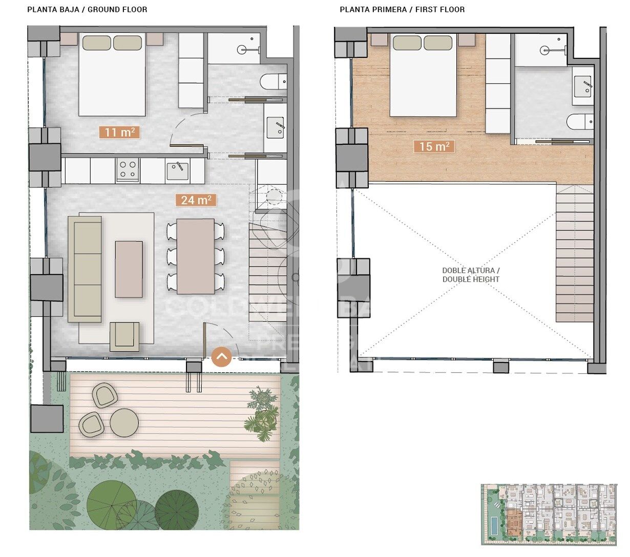 Es erstreckt sich über zwei Etagen und zeichnet sich durch große Räume, hohe Decken und hochwertige Ausstattungen aus, wie z. B. Naturholz- und Mikrozementböden, eine mit Siemens-Geräten ausgestattete Küche und ein Hausautomatisierungssystem.