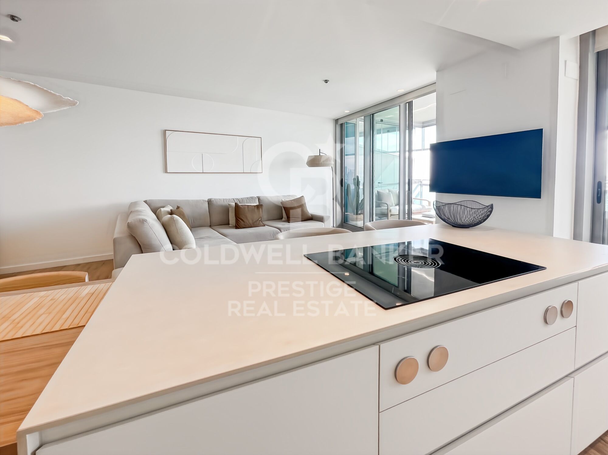 Coldwell Banker Prestige präsentiert diese elegante Wohnung in hoher Etage mit großer Terrasse, gelegen im renommierten Wohnkomplex Illa del Mar in Diagonal Mar, einer der exklusivsten Gegenden Barcelonas.
