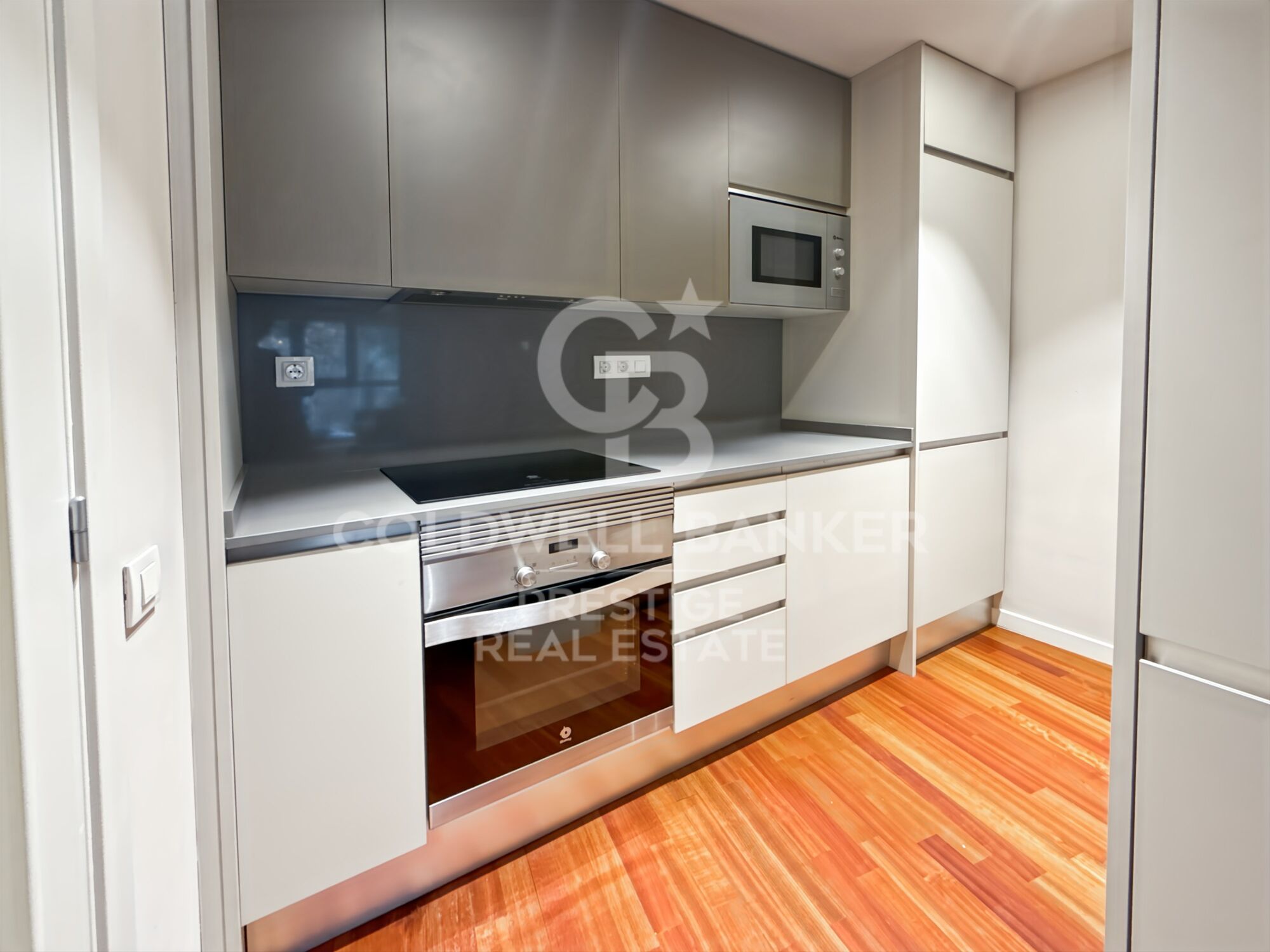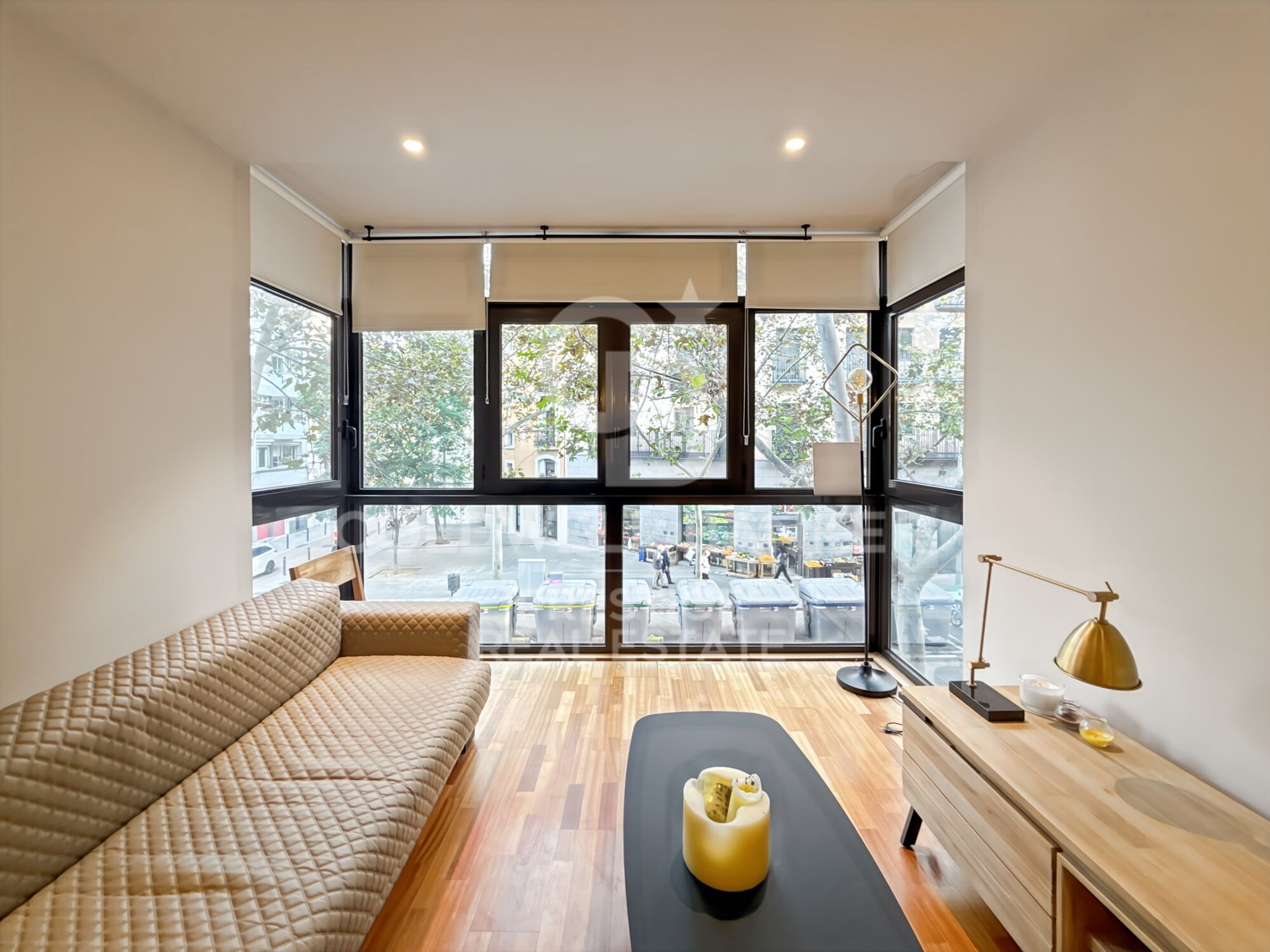 Die Wohnung wird komplett möbliert verkauft und ist bezugsfertig. Das Wohn- und Esszimmer verfügt über große Fenster, die den Raum mit natürlichem Licht füllen und einen freien Blick auf die Straße bieten. Die moderne, voll ausgestattete Küche ist praktisch in den Wohnbereich integriert.