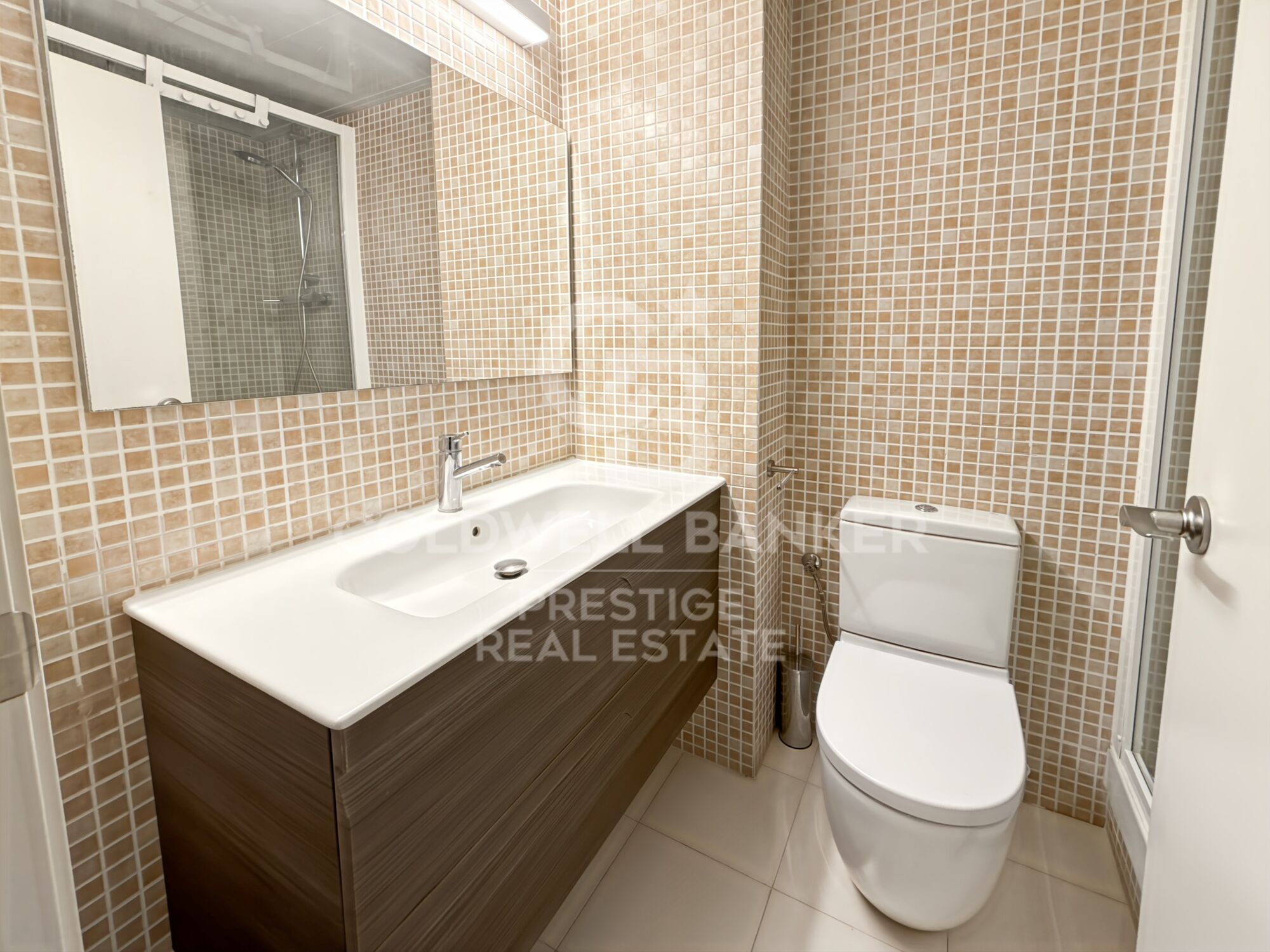 Im Schlafbereich befinden sich zwei Schlafzimmer - eines davon mit eigenem Bad - sowie zwei voll ausgestattete Badezimmer mit modernen Oberflächen. Holzböden verleihen der Wohnung Wärme und Charakter, während die Klimaanlage über Lüftungsschächte das ganze Jahr über für Komfort sorgt.