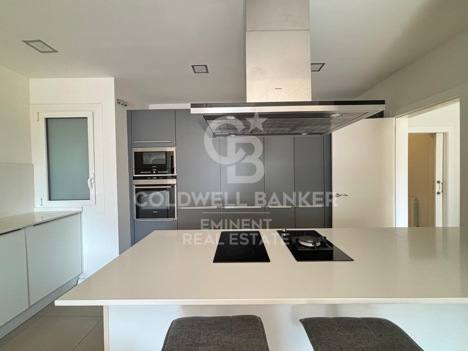 Die voll ausgestattete offene Küche ist meisterhaft in den Raum integriert, um ein größeres Raumgefühl zu vermitteln und das natürliche Licht optimal zu nutzen. Der Schlafbereich besteht aus drei Doppelzimmern, darunter die Master-Suite mit eigenem Bad und Ankleidebereich, während die anderen beiden Zimmer über ein zweites komplettes Badezimmer verfügen. Zudem ist die Wohnung mit Heizung und Klimaanlage ausgestattet.