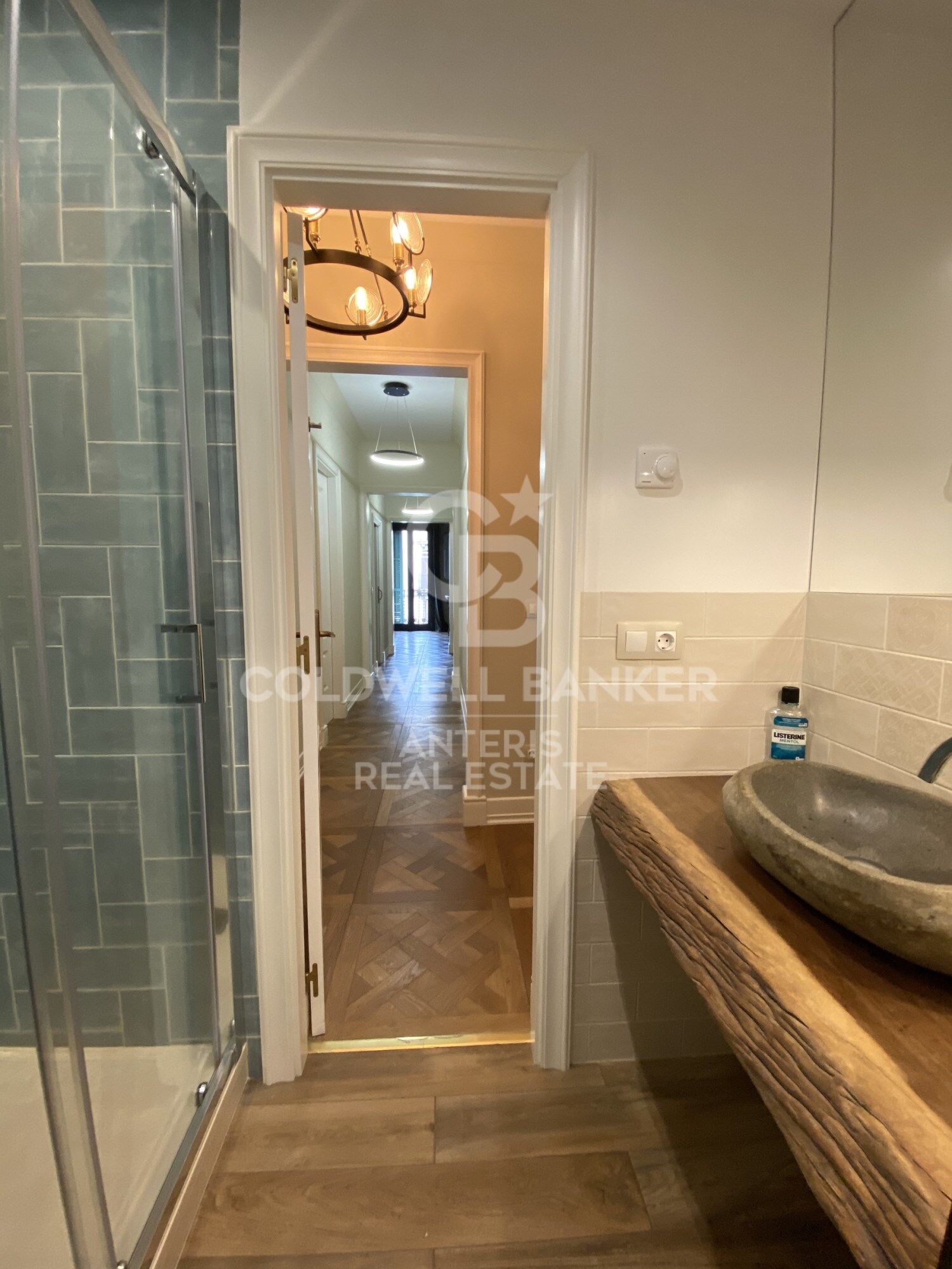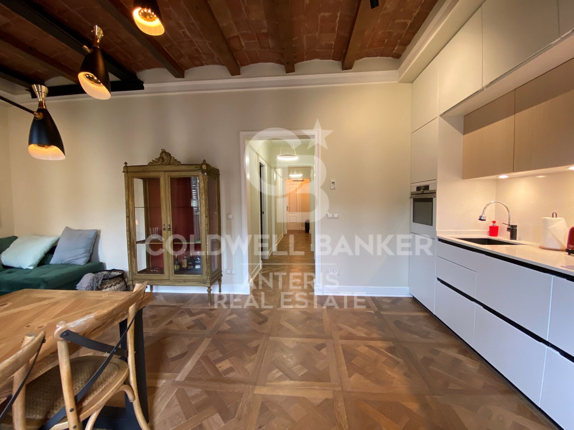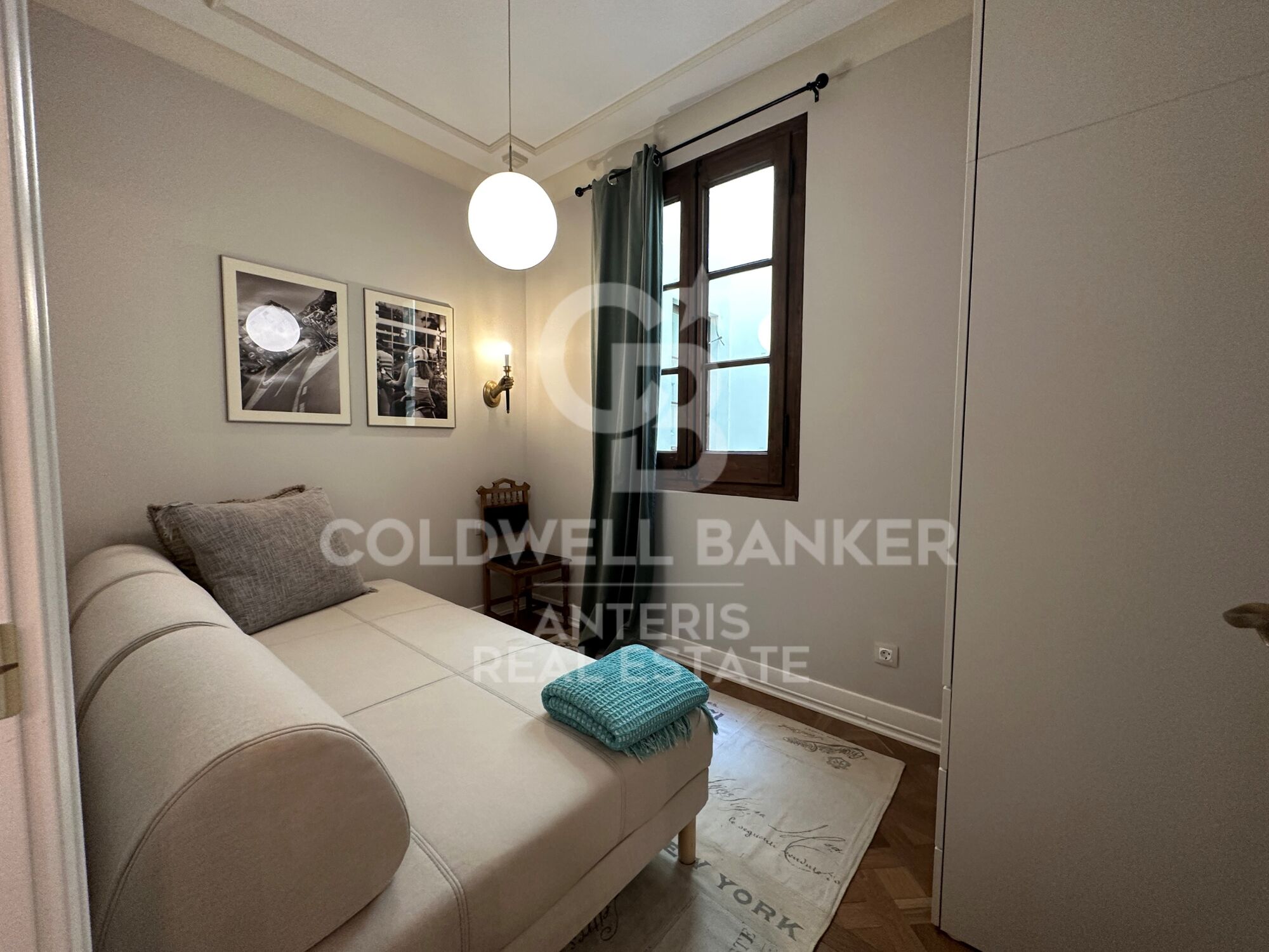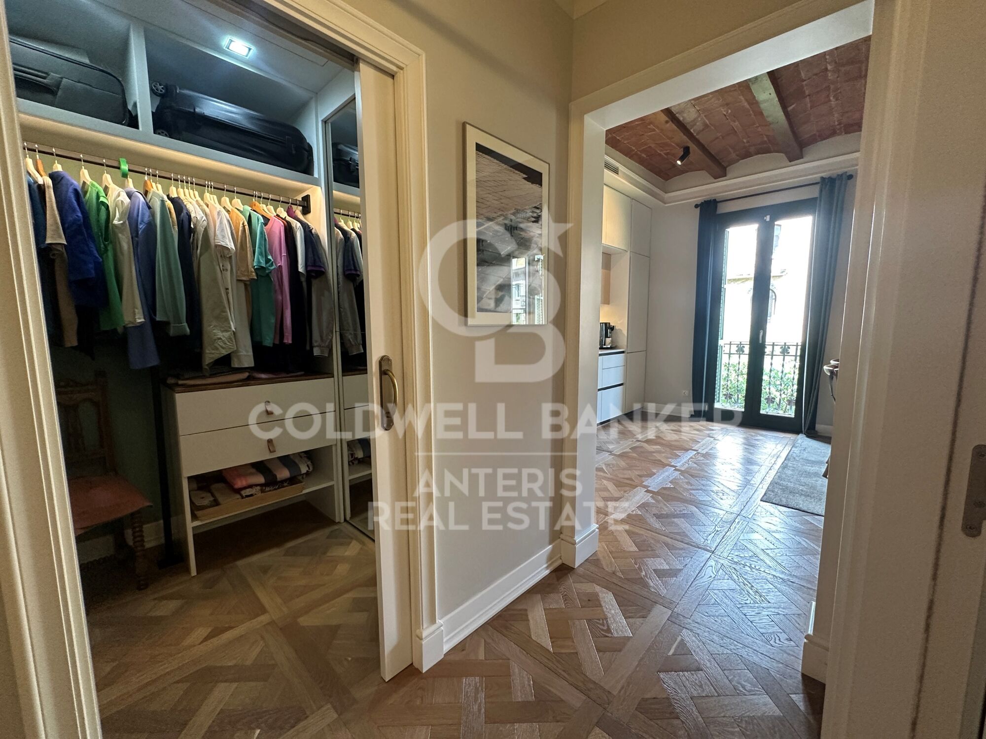 Situated on the fifth exterior floor of a beautifully preserved modernist building dating from 1920, the property is surrounded by all essential services, shops, and excellent public transport connections in central Barcelona.