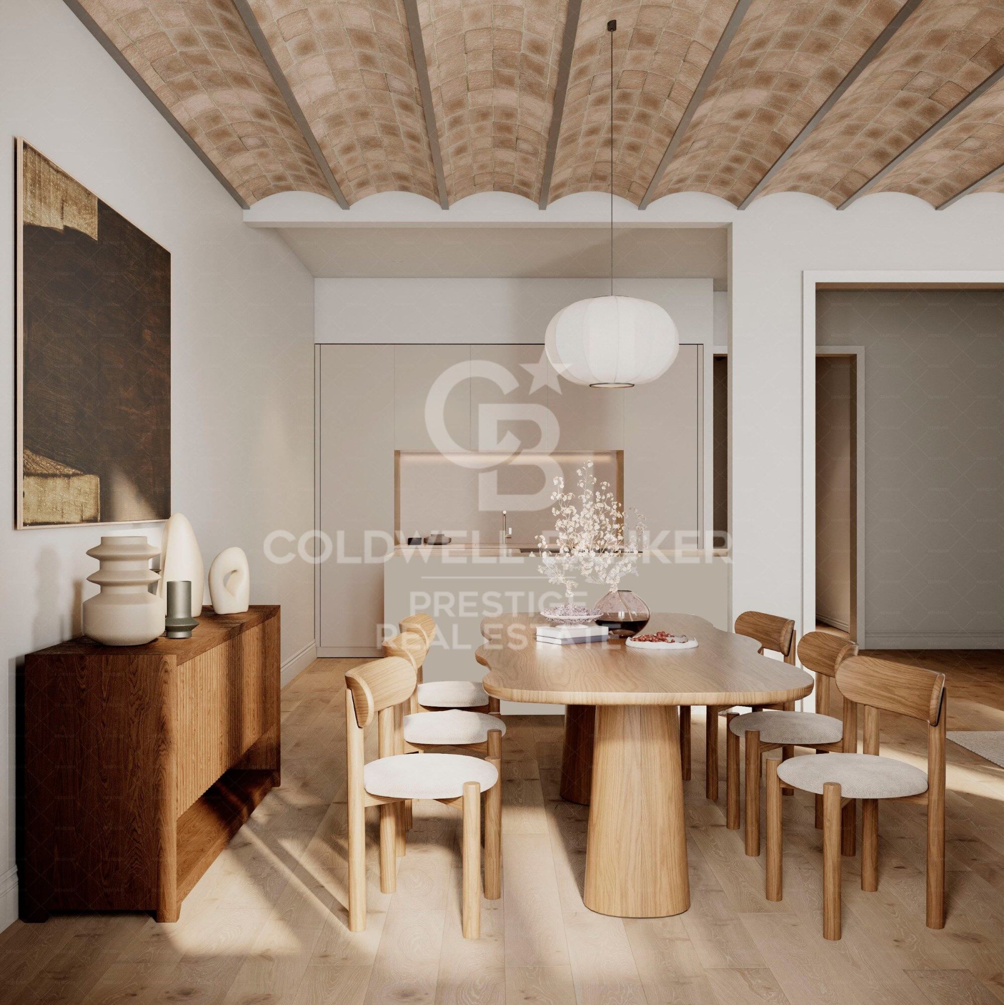 The property perfectly blends classic Barcelona architecture with contemporary comfort. It features a spacious living-dining area with an integrated Bulthaup kitchen and breakfast island, preserving original elements such as Catalan vaulted ceilings, exposed brick walls, and decorative moldings.
