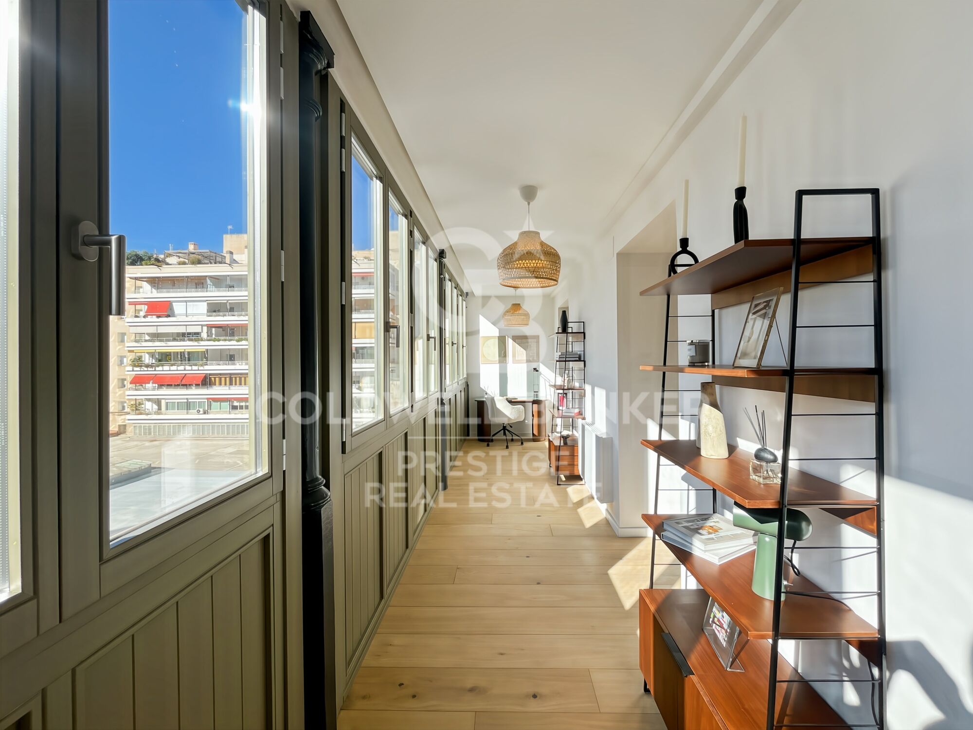 One of the apartment's key features is its large, light-filled gallery, a true extension of the living area, bringing brightness and depth to the space throughout the day.