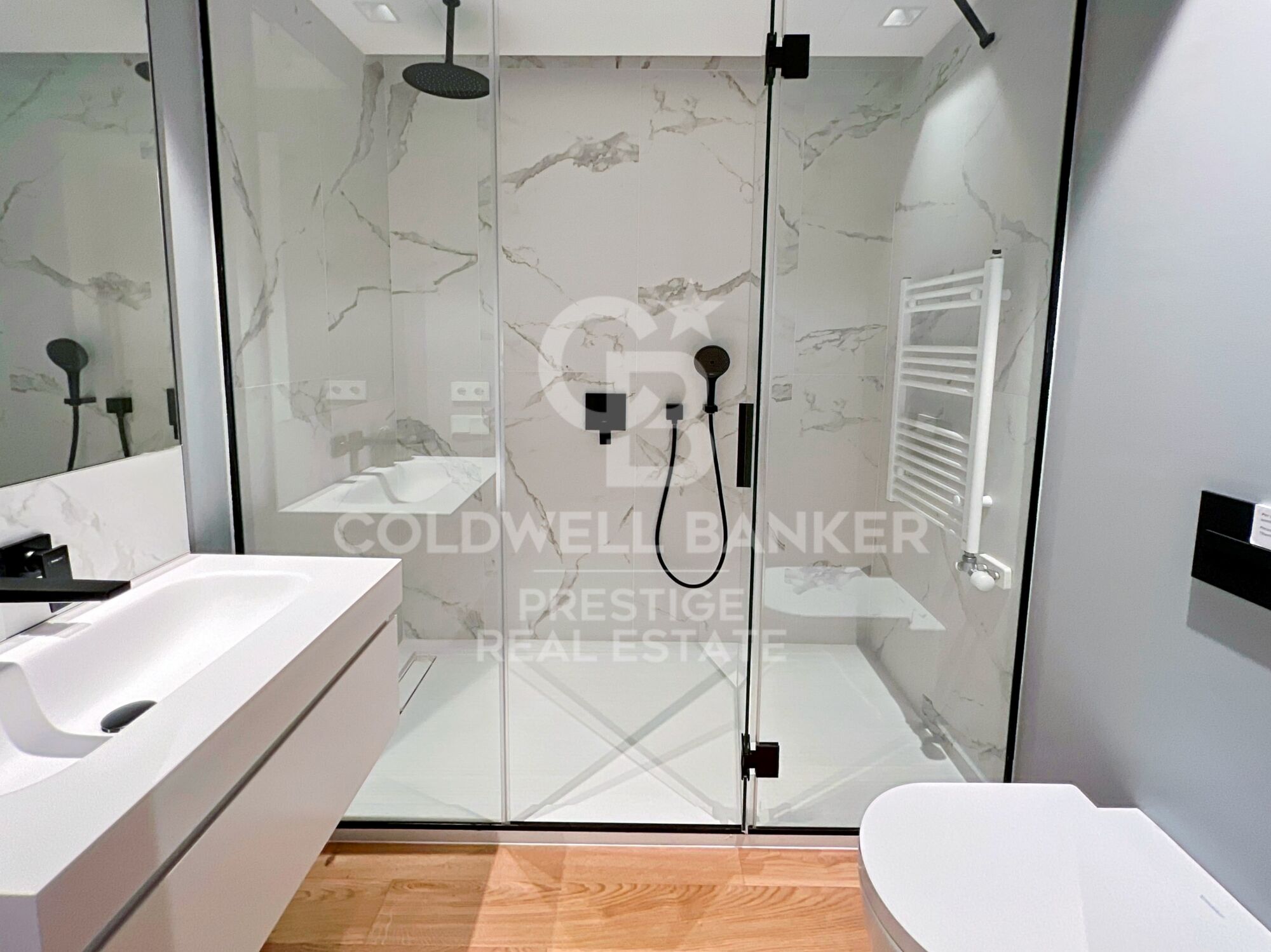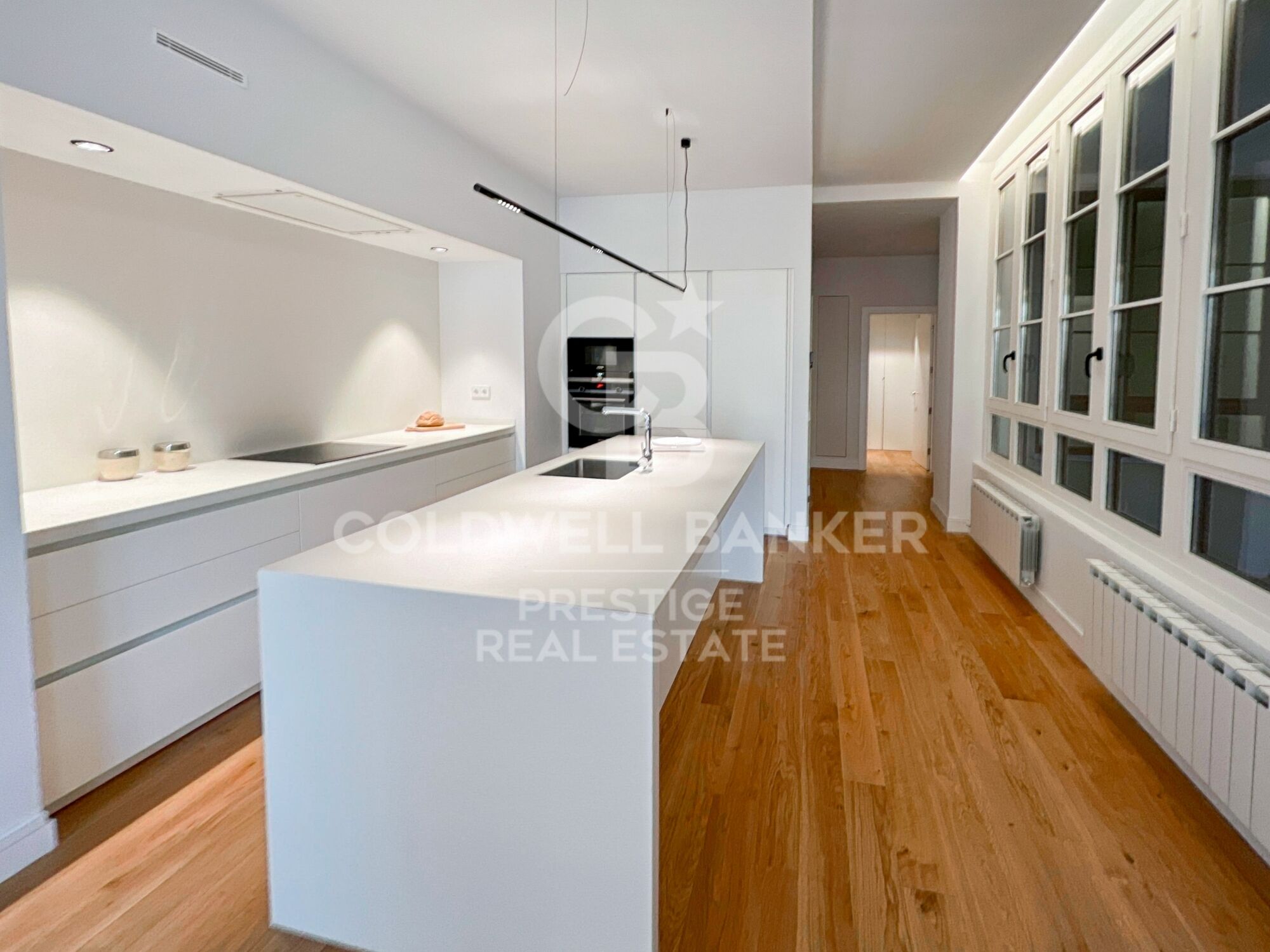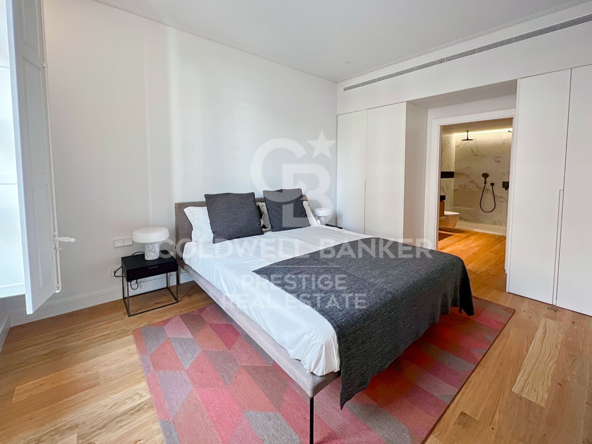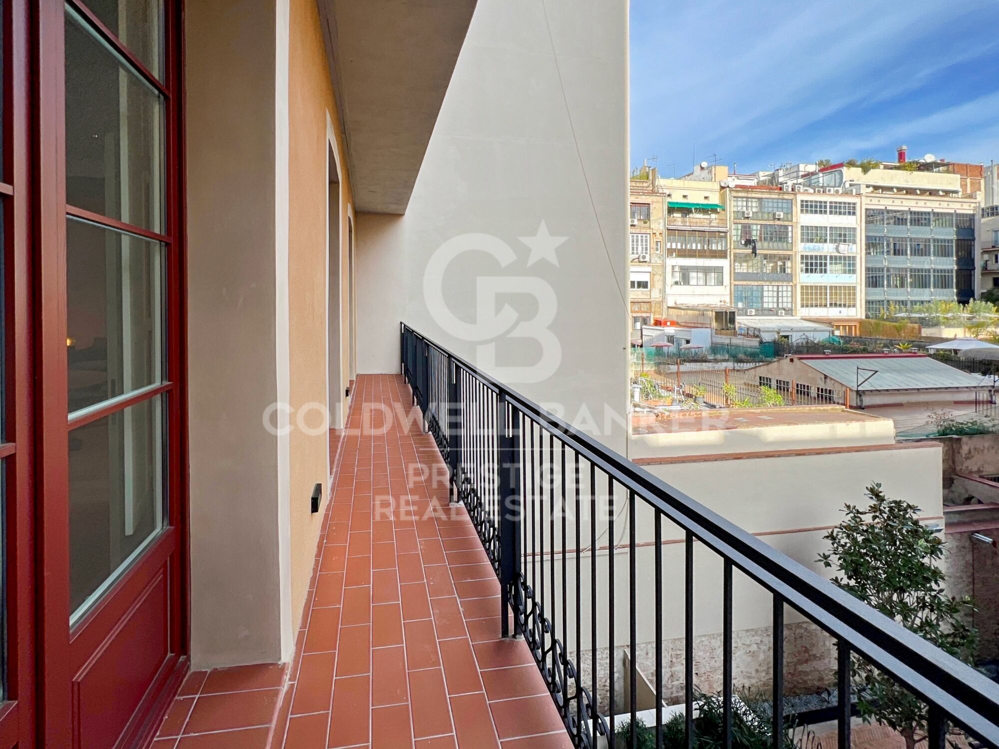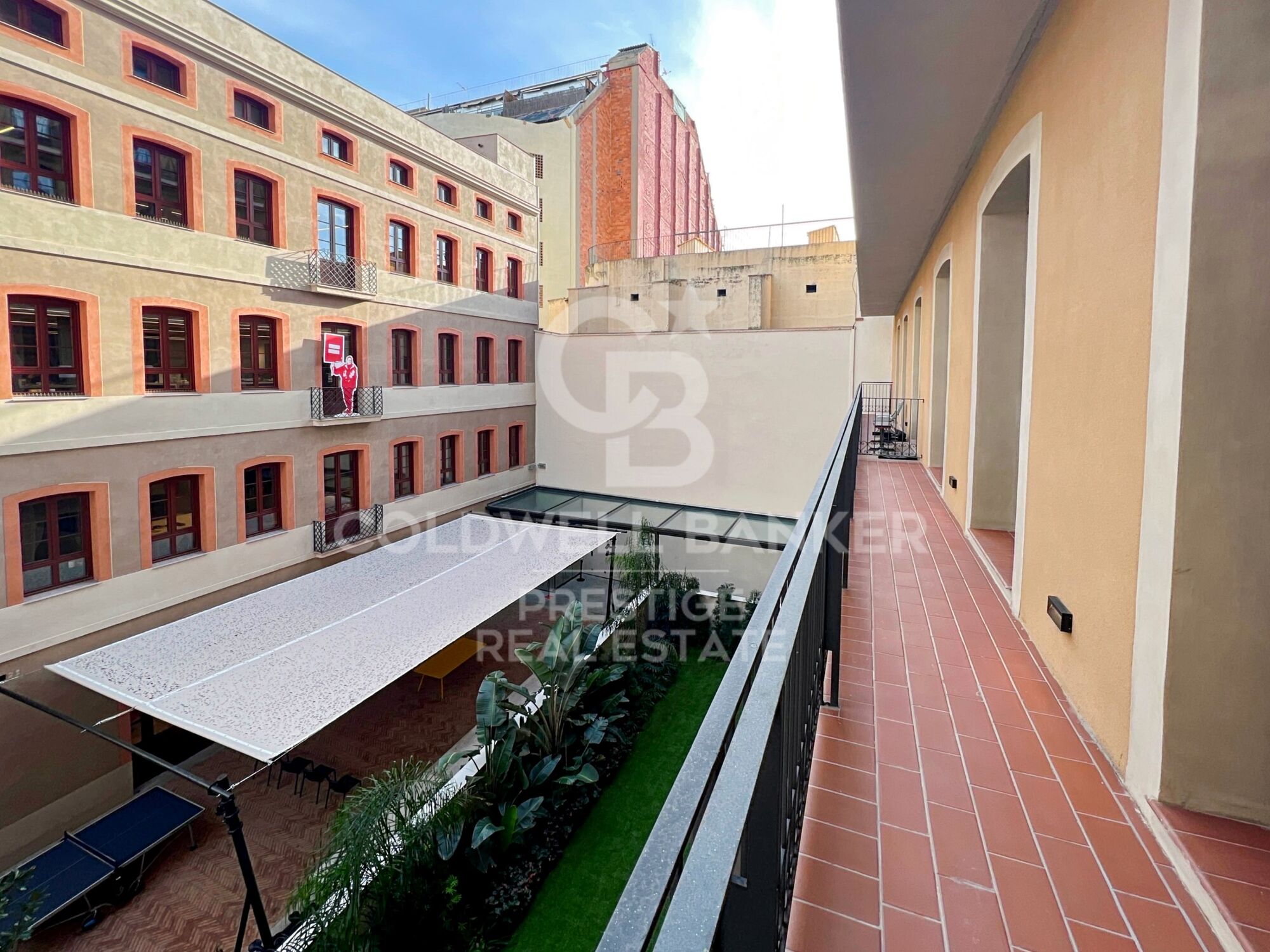This 113 sqm apartment located on the third floor, nestled in a tranquil inner courtyard with an old mill, is both compact and serene. Boasting 2 suites and a delightful terrace, it provides an ideal blend of comfort and sophistication. Explore the epitome of luxurious living in the heart of Barcelona.
