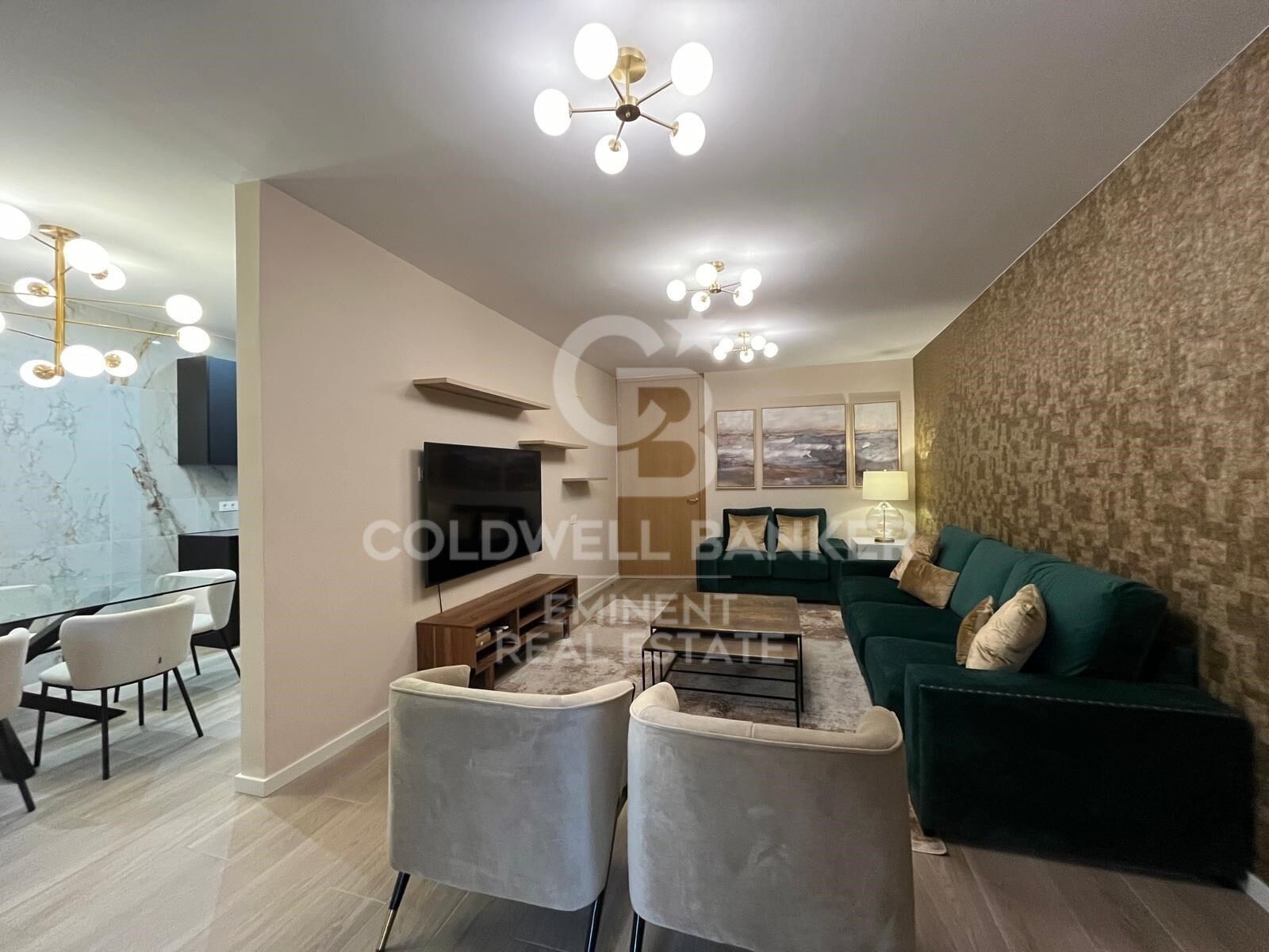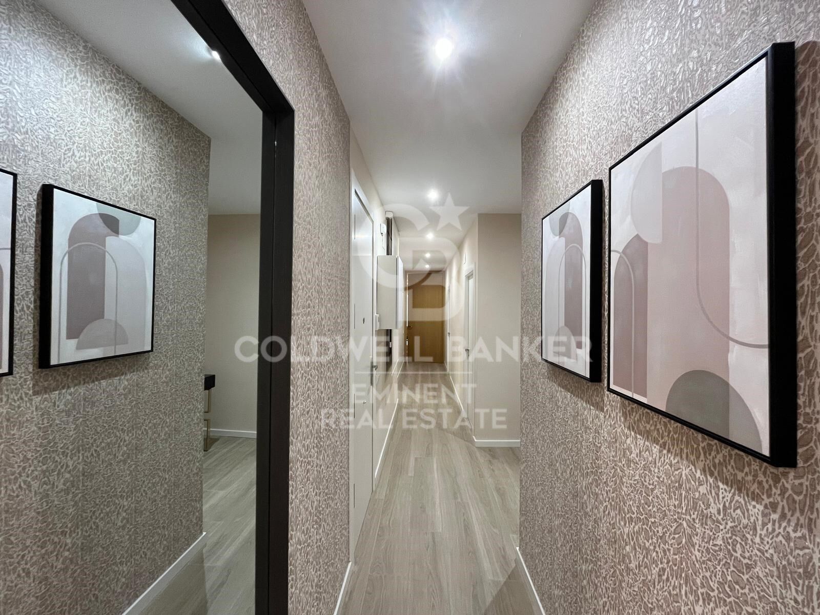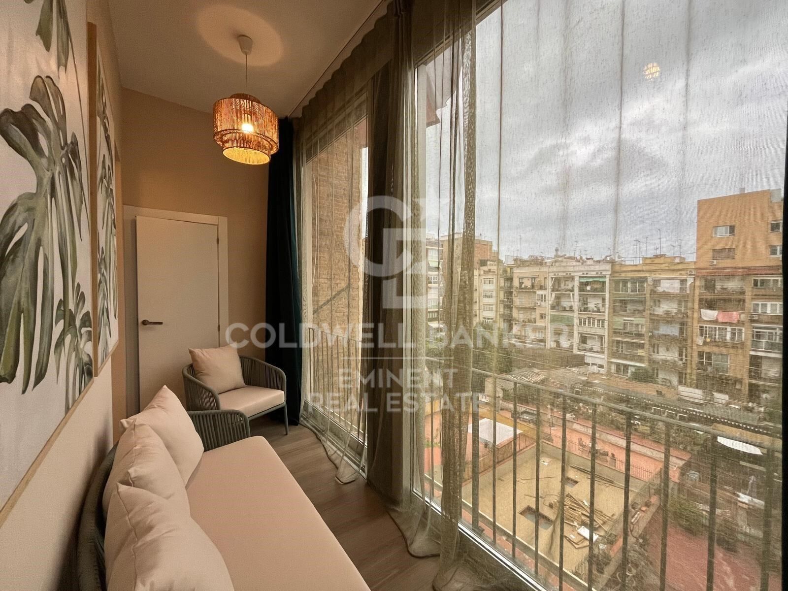 Die Wohnung mit Doppelorientierung wurde sorgfältig geplant, um den Wohnbereich vom privaten Bereich zu trennen. Der Tagesbereich besteht aus einem hellen Wohn-Esszimmer mit integrierter, offener Küche, die vollständig ausgestattet ist und Zugang zu einer charmanten, typischen Eixample-Galerie bietet.