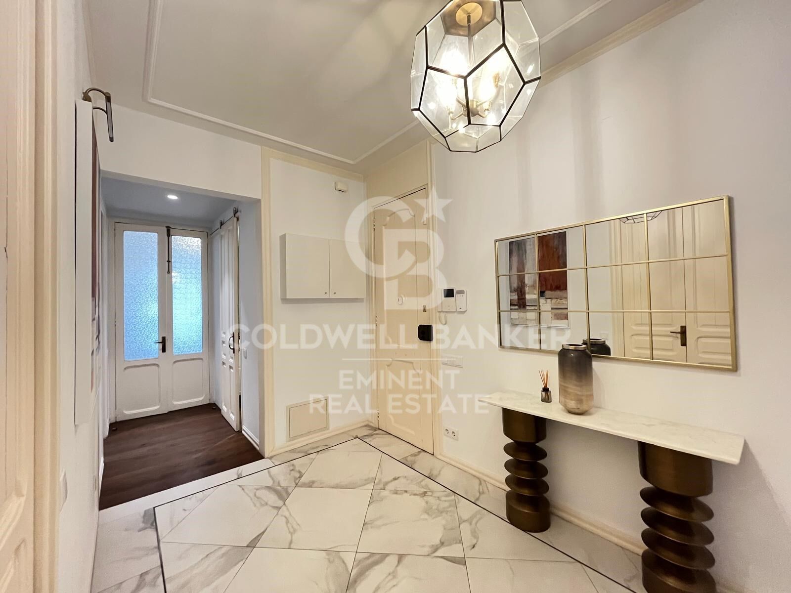 Beim Betreten empfängt Sie eine großzügige und elegante Eingangshalle, die die verschiedenen Bereiche der Wohnung verteilt.