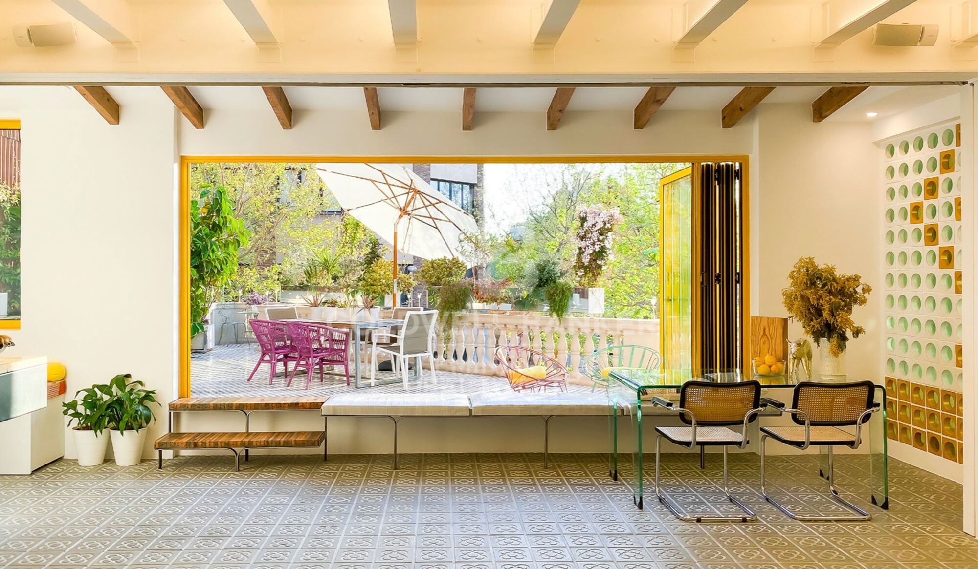 Neu gestaltet für eine wahre Interpretation des Innen- und Außenlebens, verfügt es über drei Außenterrassen, jede auf ihre Weise magisch. Die Terrassen, alle strukturell wiederaufgebaut, bieten ein Maß an frischer Luft, Grün und Schatten, die in Verbindung mit dem mediterranen Klima von Barcelona einen wahren Lebensraum schaffen.