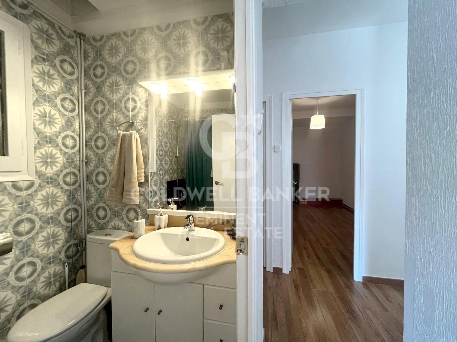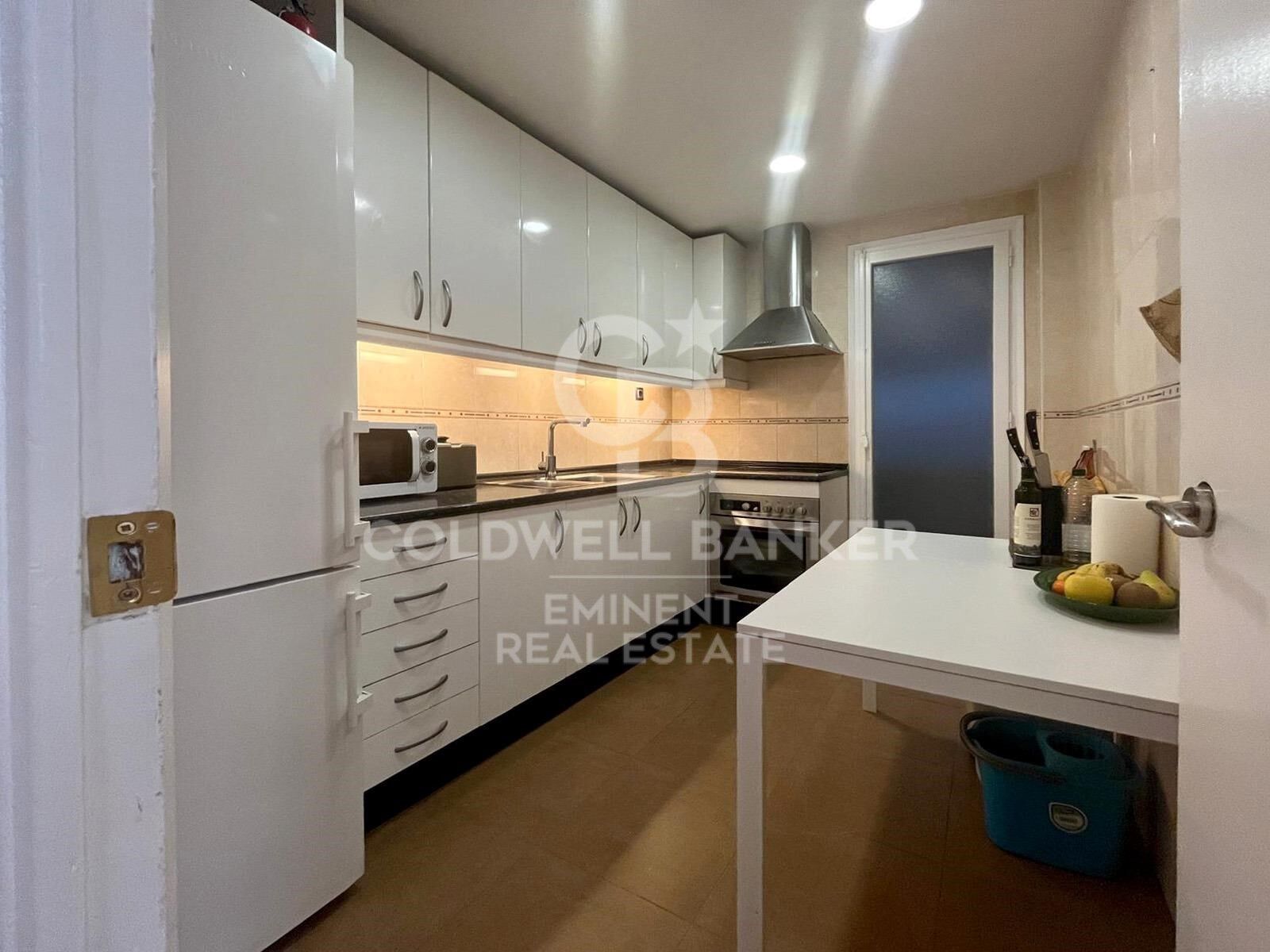 Die Küche ist separat, mit Platz für einen kleinen Tisch und Zugang zu einer Galerie, die als Wasch- und Abstellraum dient. Die Wohnung verfügt außerdem über ein komplettes Badezimmer und eine Gästetoilette, was den täglichen Komfort erhöht.