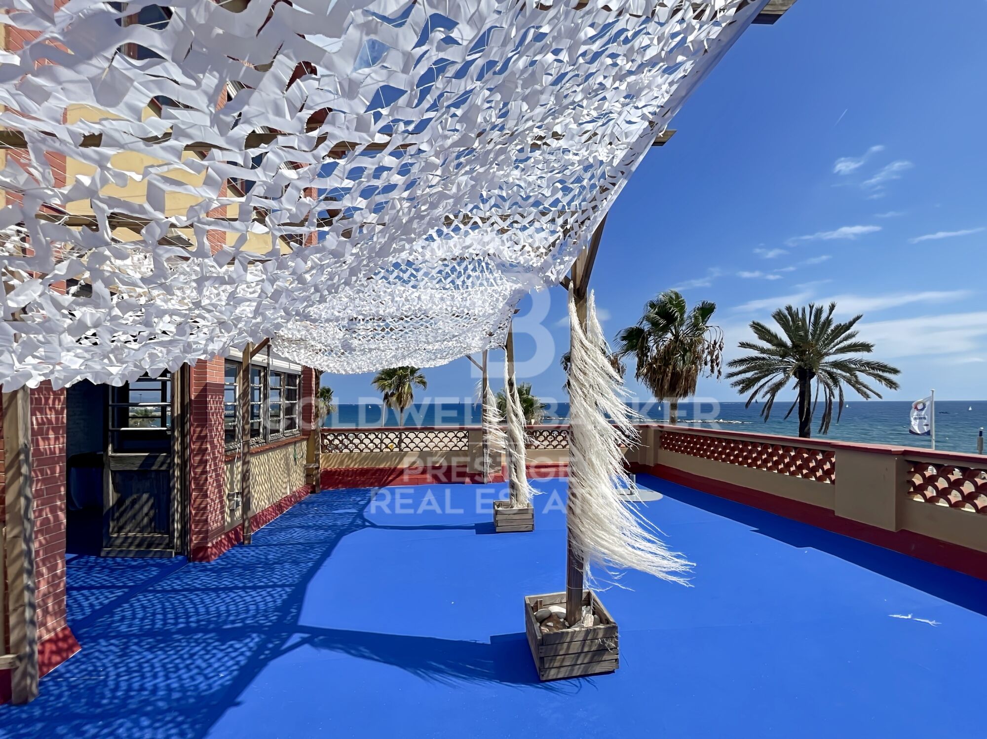 This exclusive 100m2 penthouse with an impressive 50m2 terrace at ground level is for sale. Apartment facing 3 winds, all exterior, with front-line sea views from any part of this incredible space. Its rectangular layout, with practically no structural walls, allows total flexibility in the interior layout. It currently has 4 bedrooms and 1 bathroom, but you can adapt it to your taste.
