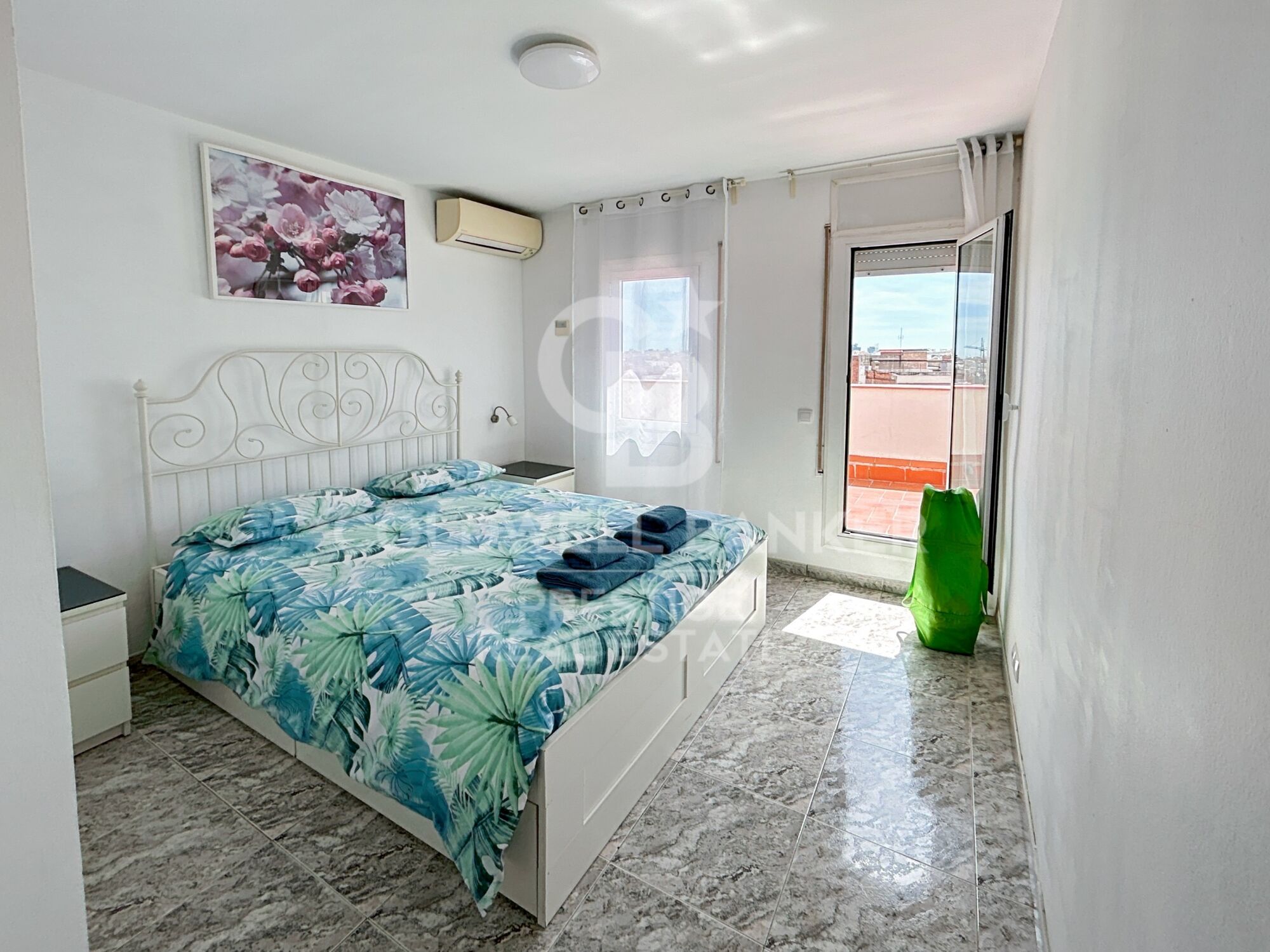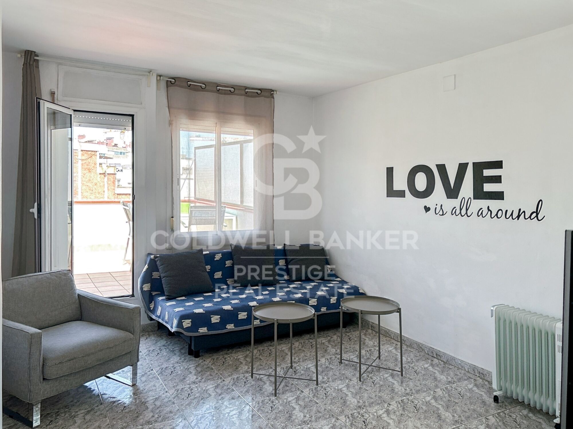Cozy penthouse, 8th real height, with TOURIST LICENSE located just 20 meters from the Collblanc metro station. With an area of 60m2, it currently has a bright living room with an open kitchen and access to a terrace, a large double bedroom also with access to the terrace and a complete bathroom.