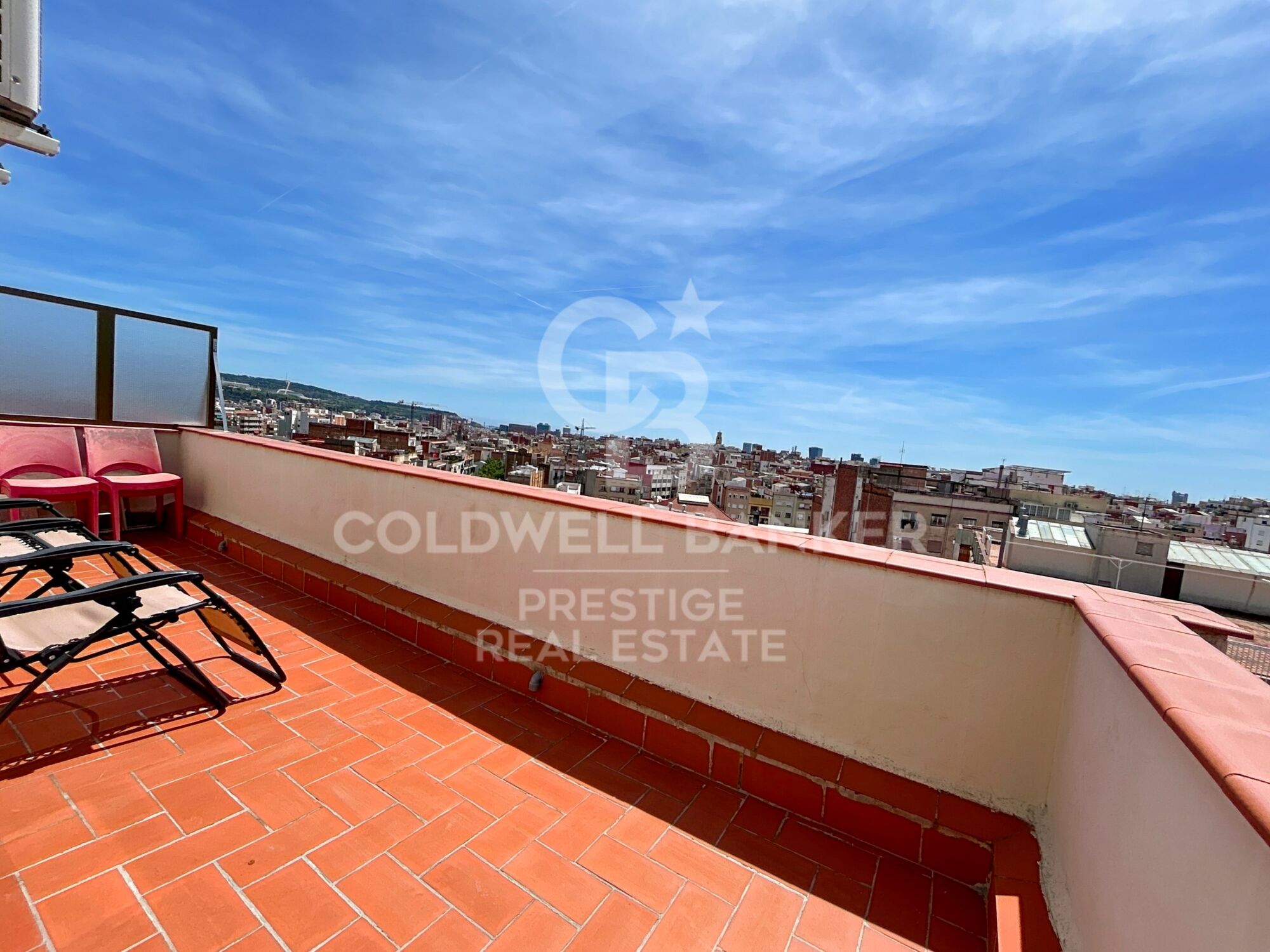 Cozy penthouse, 8th real height, with TOURIST LICENSE located just 20 meters from the Collblanc metro station. With an area of 60m2, it currently has a bright living room with an open kitchen and access to a terrace, a large double bedroom also with access to the terrace and a complete bathroom.