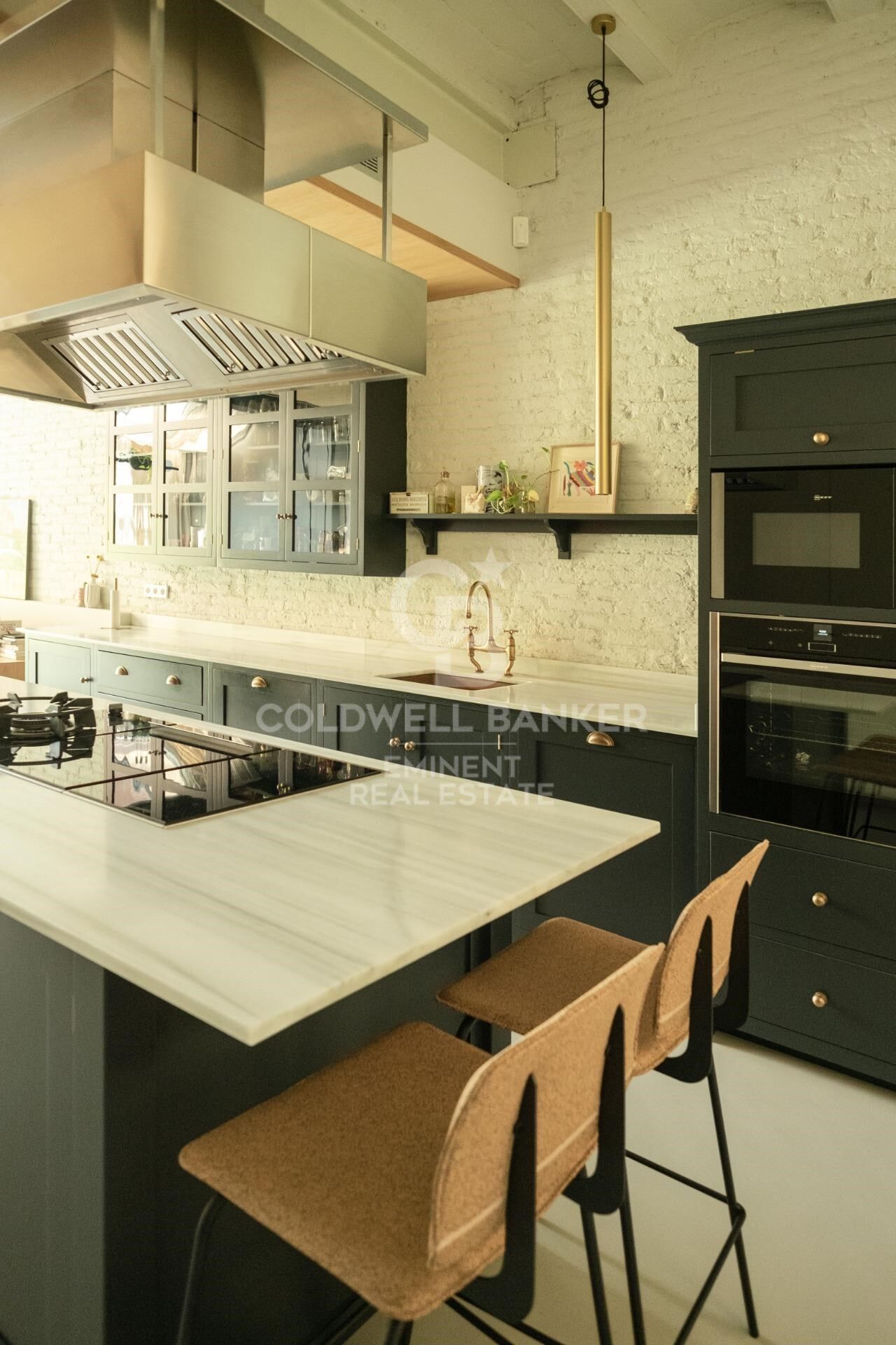Das Haus bewahrt seinen ursprünglichen Charakter mit über 4 Meter hohen Decken und katalanischem Gewölbe, wurde jedoch komplett mit hochwertigsten Materialien modernisiert, um Design, Komfort und Funktionalität zu vereinen.