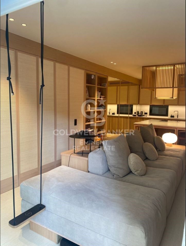 Das Zuhause verfügt über einzigartige Details, die sowohl Charakter als auch Funktionalität verleihen, wie einen Bioethanol-Kamin, eine Indoor-Schaukel und eine Geheimtür, die diskret zu den Schlafzimmern führt. Das Hauptschlafzimmer kann vollständig in das Wohn-Esszimmer integriert werden, wodurch ein offener und heller Raum entsteht, während das zweite Zimmer ideal als Büro oder Gästezimmer geeignet ist.