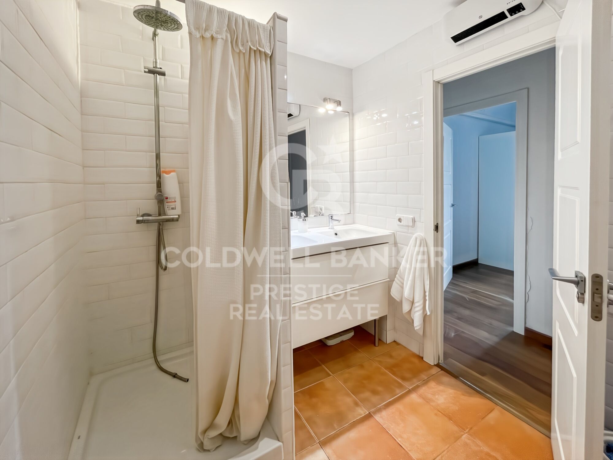 Die Wohnung öffnet sich zu einem geräumigen Eingangsbereich mit Einbauschränken, der in ein vollständig nach außen gelegenes Wohn-Esszimmer führt, das von Tageslicht durchflutet ist und direkten Zugang zur Terrasse bietet, die dank ihrer unschlagbaren Ausrichtung das ganze Jahr über genutzt werden kann.
