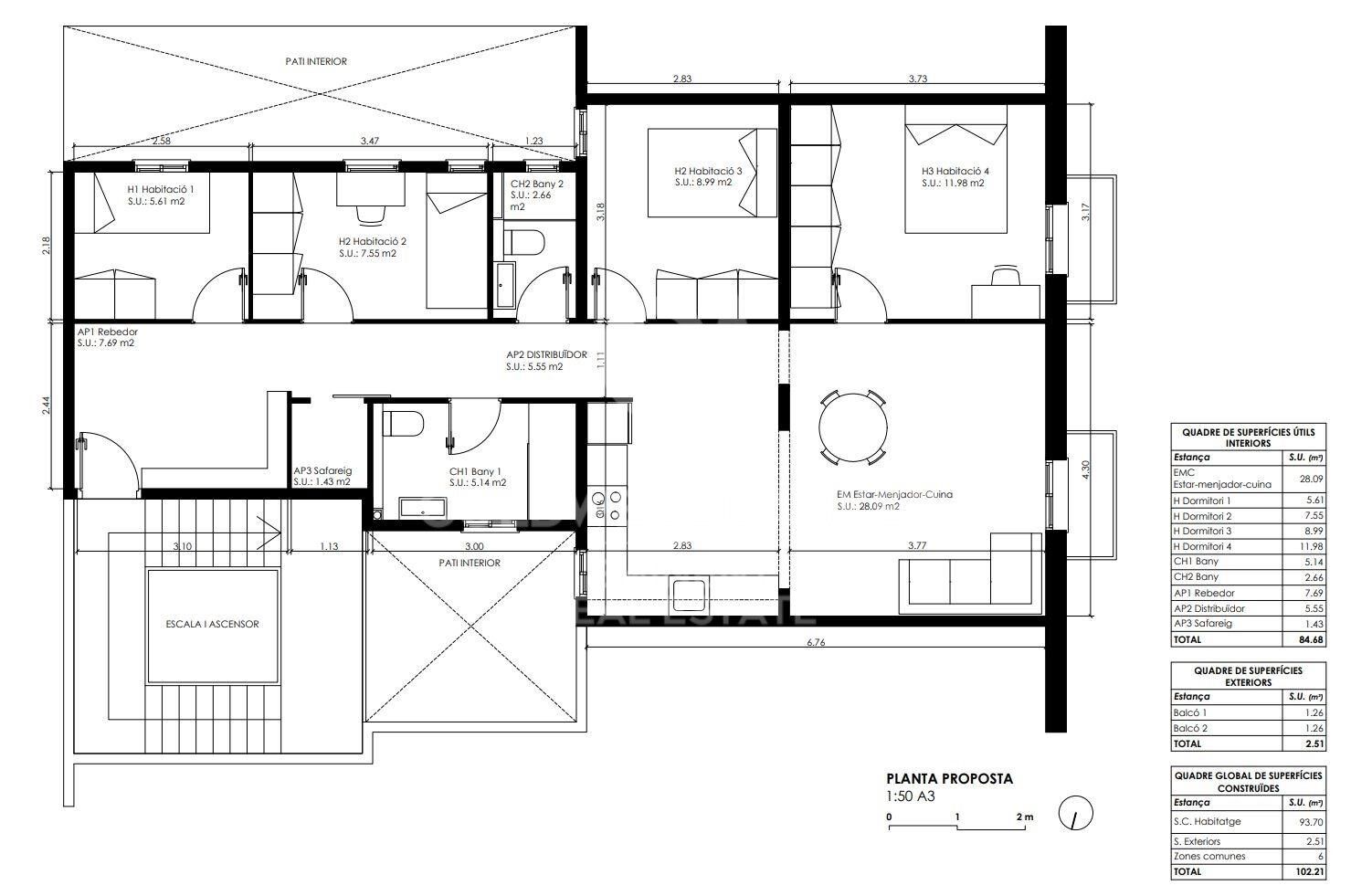 Mit 100 m², die perfekt aufgeteilt sind, bietet die Wohnung ein Wohn-Esszimmer mit offener Küche, sehr geräumig und mit direktem Zugang zu einem sonnigen Balkon. Es verfügt über vier Schlafzimmer, zwei davon Doppelzimmer, und zwei Badezimmer, was es zum idealen Zuhause für Familien oder für diejenigen macht, die einen Telearbeitsplatz zu Hause suchen.