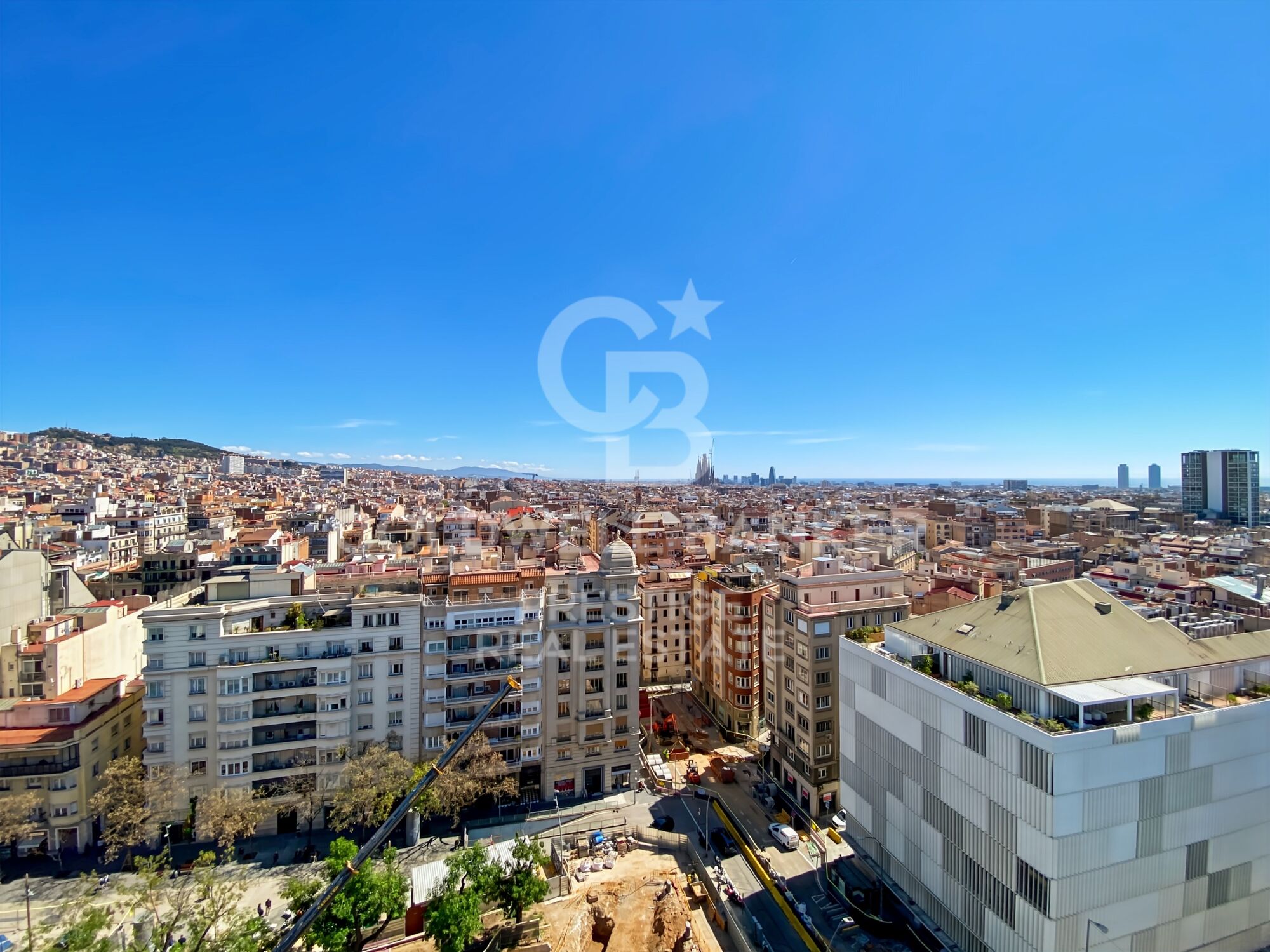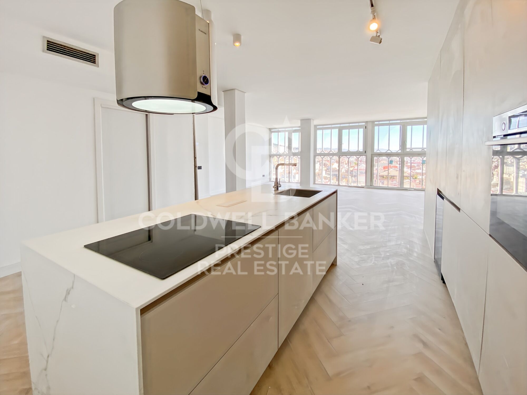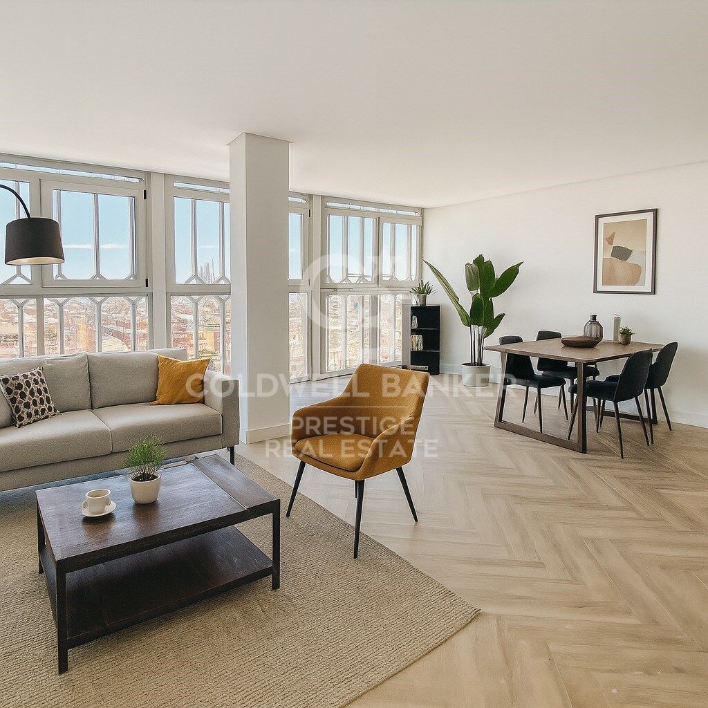 Coldwell Banker Prestige präsentiert diese spektakuläre Wohnung im 14. Stock des berühmten Autobahngebäudes an der Plaça Gala Placídia, einem der begehrtesten Viertel Barcelonas.