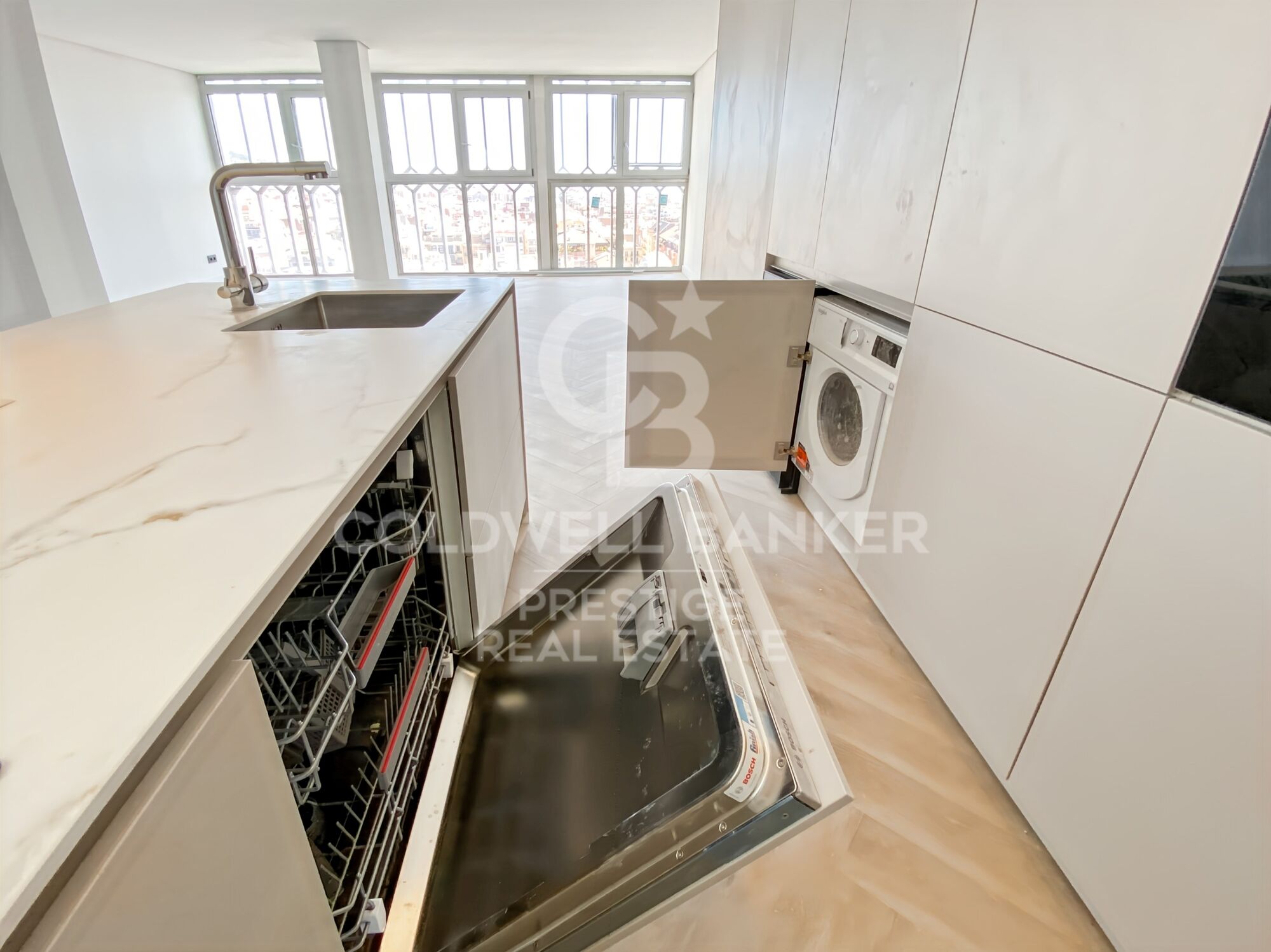 Die offene Küche mit Wohn- und Essbereich ist ein wahres Paradies für Feinschmecker: ausgestattet mit hochwertigen Bosch-Geräten und einem exklusiven La Sommelier-Weinkühlschrank. Das großzügige Wohnzimmer öffnet sich zu einem einzigartigen Panorama mit Ostausrichtung, das es Ihnen ermöglicht, den Sonnenaufgang mit der Sagrada Família im Hintergrund zu genießen.