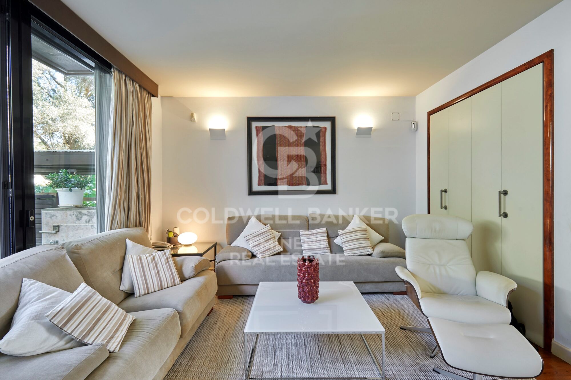 Coldwell Banker Eminent präsentiert dieses 251 m² große Einfamilienhaus, das als privater Aussichtspunkt im Herzen von Can Caralleu thront und ein Wohnerlebnis bietet, das von Exklusivität und der Verbindung zur natürlichen Umgebung von Sarrià geprägt ist.