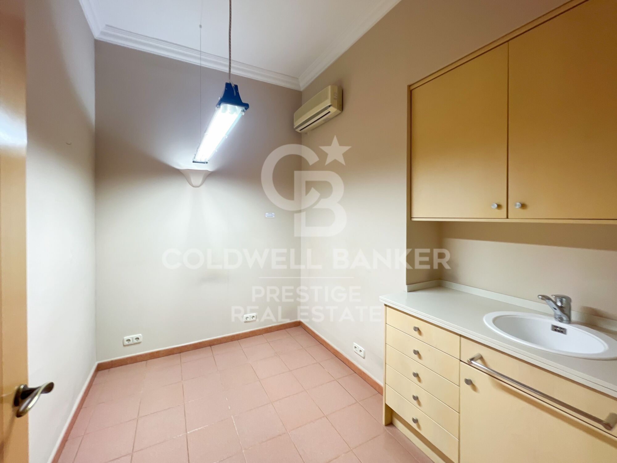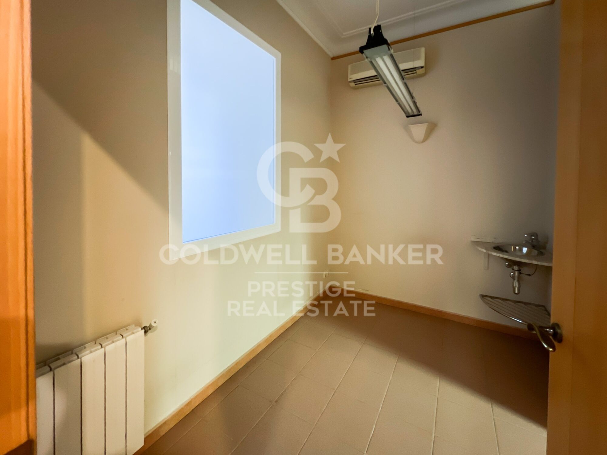 A spacious vestibule clearly separates the property into two different areas. A hallway distributes the rooms on both sides of the vestibule. One part of the house faces Muntaner, with excellent solar orientation and windows that provide exceptional thermal and acoustic insulation. The other part ends in a gallery that overlooks a quiet and sunny inner courtyard, with carefully maintained plants and trees.