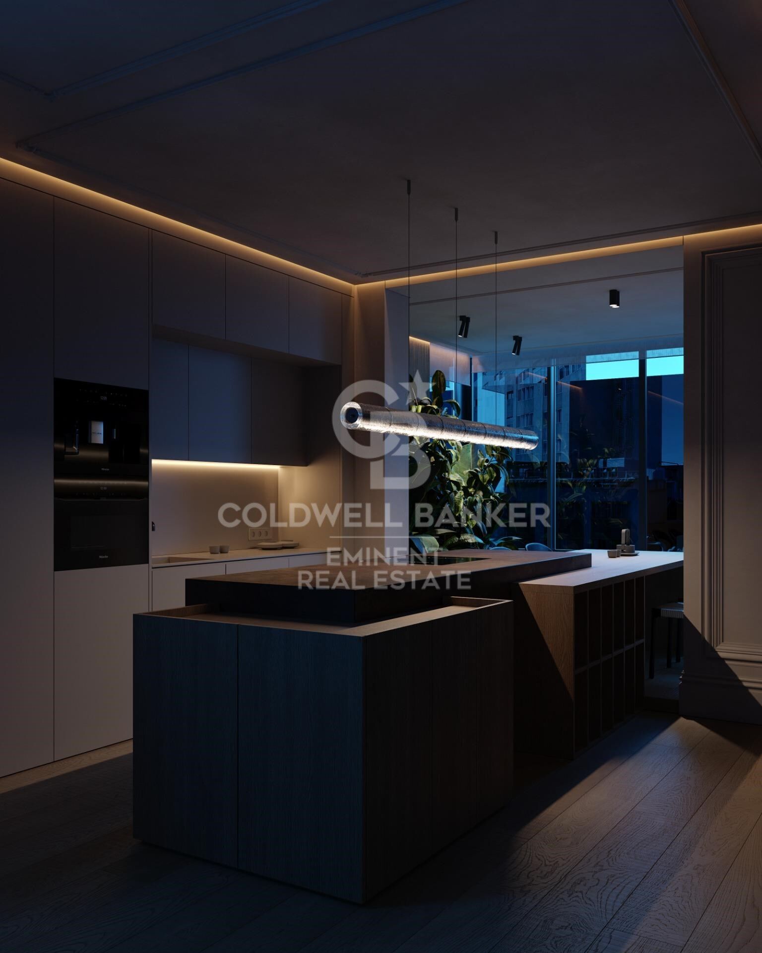 Coldwell Banker Eminent präsentiert diese Wohnung mit einer Gesamtfläche von 268 m². Sie verfügt über 4 Schlafzimmer, darunter 2 geräumige Suiten mit eigenem Bad und direktem Zugang zu einer charmanten 19 m² großen Terrasse mit ruhigem Blick auf einen offenen Innenhof. Die beiden weiteren Schlafzimmer sind innenliegend und teilen sich ein zusätzliches Badezimmer.