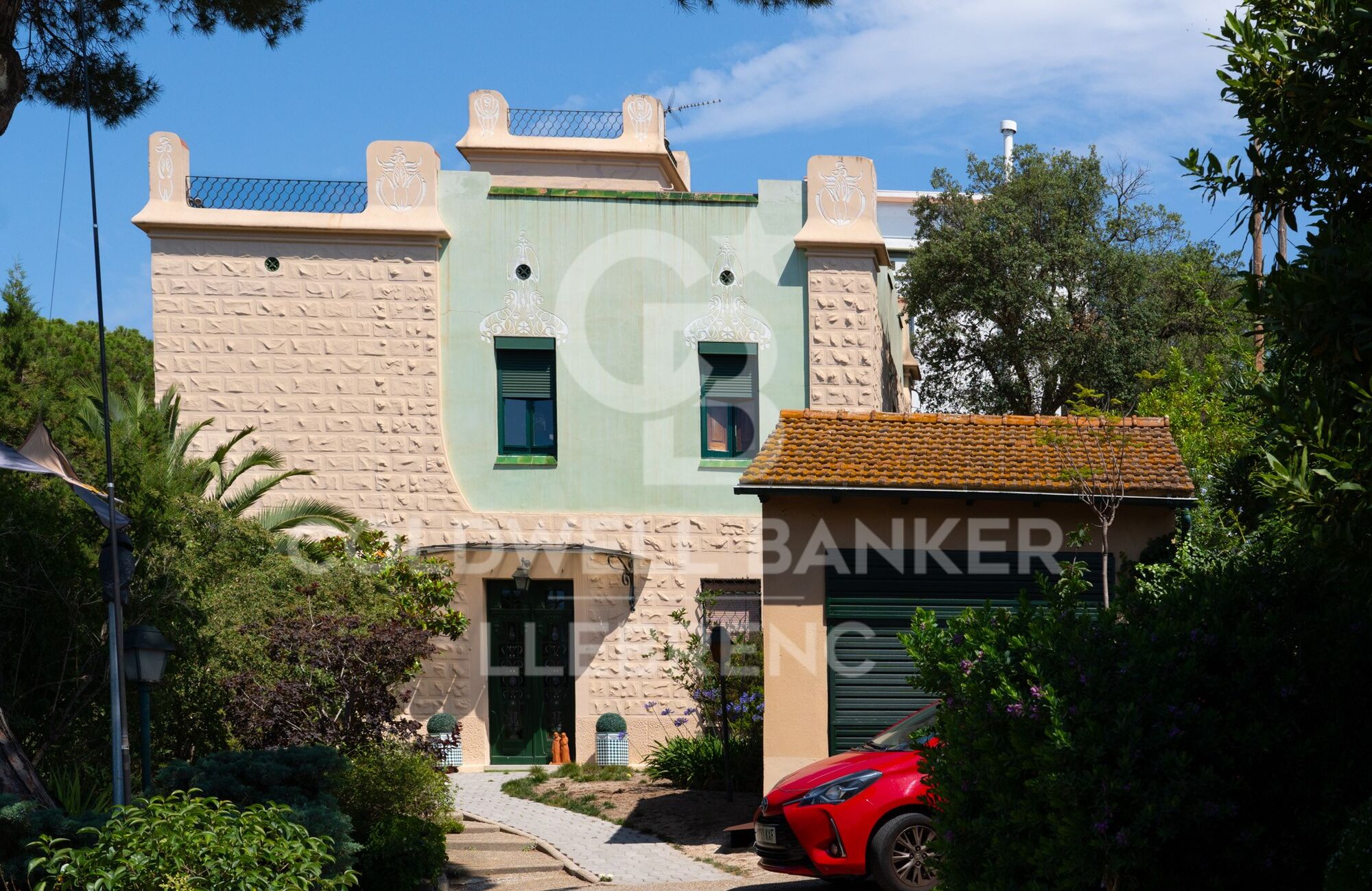 On the upper floor, you will find a small study, a lounge, and a bedroom with a bathroom. On the top level, the house features four bedrooms and two bathrooms, one of them en suite. The entire floor maintains its modernist style with distinctive features such as stained glass, moldings, and hydraulic floors. At the top of the house, two terraces one lateral and one panoramic offer breathtaking views of Barcelona and the sea.