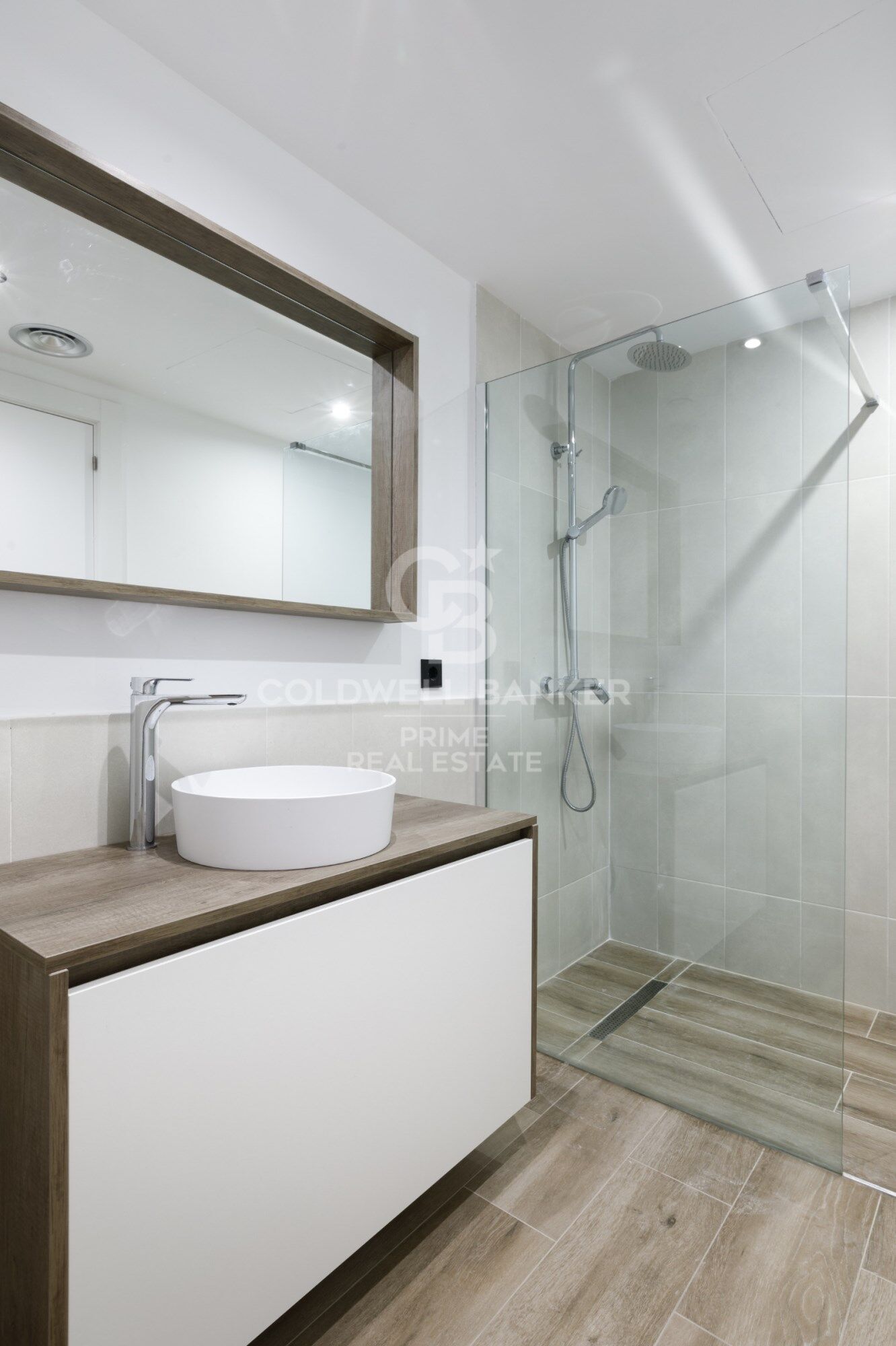 The upper level is designed for everyday luxury. An open concept unites the living area, dining room, and kitchen, creating a seamless space that encourages interaction. From here, access the porch to enjoy a protected and comfortable outdoor corner. The master suite spares no comforts, offering a walk-in closet, a full bathroom with a bathtub and shower, and direct access to a private terrace. Furthermore, a courtesy toilet complements this floor.