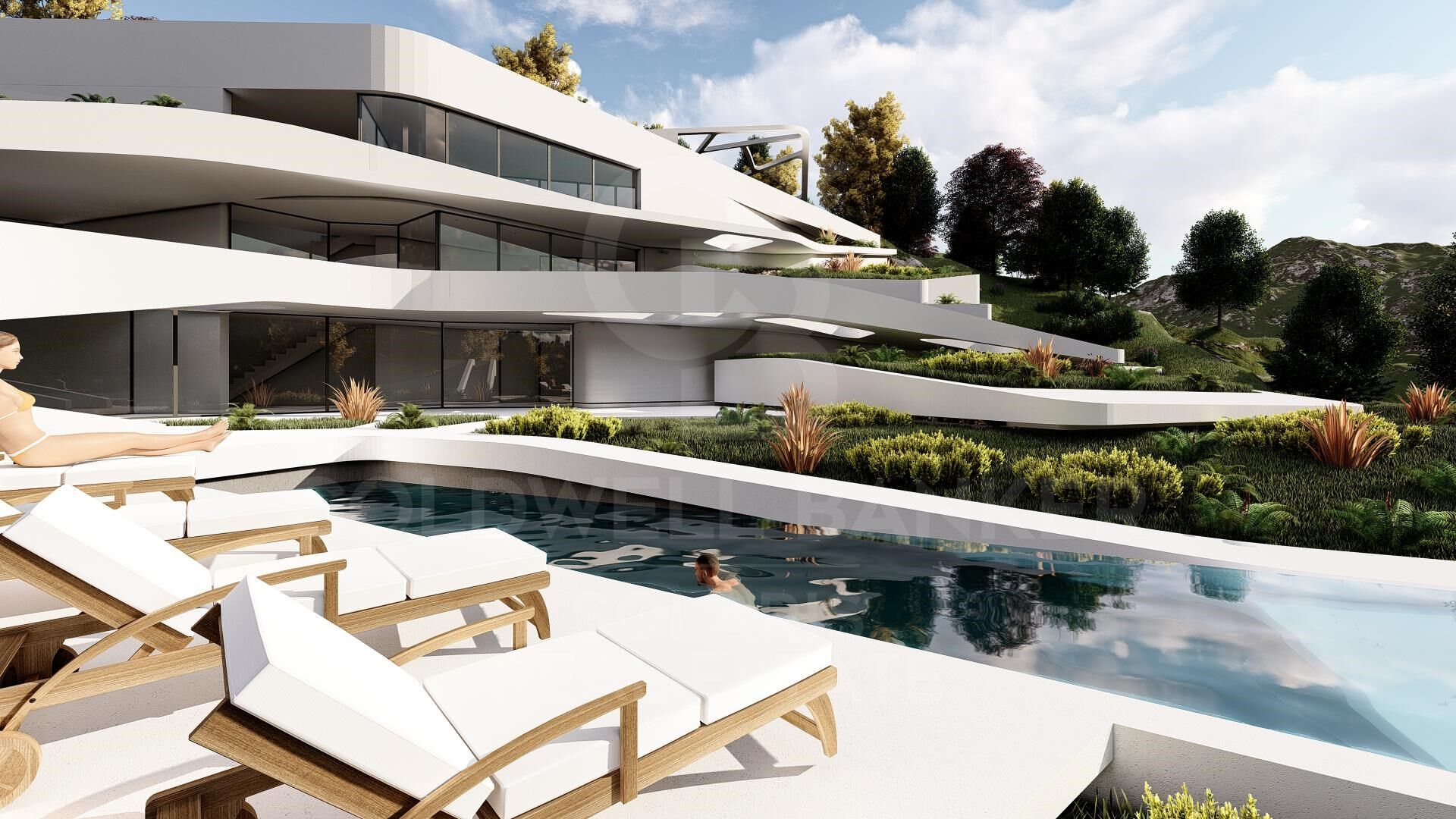 La villa se adapta con elegancia a la topografía del terreno, creando la impresión de que emerge de la propia naturaleza. Sus líneas fluidas y formas curvadas no solo responden a las características del paisaje, sino que también maximizan las vistas panorámicas del mar Mediterráneo y el estrecho de Gibraltar. Esta integración armoniosa entre la construcción y el entorno circundante crea una sensación de continuidad y pertenencia al paisaje.
