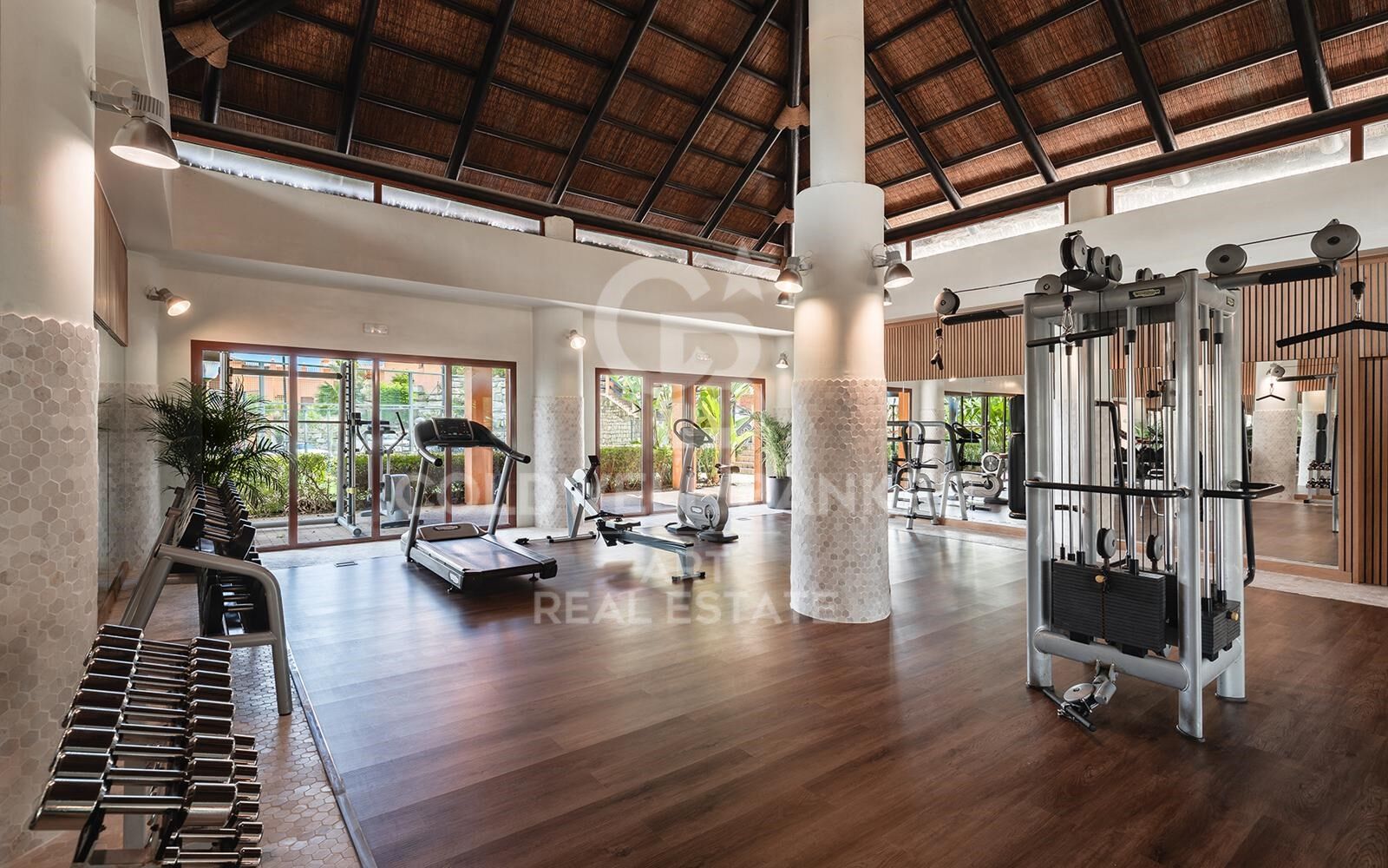 Die Wohnanlage bietet hervorragende Einrichtungen: drei Außenpools, umgeben von gepflegten Gärten, einen Padel-Tennisplatz, einen Fitnessraum mit Umkleideräumen und Saunen sowie einen beheizten Innenpool, der das ganze Jahr über genutzt werden kann.