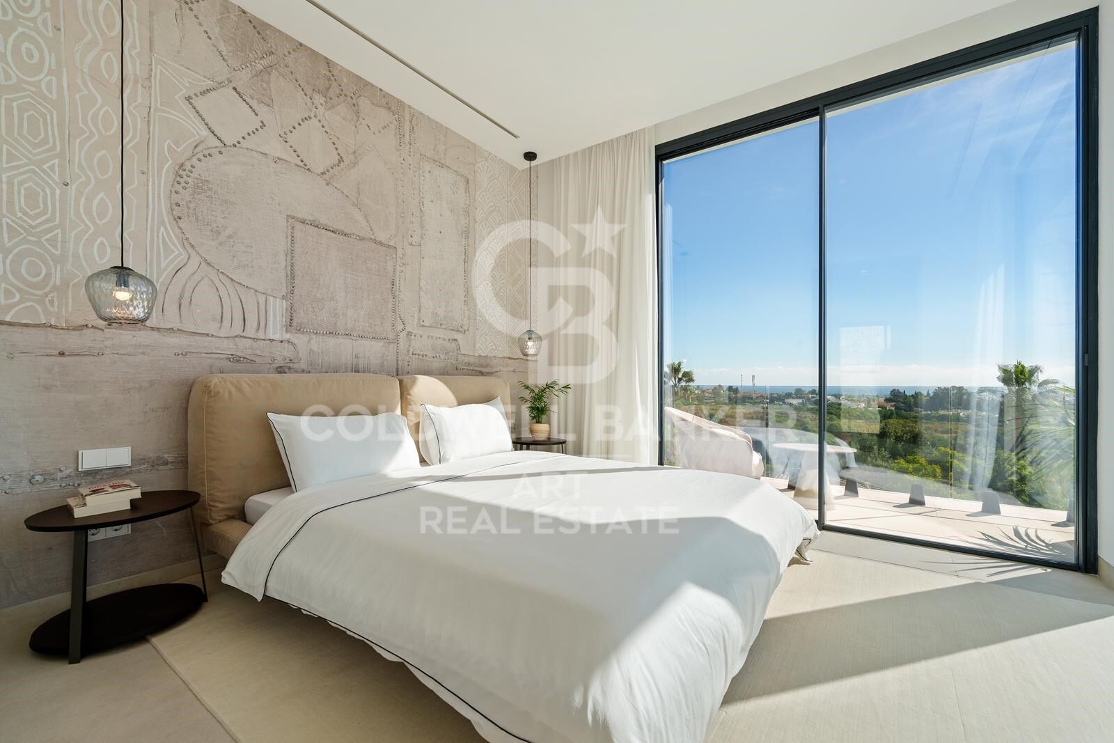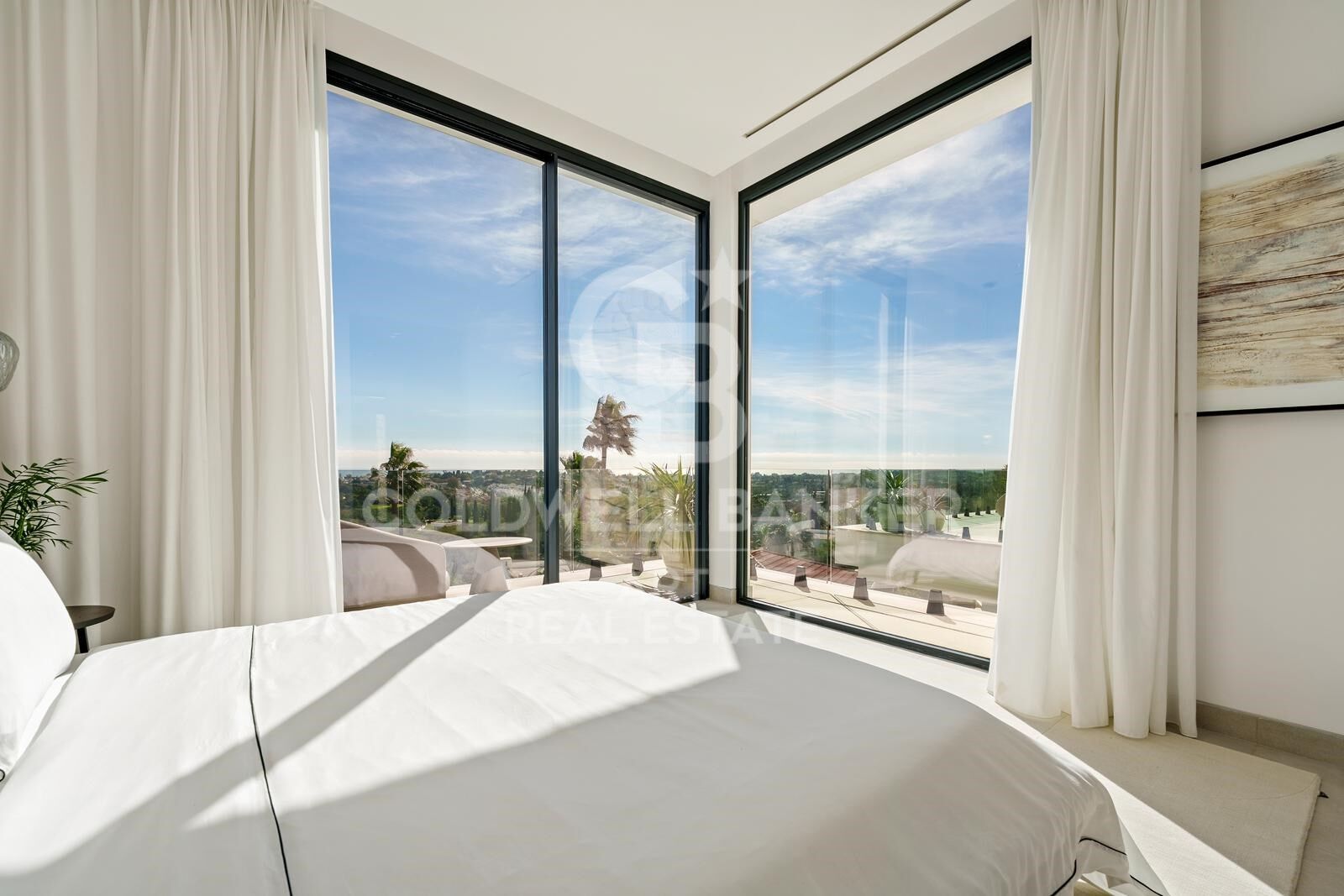 Prächtige zeitgenössische Residenz, gelegen im privaten Enklave in La Quinta, Marbella. Erschaffen von Cogitari Homes, spiegelt sie die perfekte Harmonie zwischen anspruchsvollem architektonischem Design und der ruhigen natürlichen Schönheit ihrer Umgebung wider. Zwischen dem Mittelmeer und dem Berg La Concha gelegen, bietet diese exklusive Villa einen Panoramablick über das Golfvalley und die Küste und garantiert gleichzeitig absolute Privatsphäre und Ruhe.